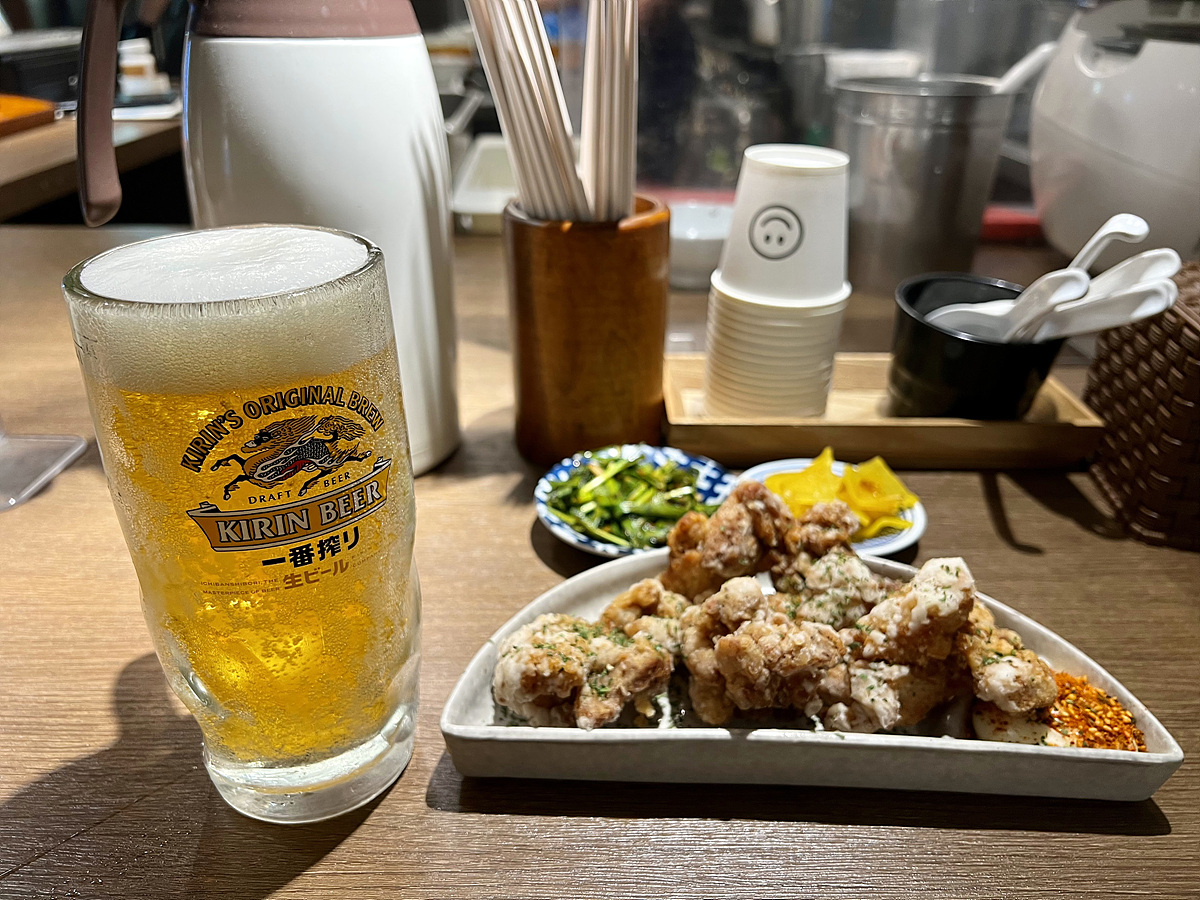 대표메뉴인 대창라멘과 가라아게 & 생맥주를 주문하고 기다린다..
