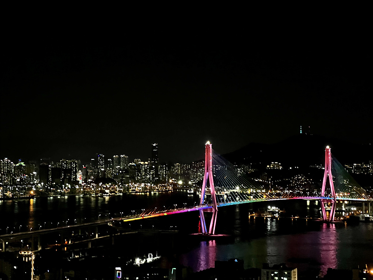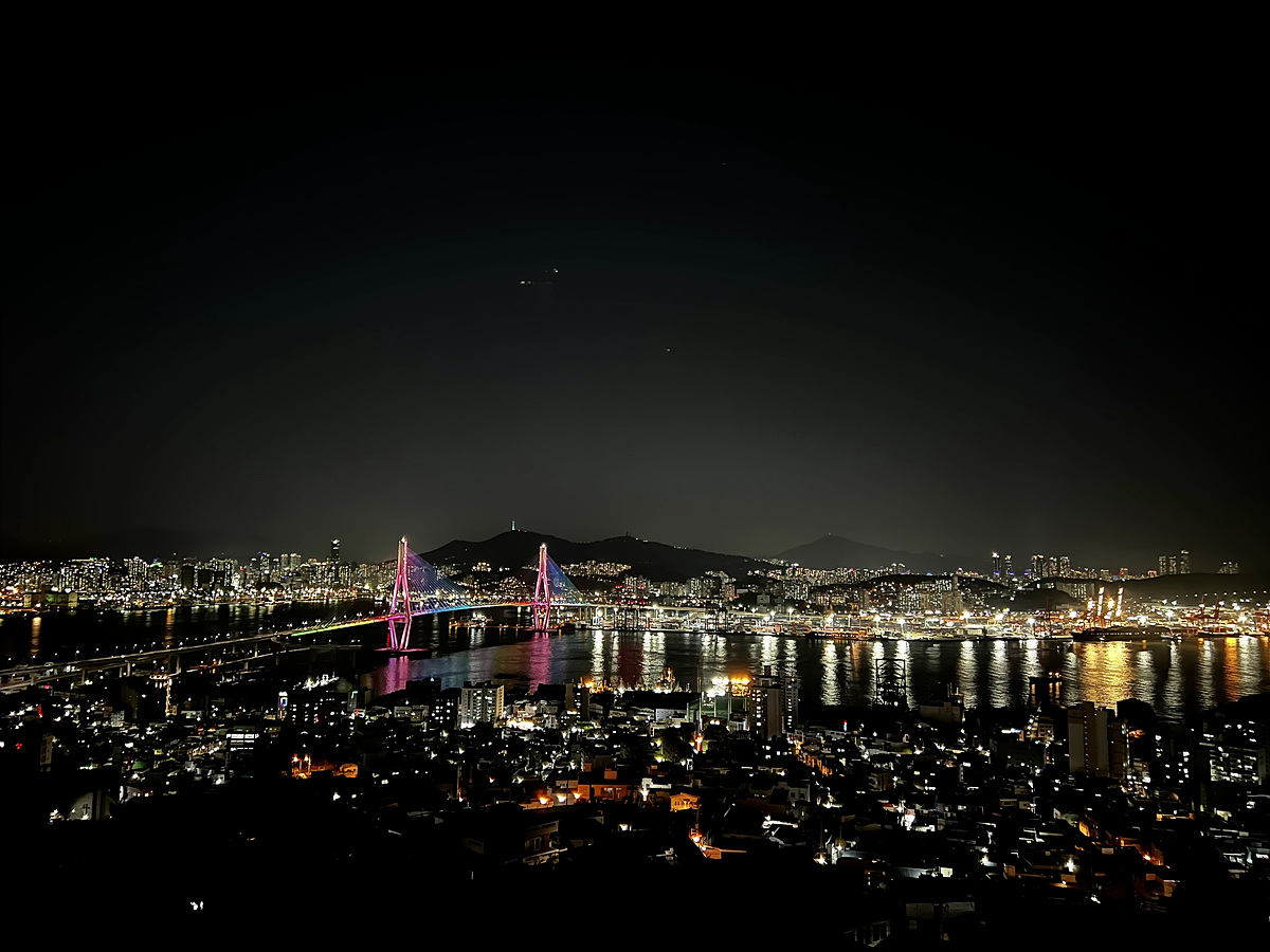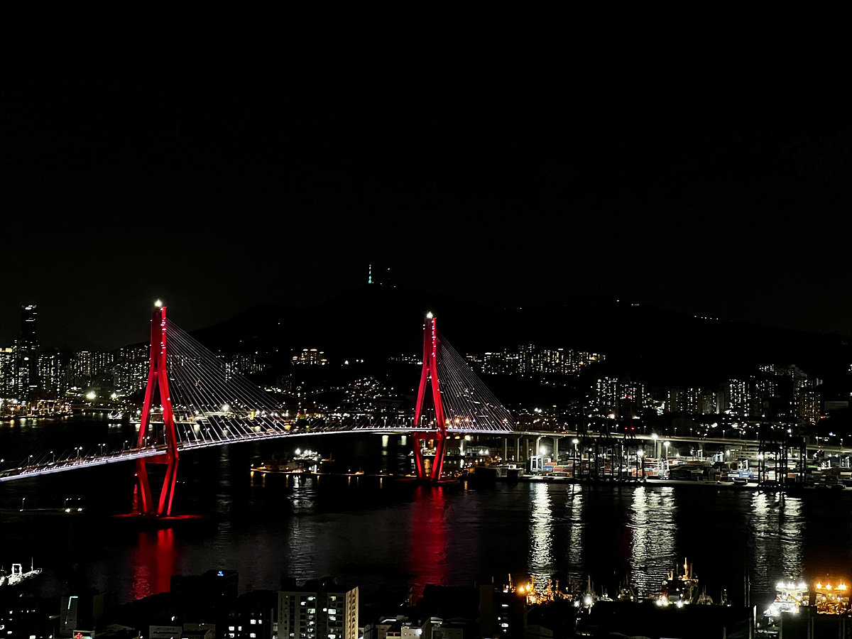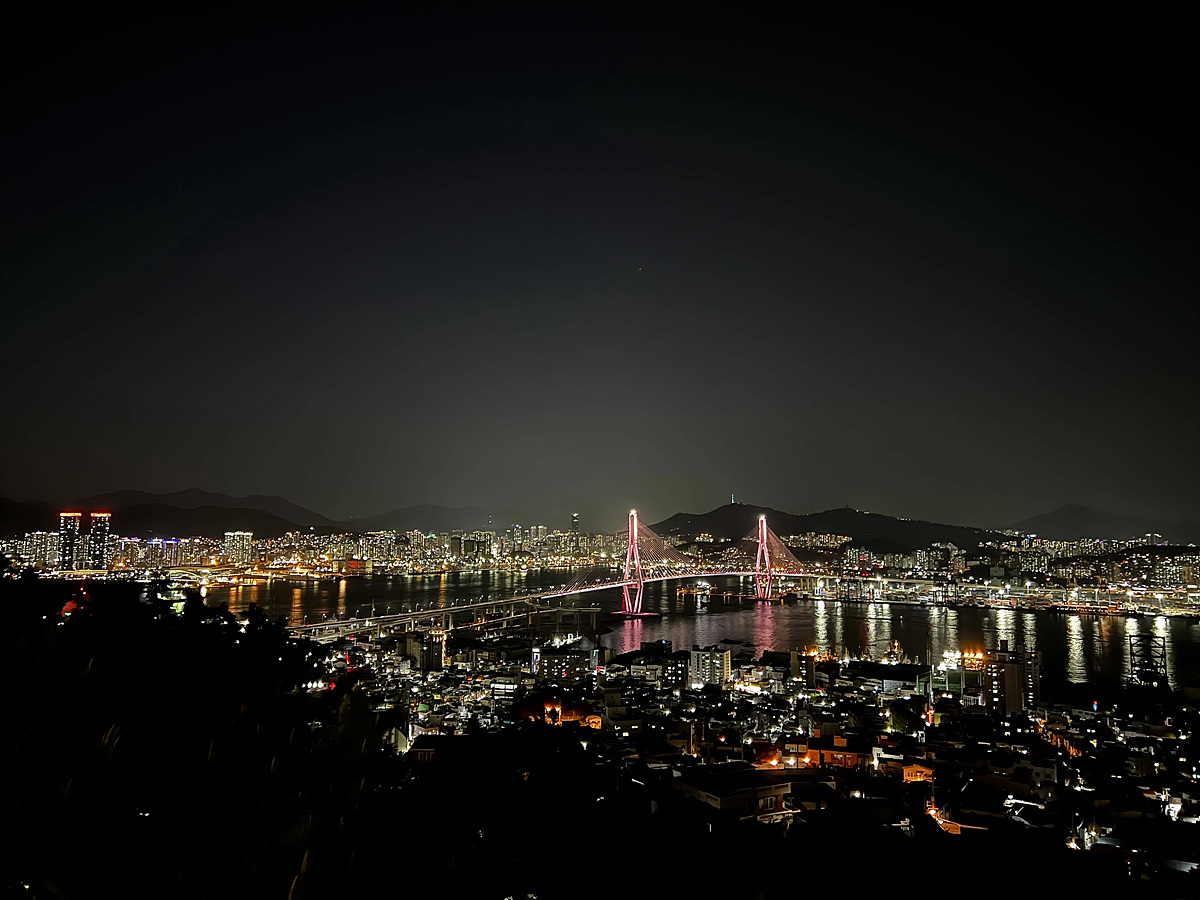 해도 많이 길어진 상태라 부산항대교에 조명이 들어오기까지 꽤 시간이 걸렸다..