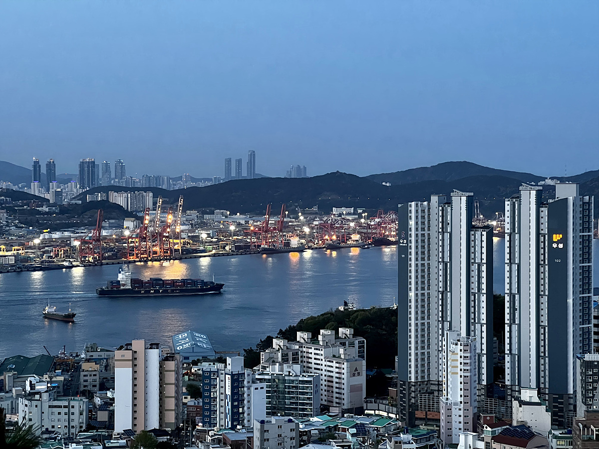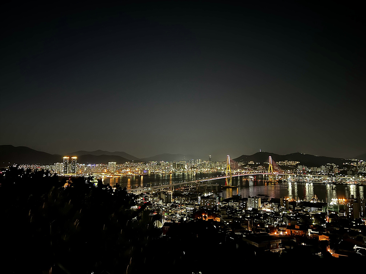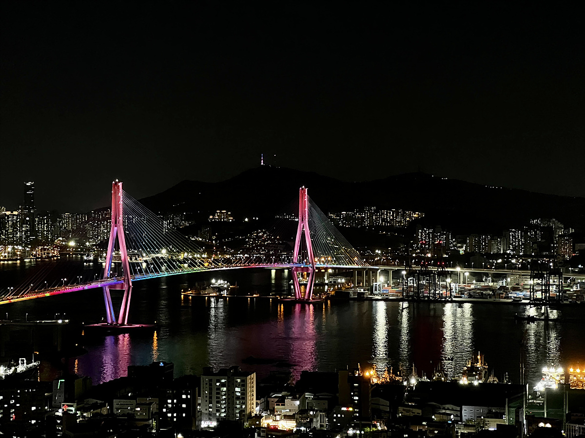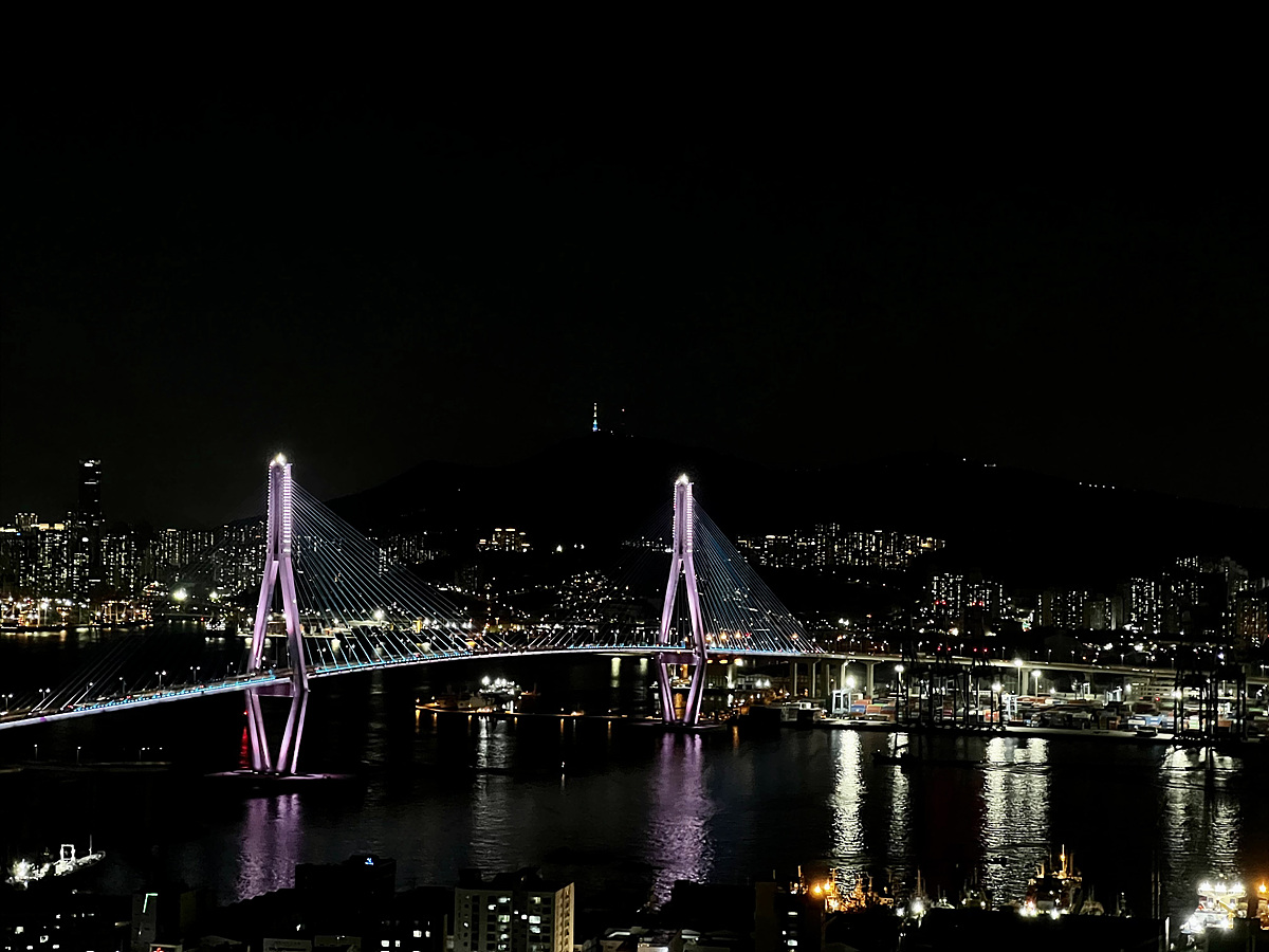 해도 많이 길어진 상태라 부산항대교에 조명이 들어오기까지 꽤 시간이 걸렸다..