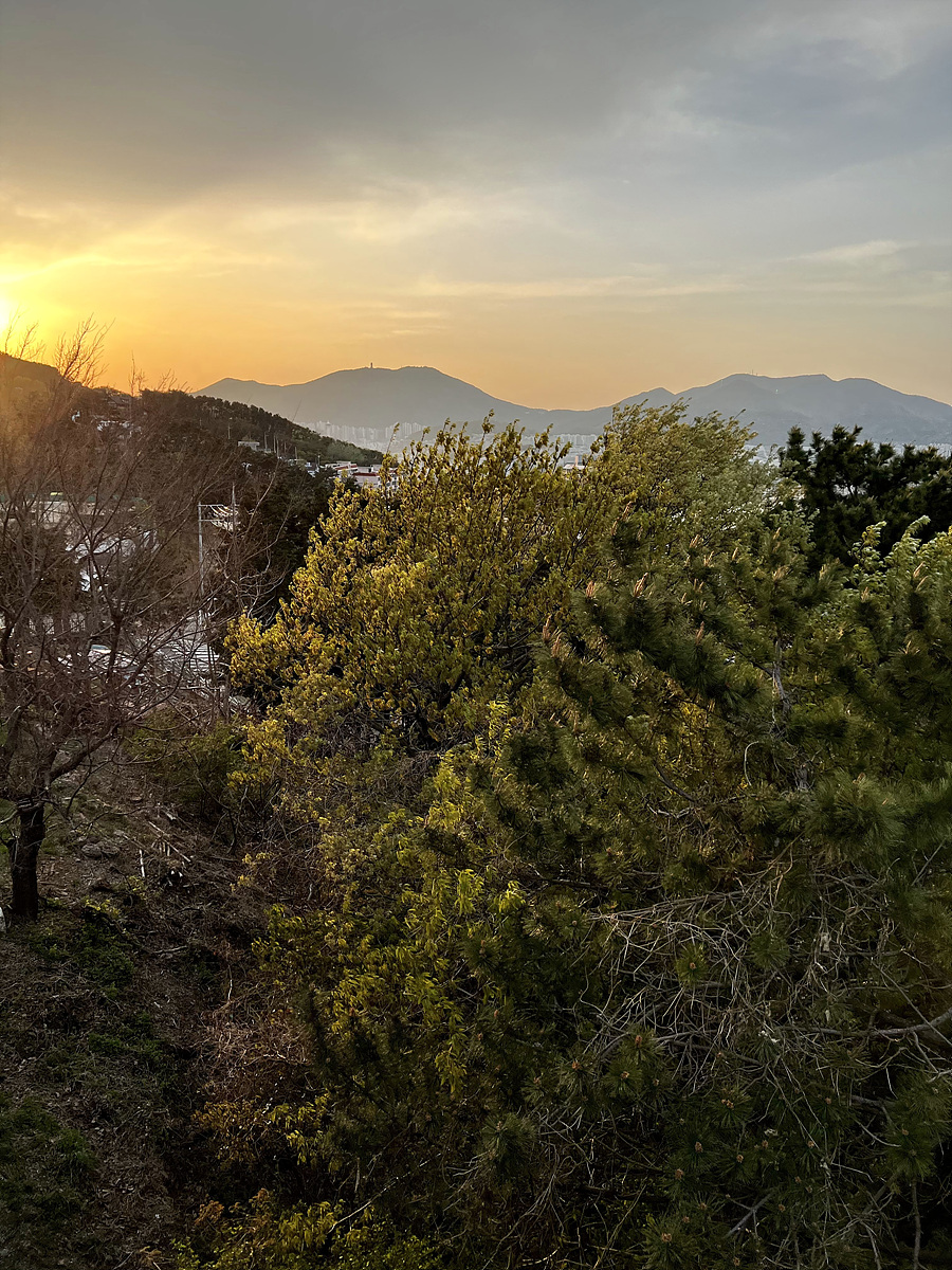 해가 서쪽으로 넘어가니 푸르스름한 어두움이 내려앉기 시작한다..