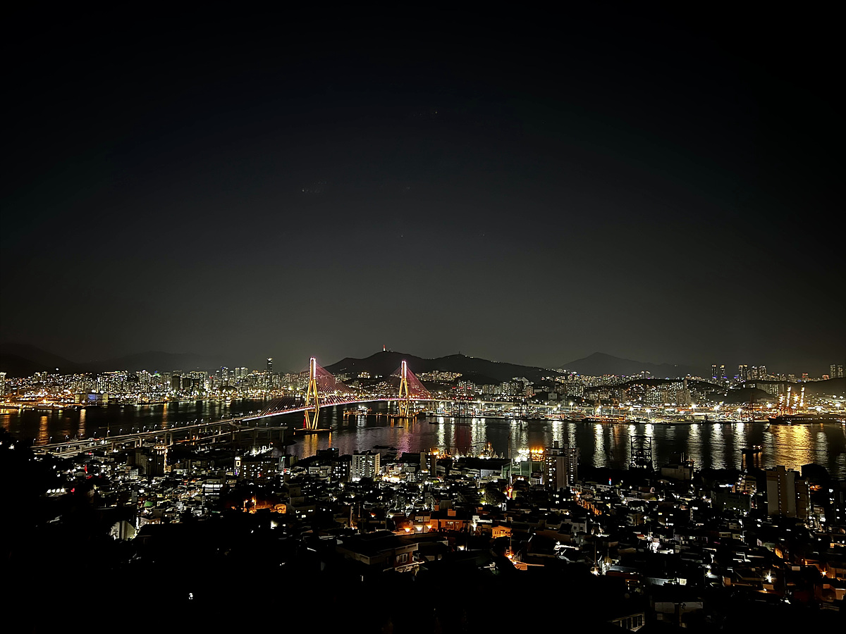 해도 많이 길어진 상태라 부산항대교에 조명이 들어오기까지 꽤 시간이 걸렸다..