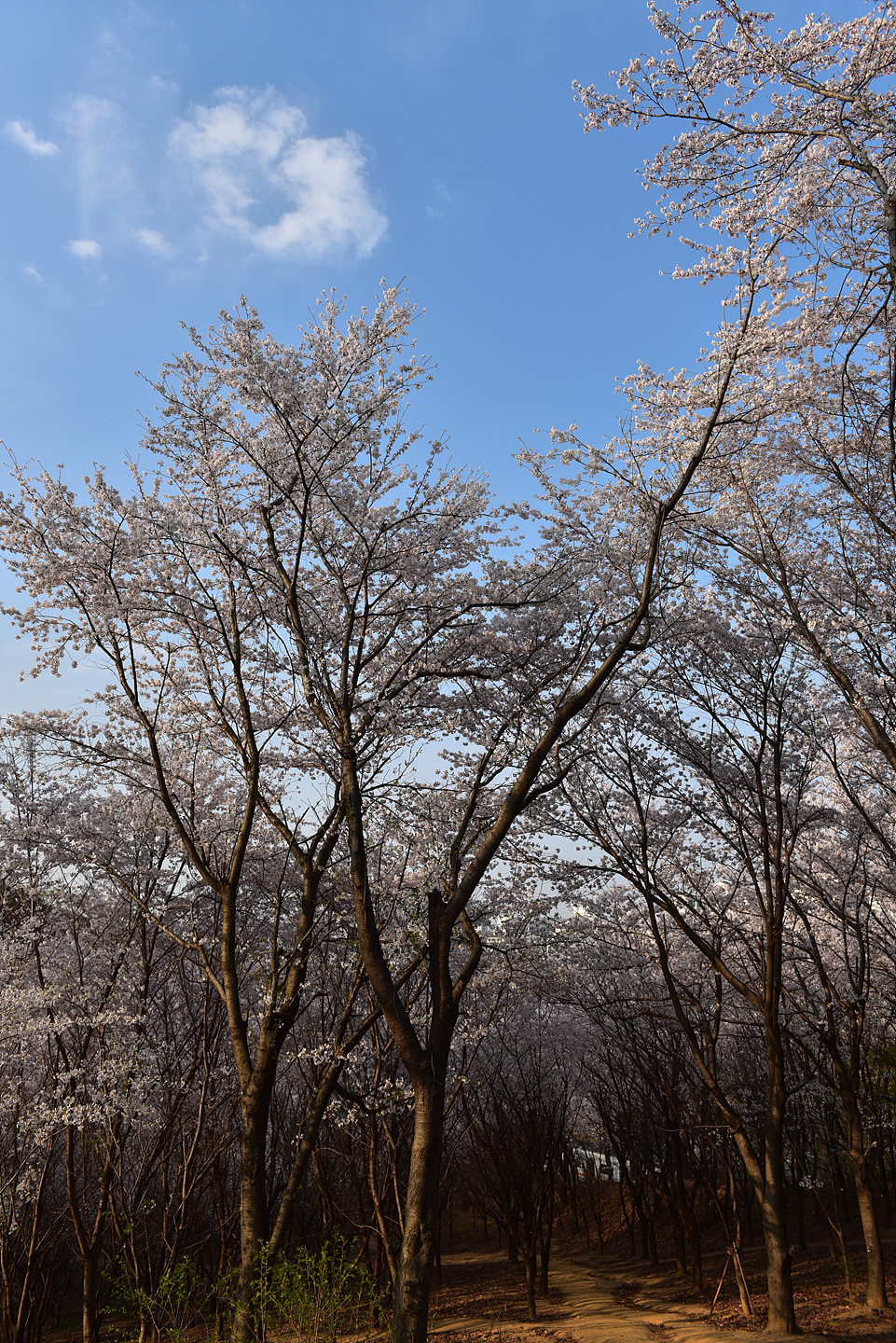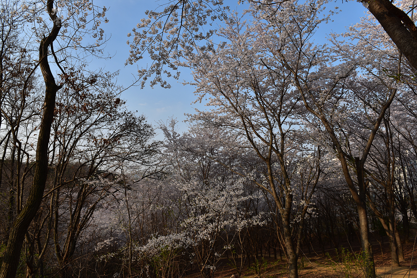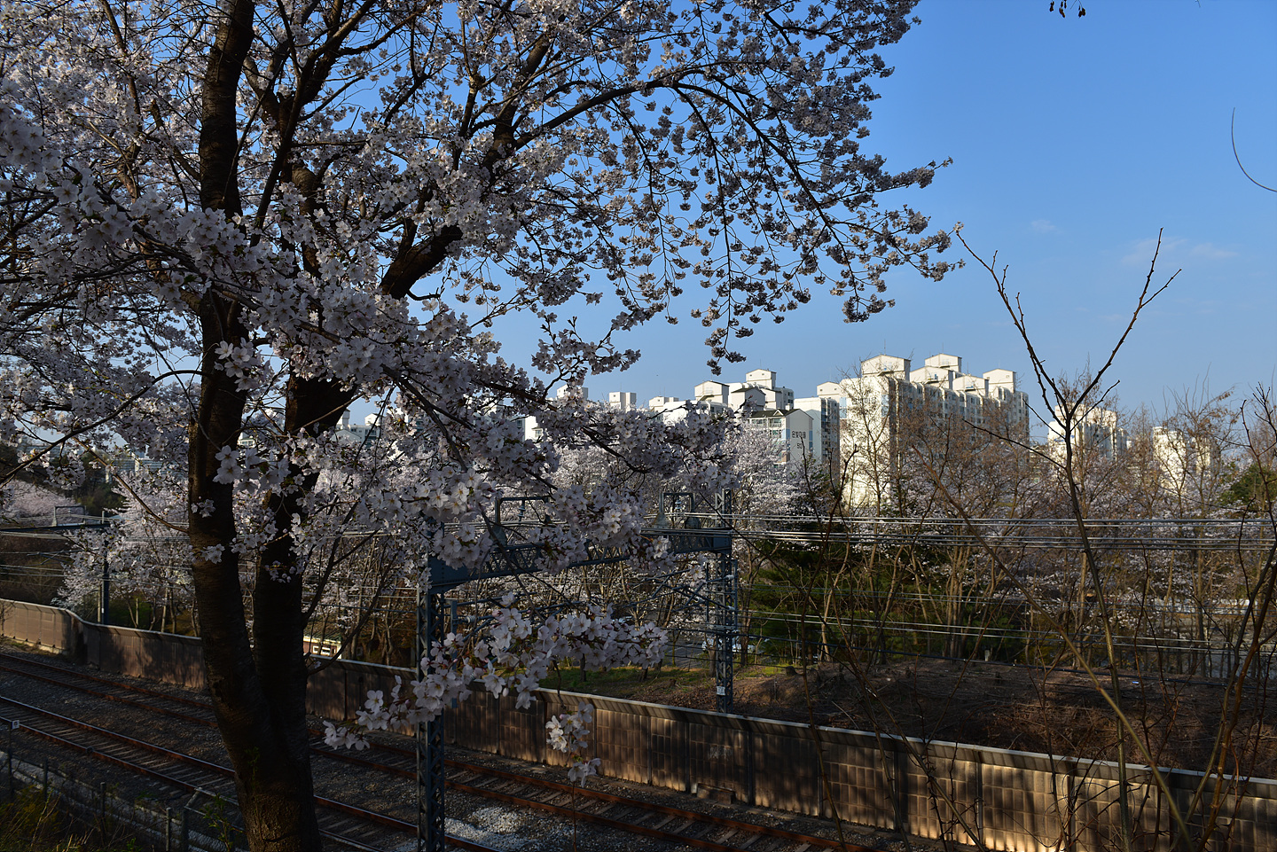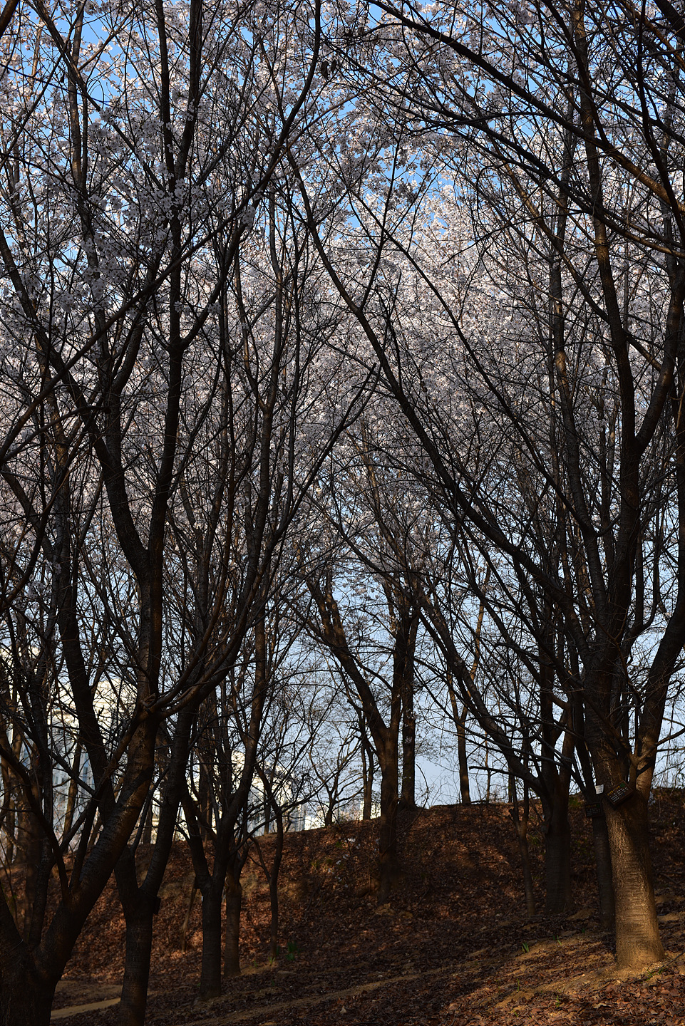 노출 차가 너무 나서 스팟측광으로 하늘을 죽이고 벚꽃을 살려봤다..