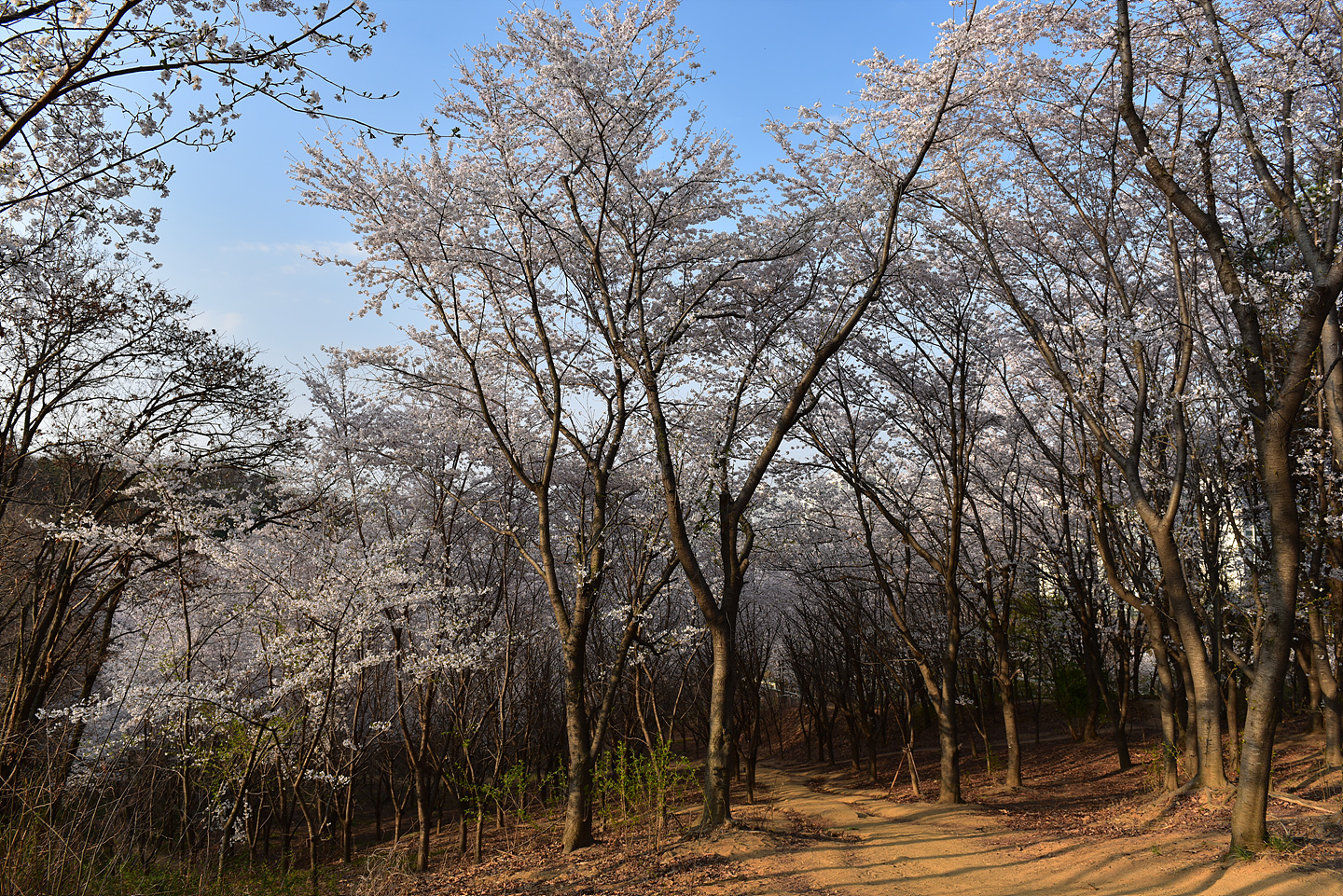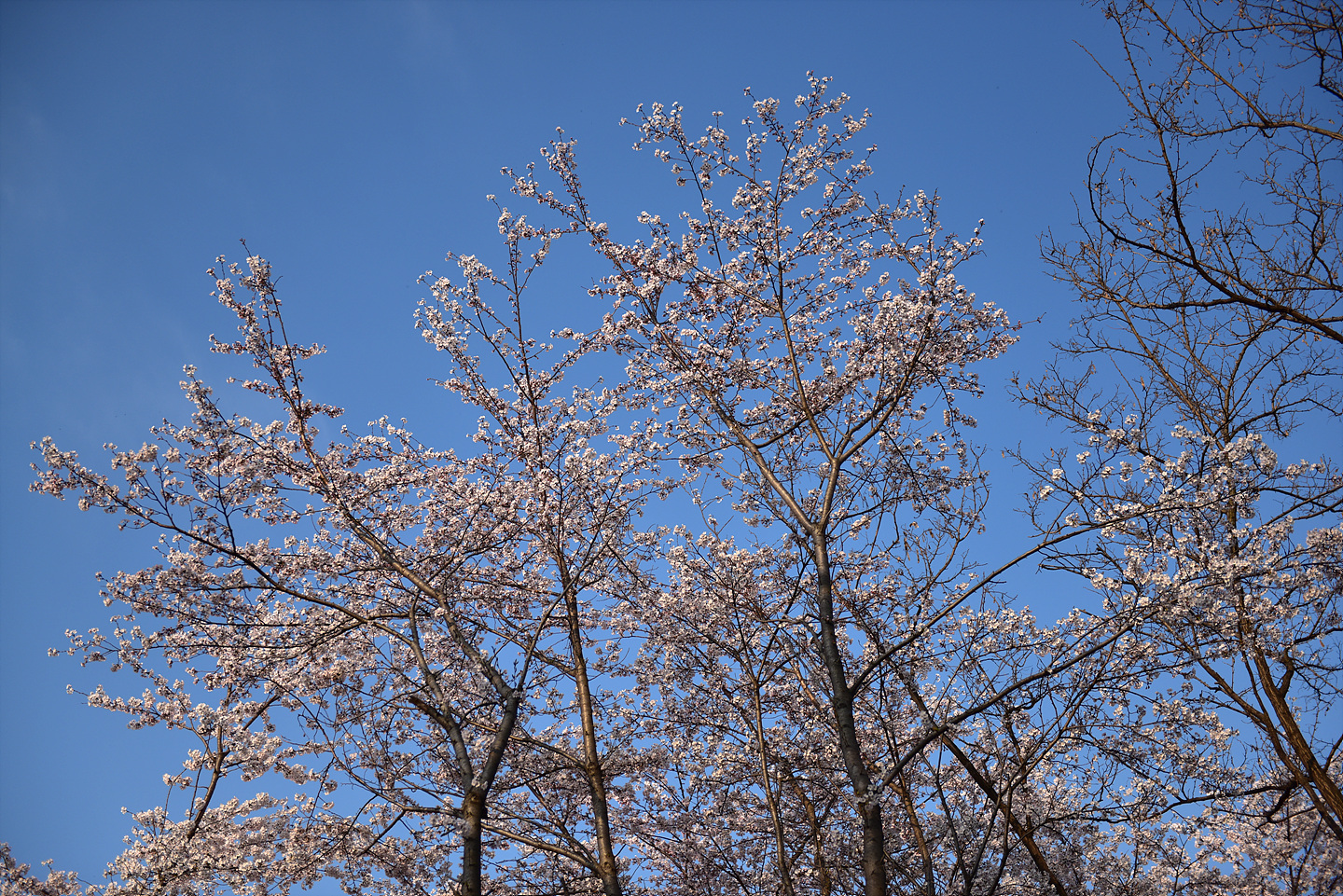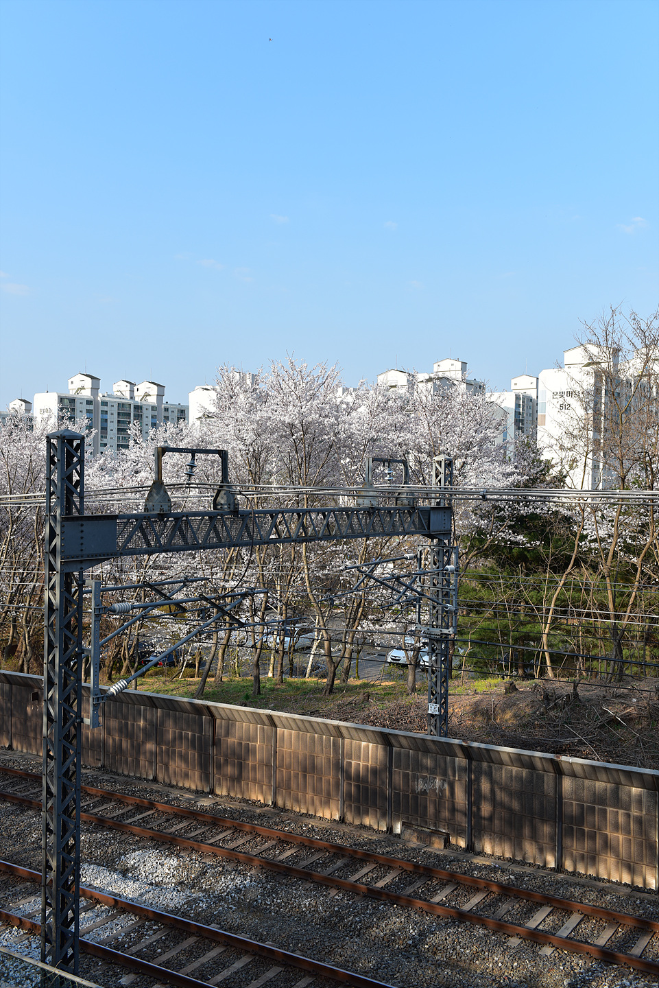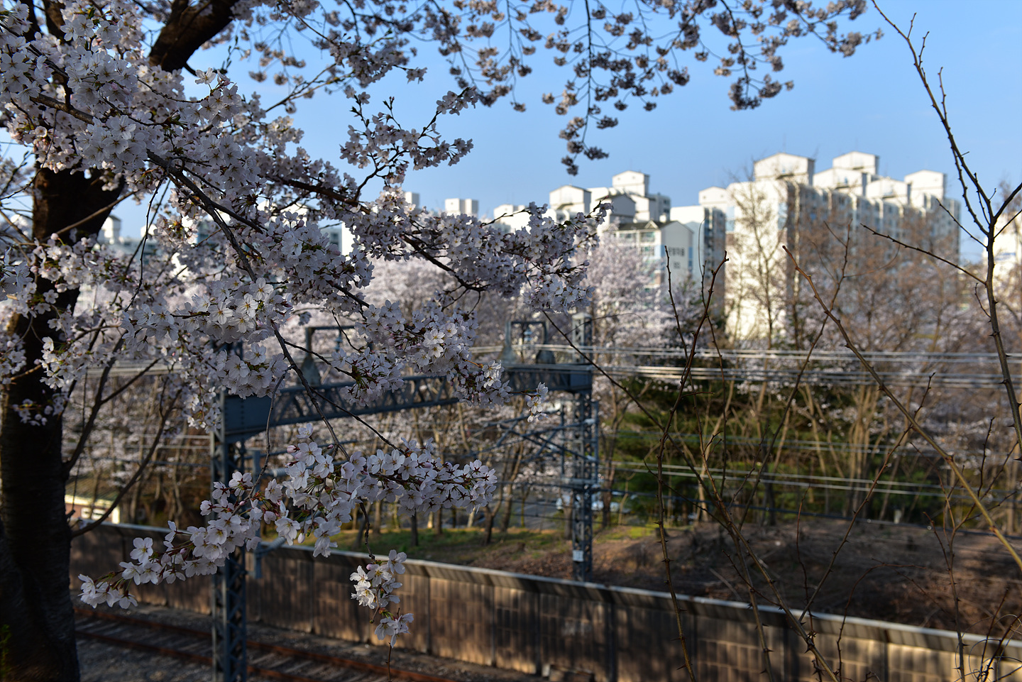 노출 차가 너무 나서 스팟측광으로 하늘을 죽이고 벚꽃을 살려봤다..