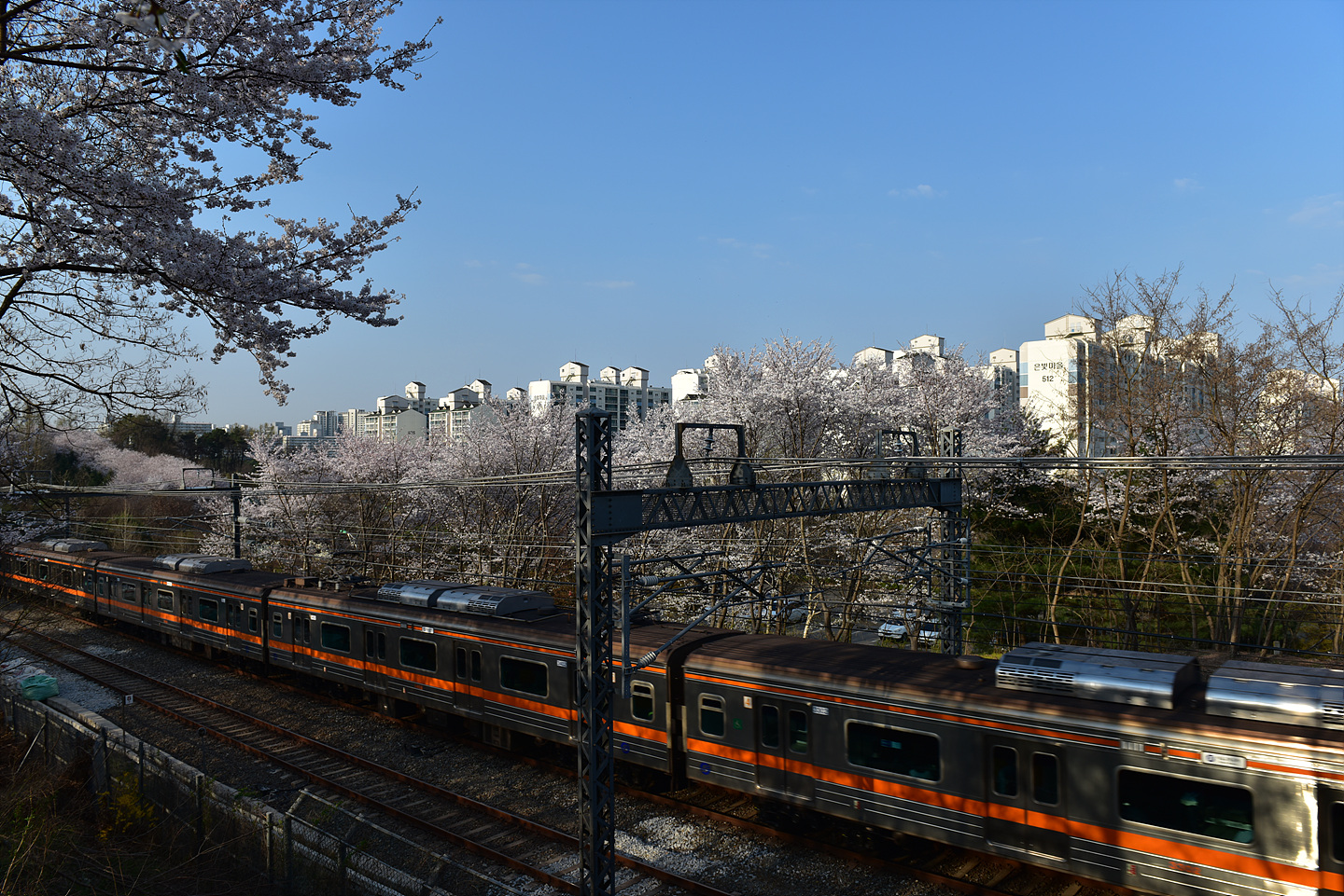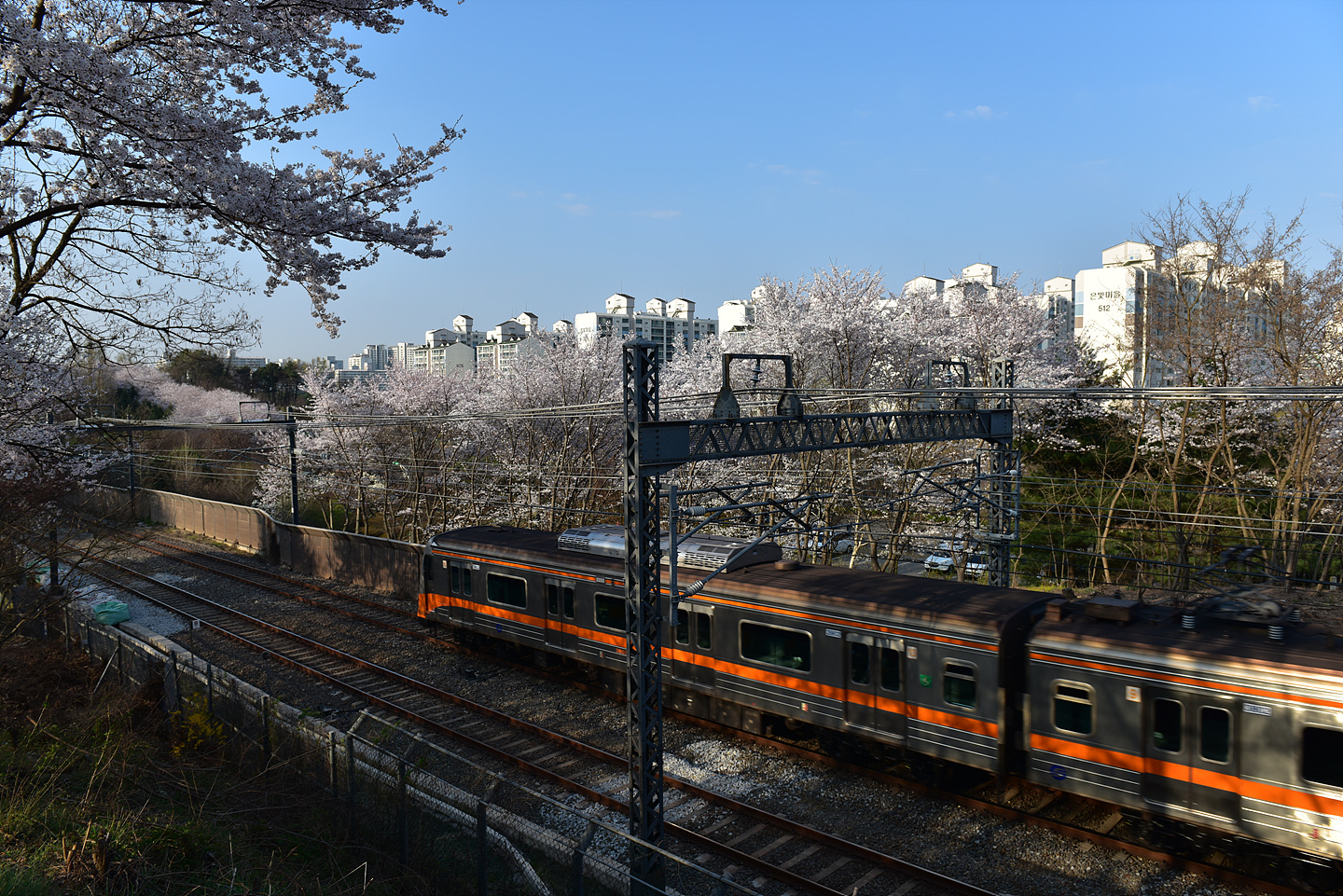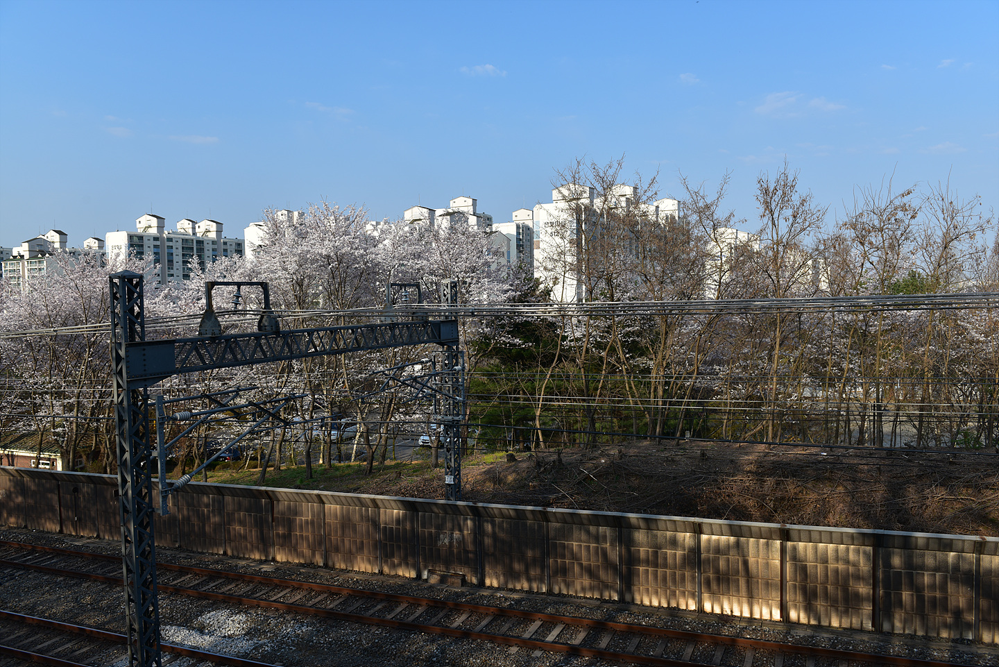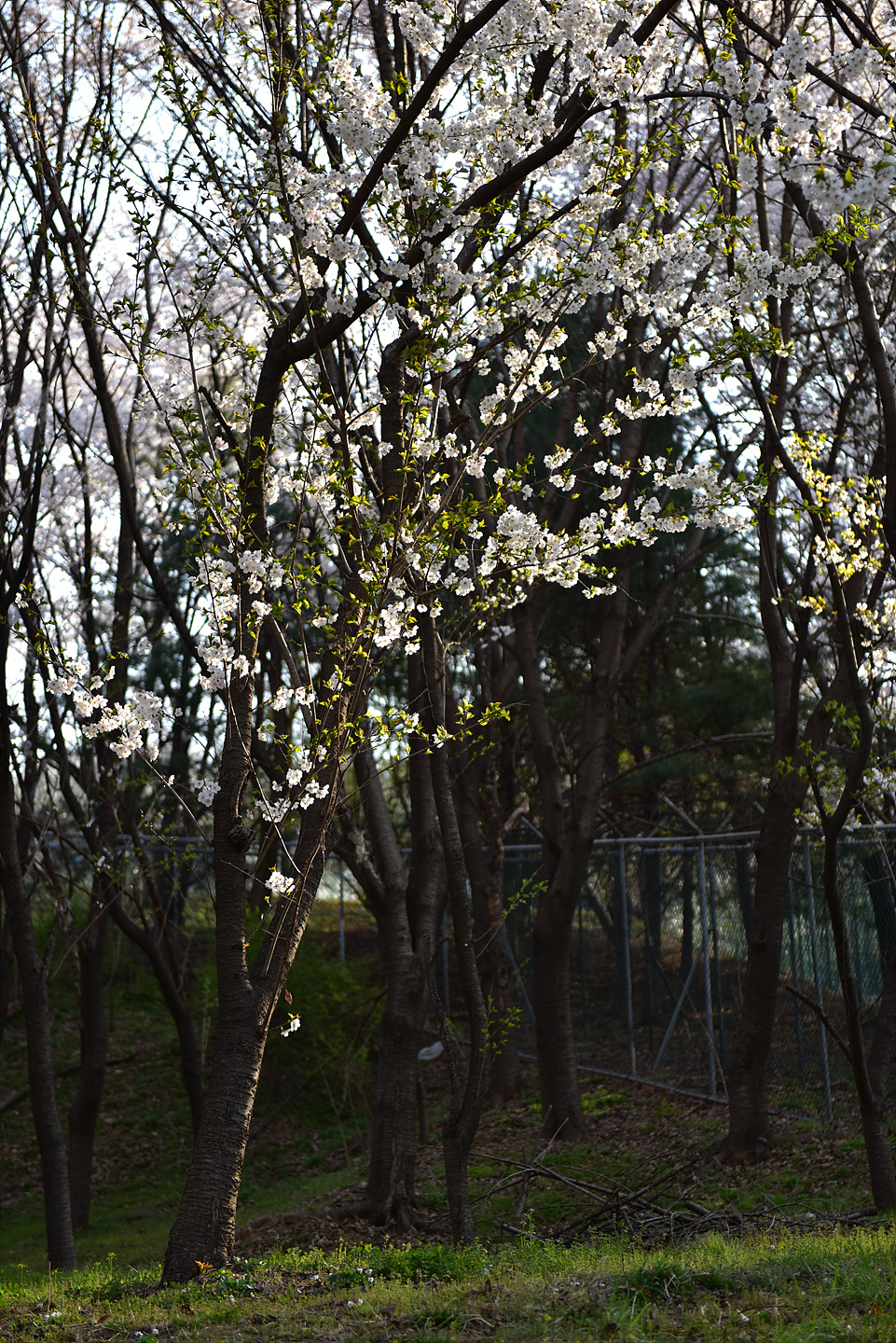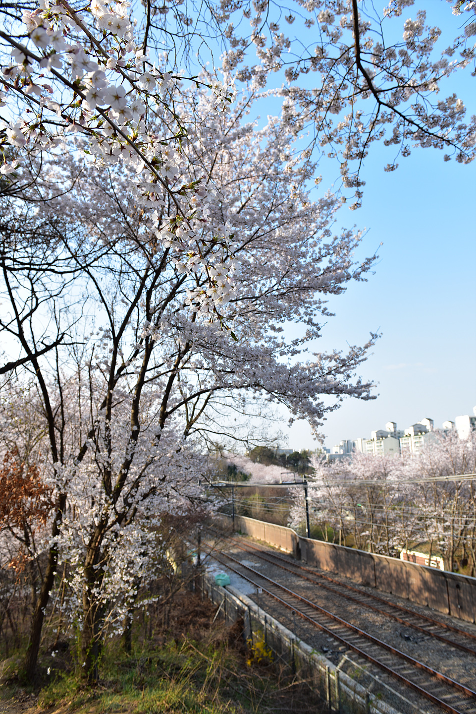 노출 차가 너무 나서 스팟측광으로 하늘을 죽이고 벚꽃을 살려봤다..