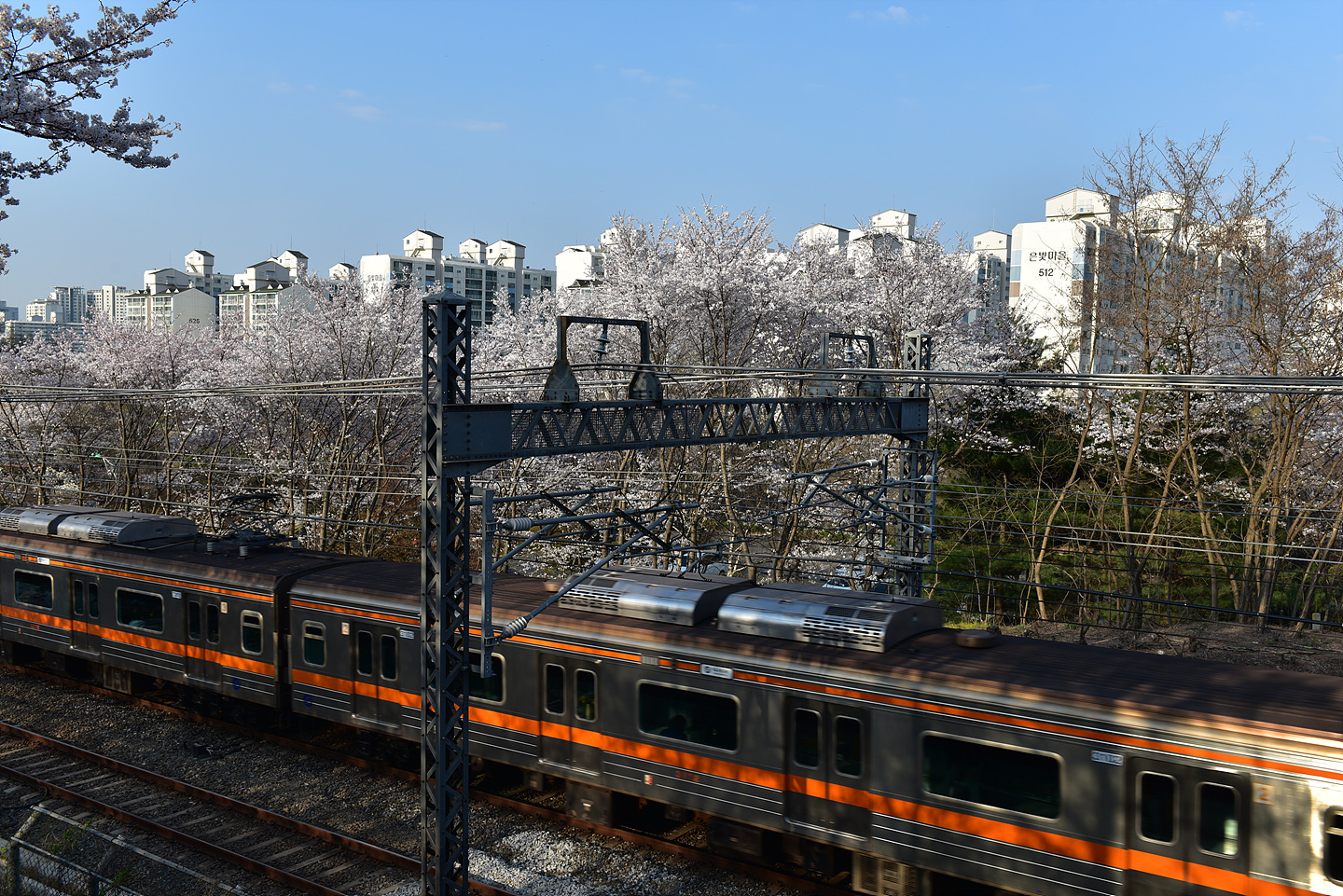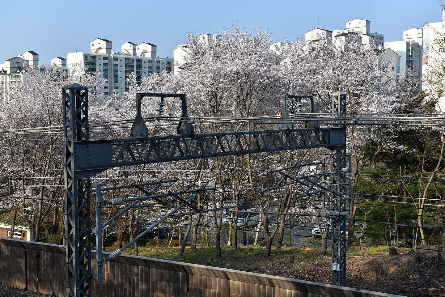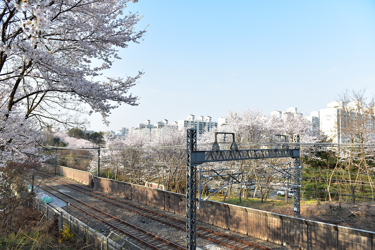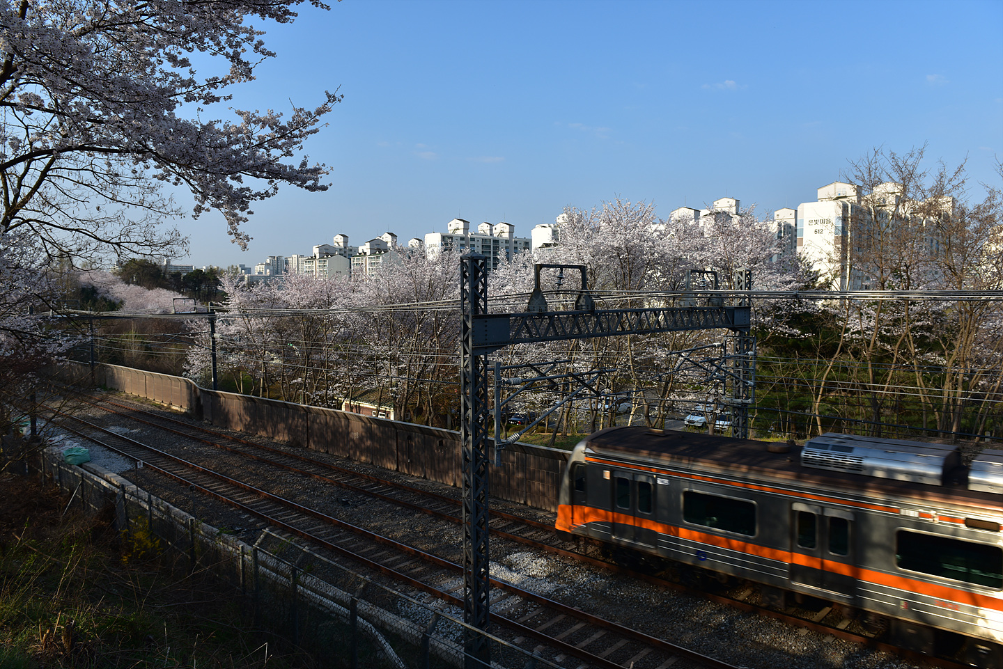 노출 차가 너무 나서 스팟측광으로 하늘을 죽이고 벚꽃을 살려봤다..