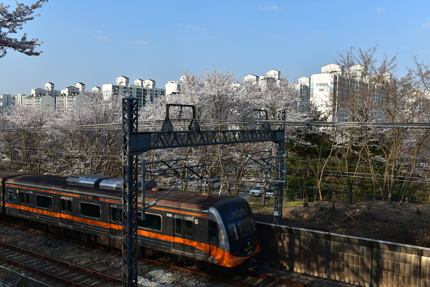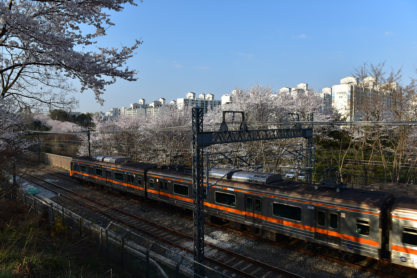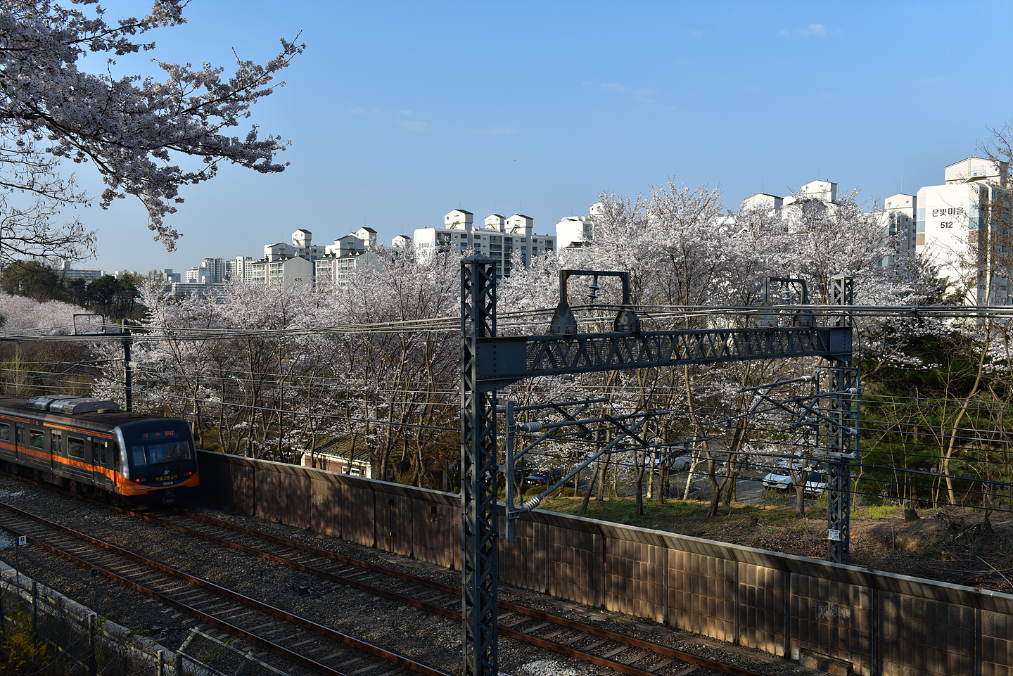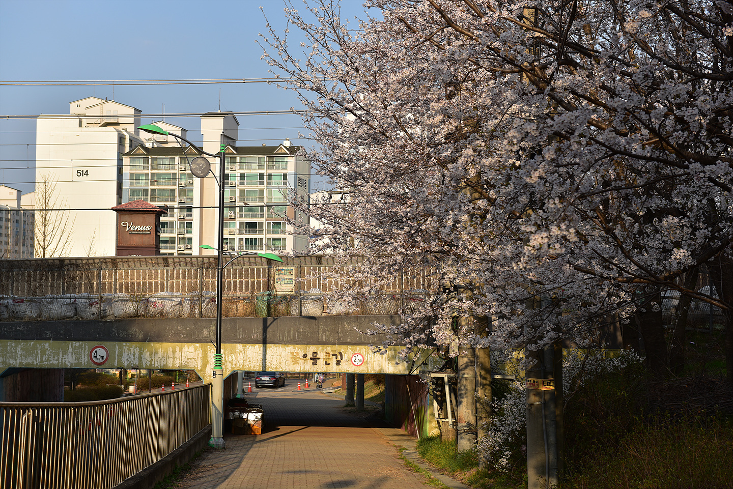 노출 차가 너무 나서 스팟측광으로 하늘을 죽이고 벚꽃을 살려봤다..