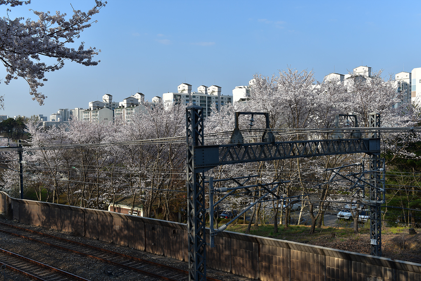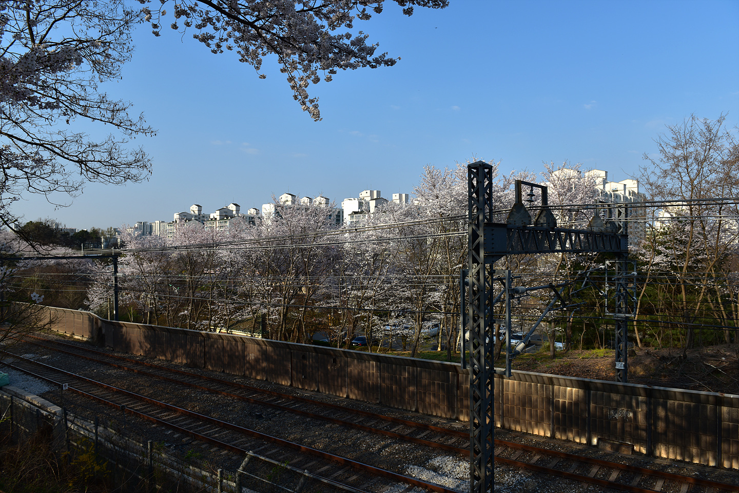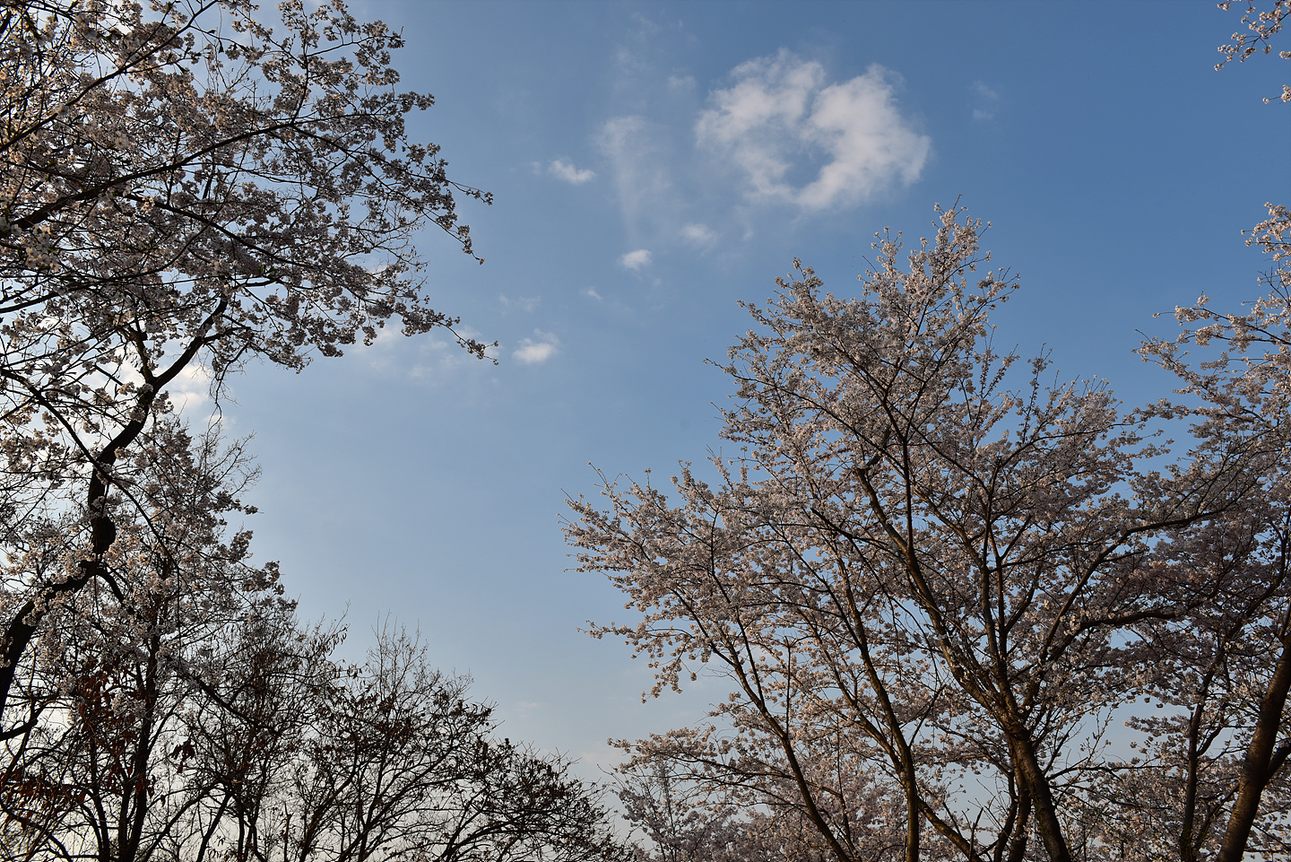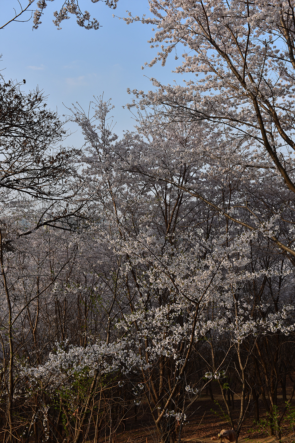 노출 차가 너무 나서 스팟측광으로 하늘을 죽이고 벚꽃을 살려봤다..