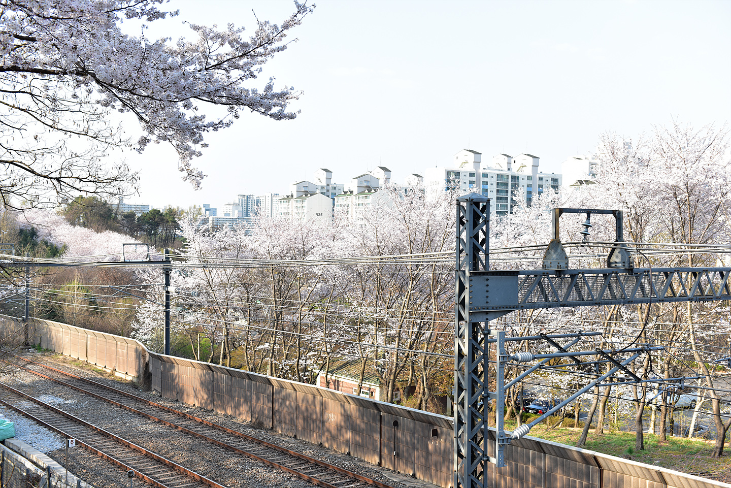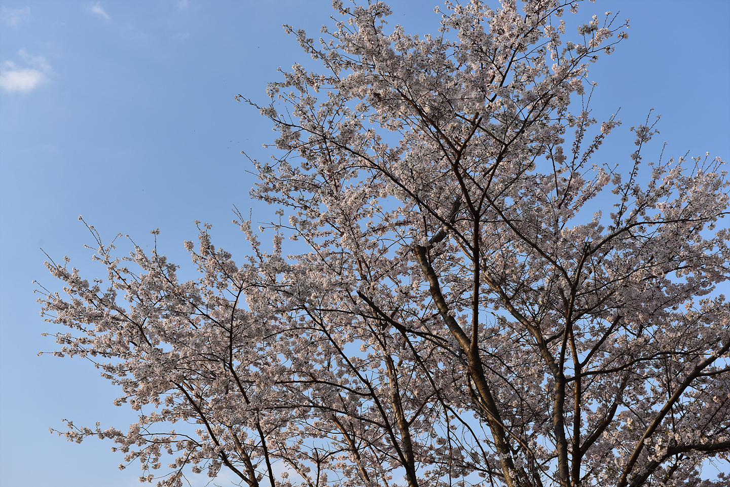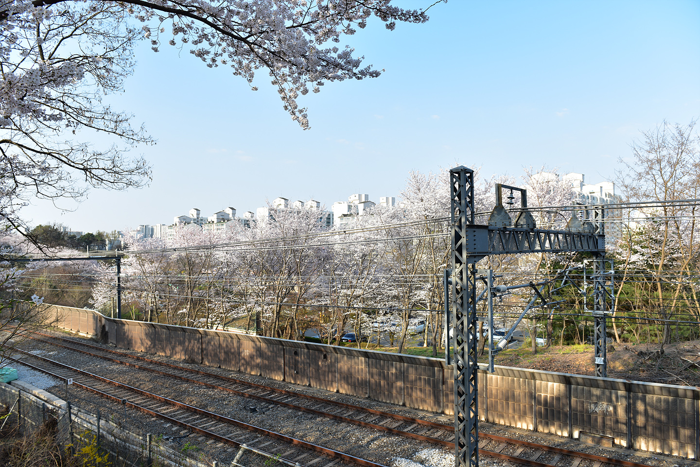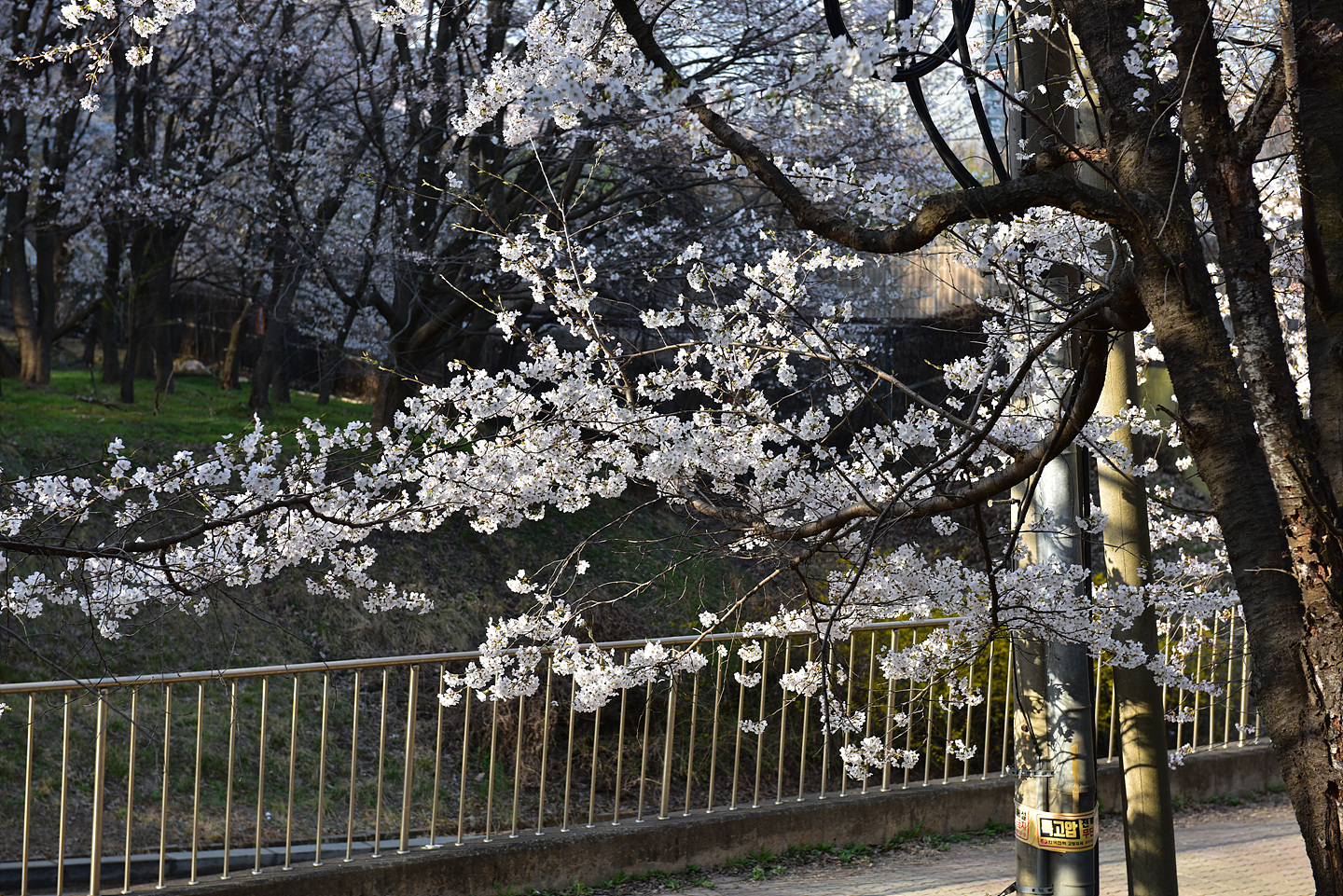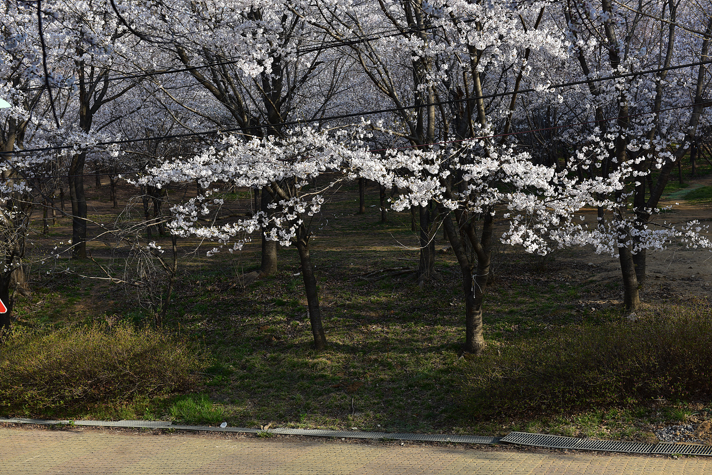 노출 차가 너무 나서 스팟측광으로 하늘을 죽이고 벚꽃을 살려봤다..