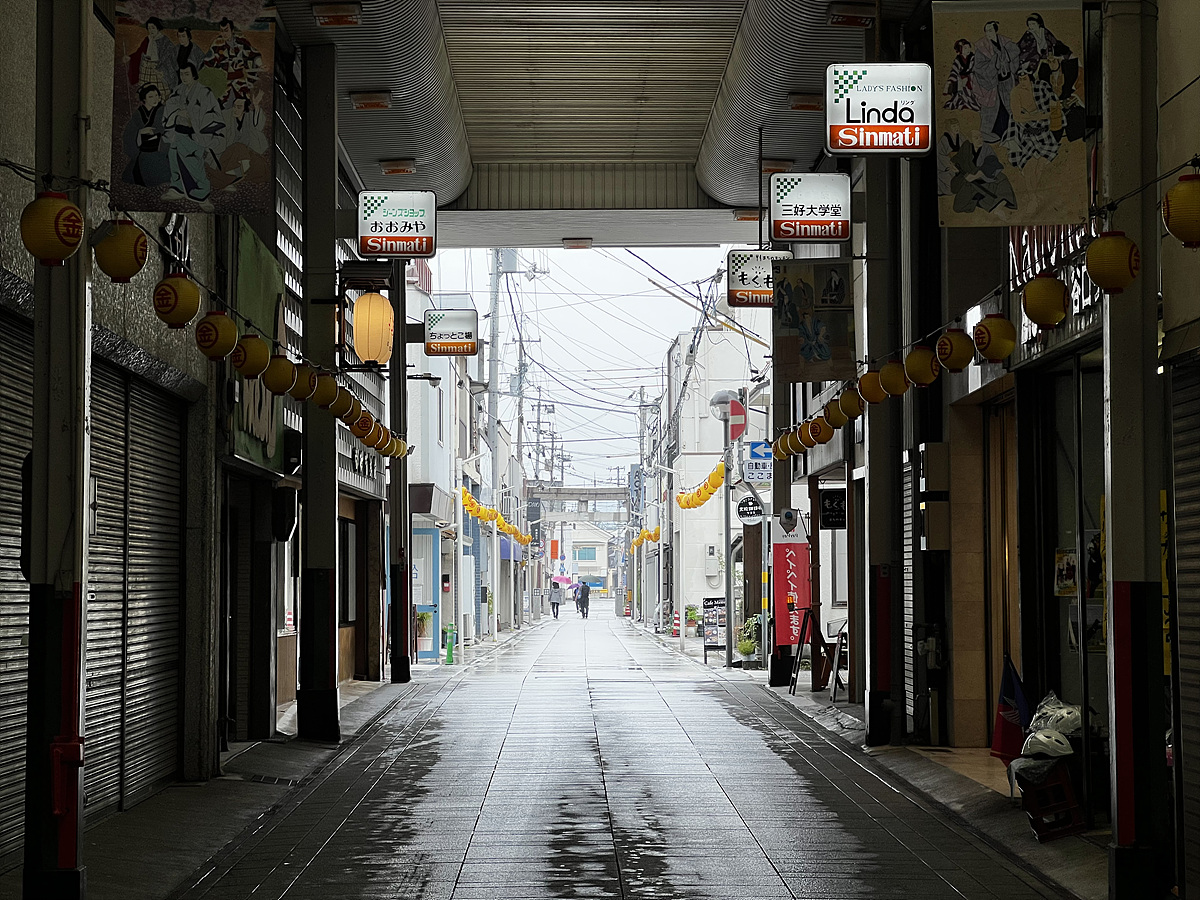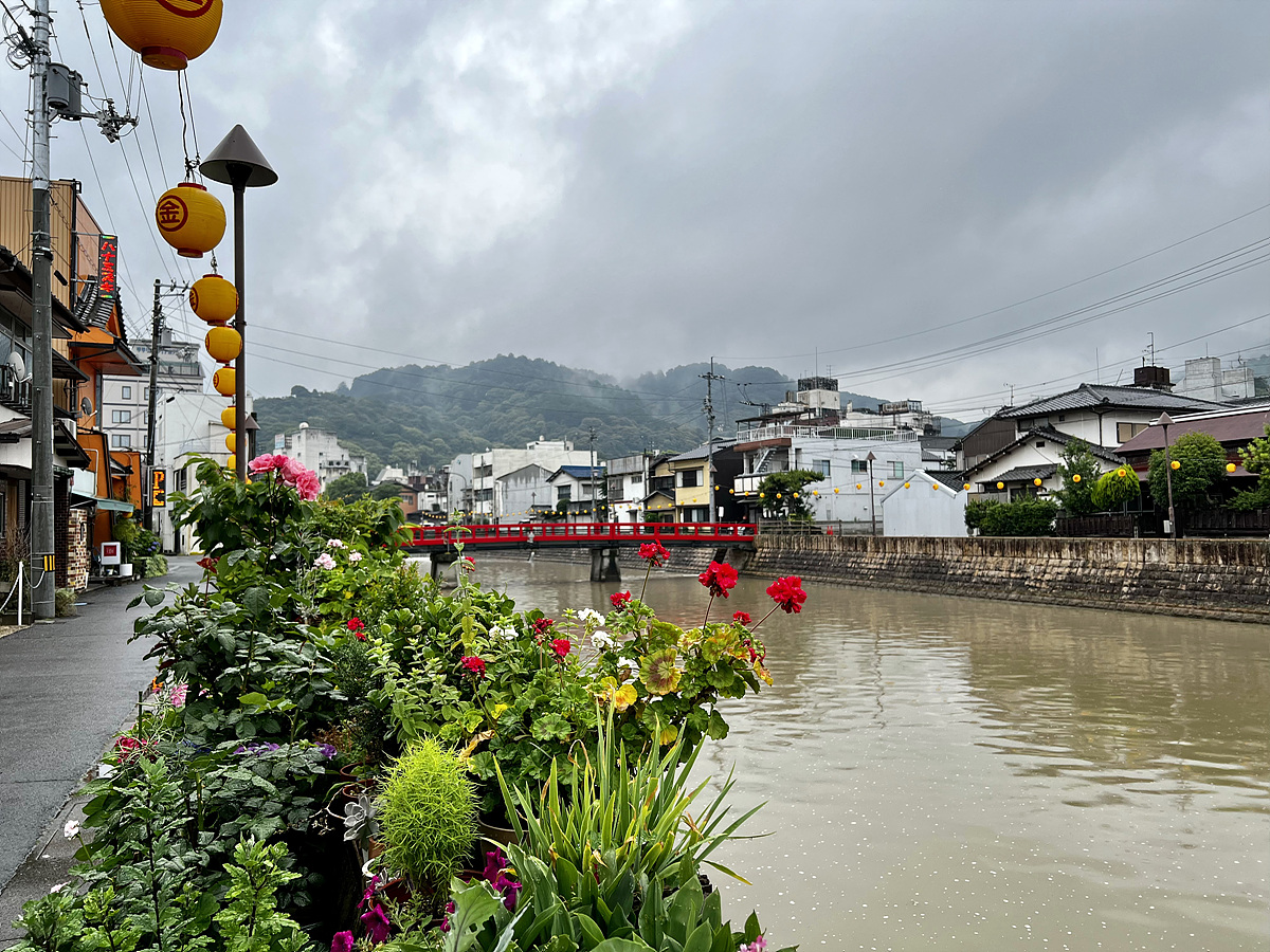 우산을 받쳐들고 비 내리는 고토히라 시내를 정처없이 걸어본다..