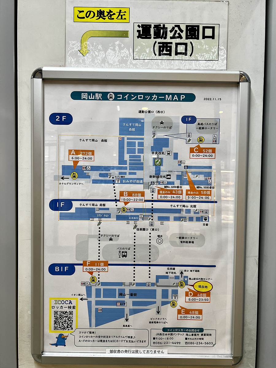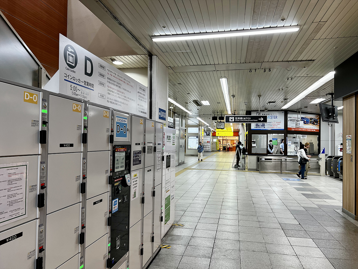 재래선(오카야마역은 신칸센도 지나는 역이라..) 개찰구 앞에 있는 라커에 집어넣었다..