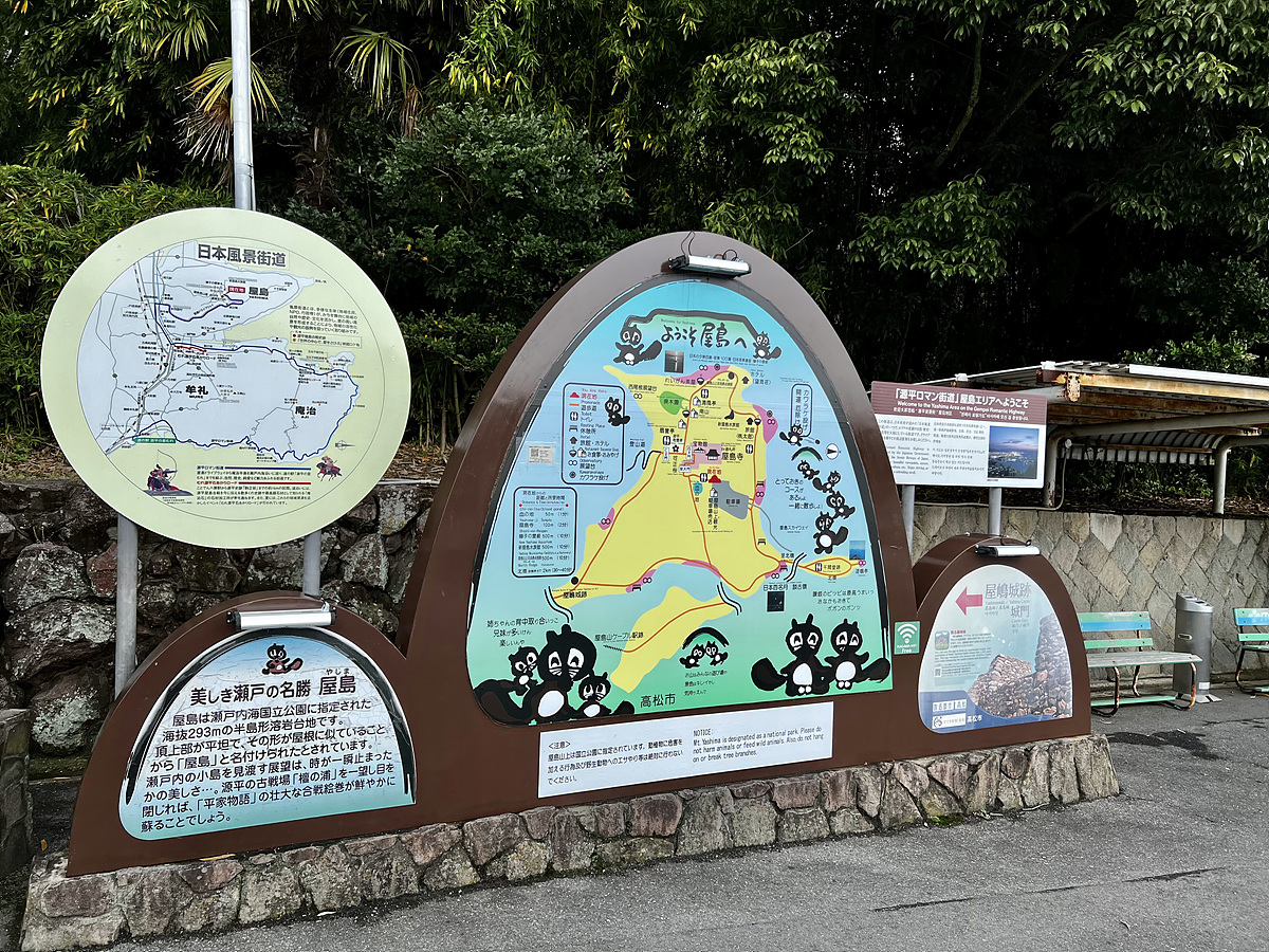 다카마쓰시 북동부에 있는 야시마는 1934년에 세토나이카이 국립 공원과 국가 사적 및 천연기념물로 지정되었습니다. ‘메사'라는 수평의 경암층으로 뒤덮였고, 주위의 일부가 가파른 절벽으로 둘러싸인 테이블 형태의 고지이며, 커다란 지붕처럼 보여서 야시마(屋島)라 불립니다. 가장 높은 곳은 약 300미터, 남북으로 약 5킬로미터, 동서로 약 2킬로미터이며, 등산이나 하이킹을 할 수 있고, 야생 조류나 식물 등을 관찰할 수 있습니다. 야시마 성터나 야시마지 절, 전망대와 수족관 외에도 그 주변에는 겐페이 전투의 사적이 곳곳에 남아 있는 무레와 영화 「세상의 중심에서 사랑을 외치다」의 촬영지인 아지 등 매력 넘치는 명소가 가득합니다.