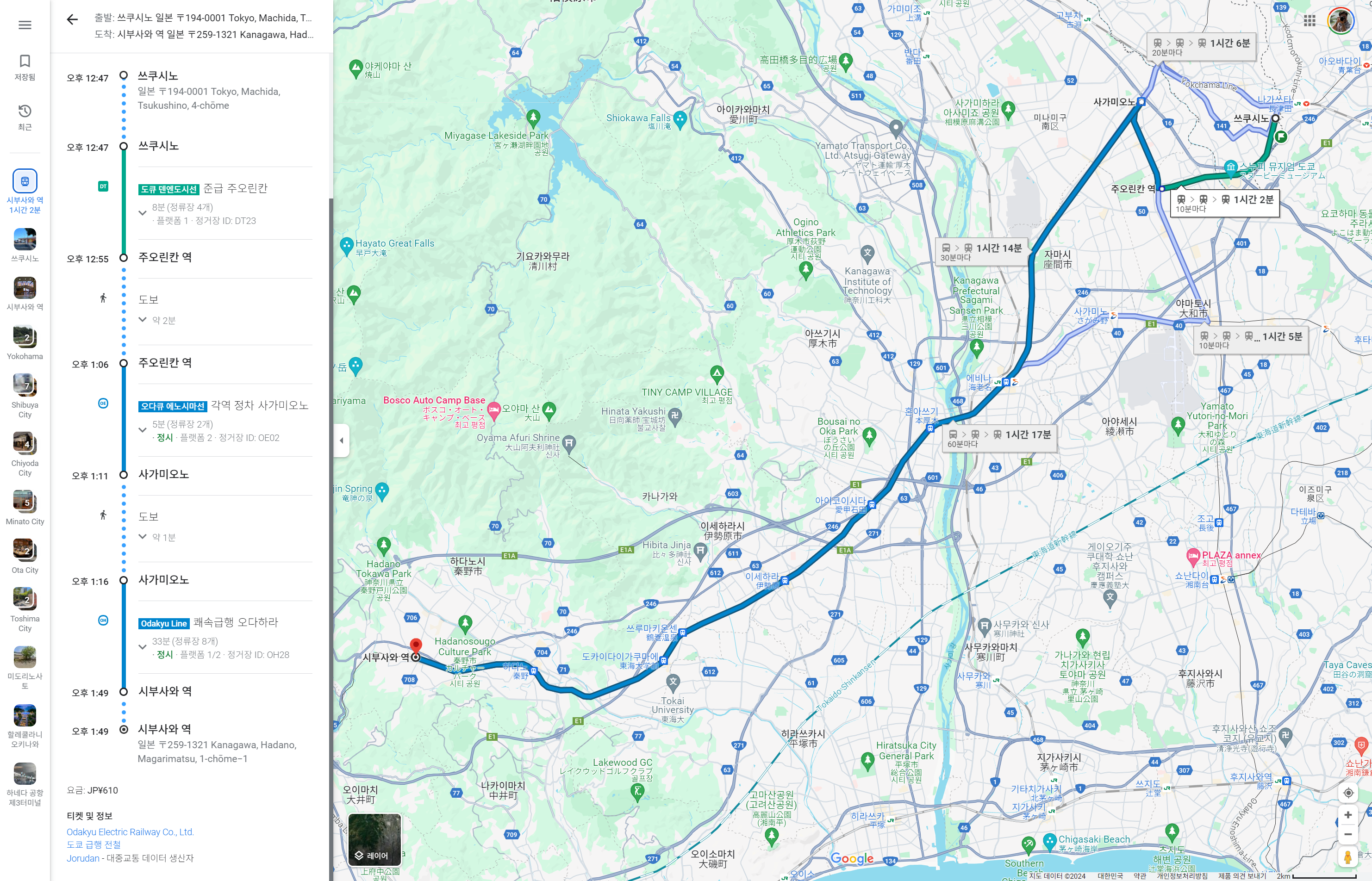 사가미오노역에서 오다큐센으로 '시부사와역'까지..