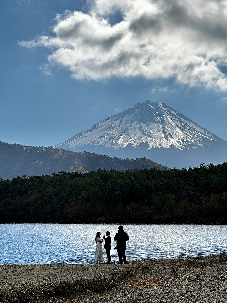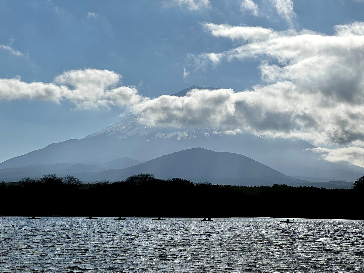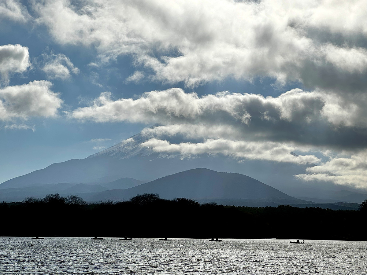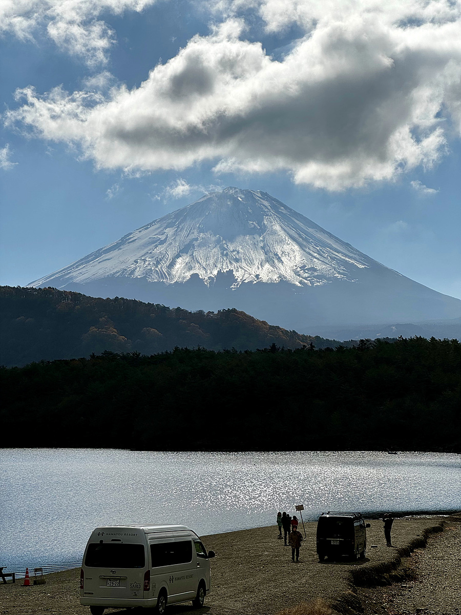 바람이 조금만 더 잠잠하면 호수에 후지산의 반영이 비칠 거도 같은데..