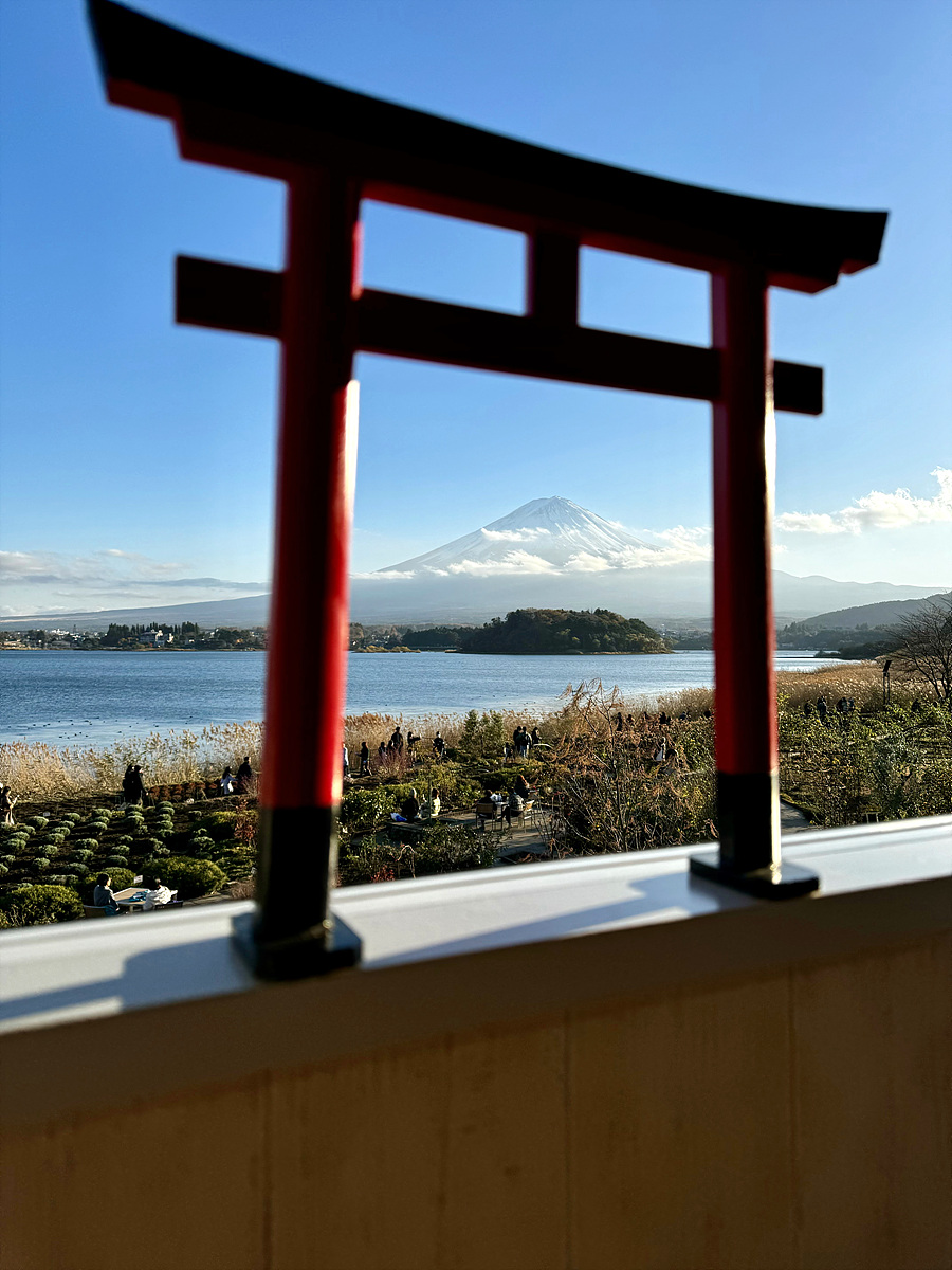 창가 자리에 조그마~한 도리이가 있어서 후지산과 함께 사진을 찍을 수 있게 해놨는데..