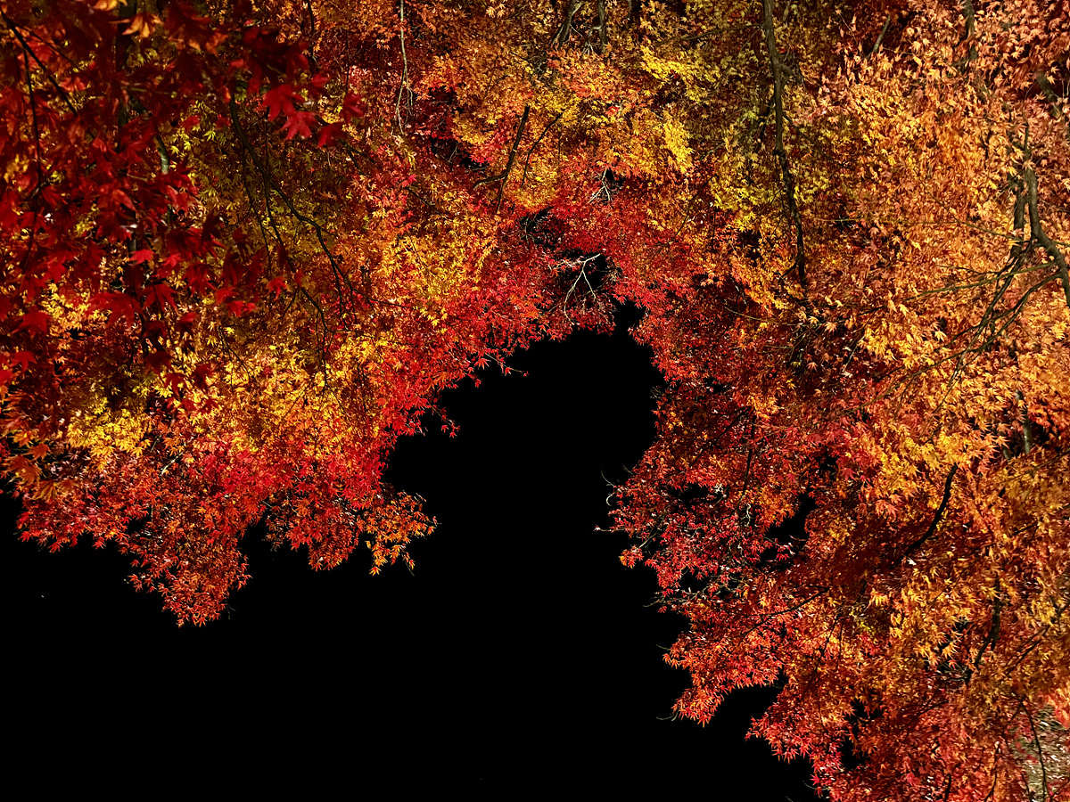 까만 하늘과 대비되니 단풍의 빛깔이 더 강렬하다..