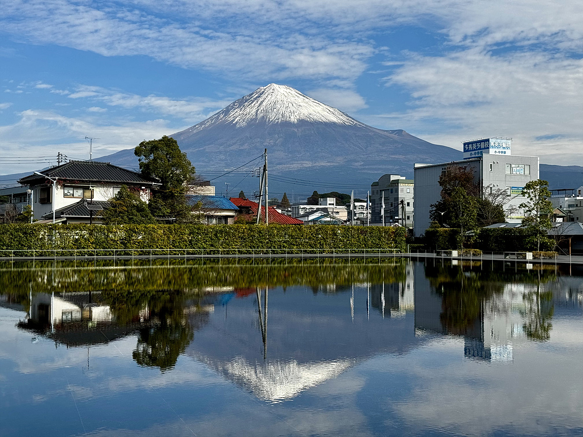 센터로 들어가기 전에 후지산 반영을 담아보려고 하는데..