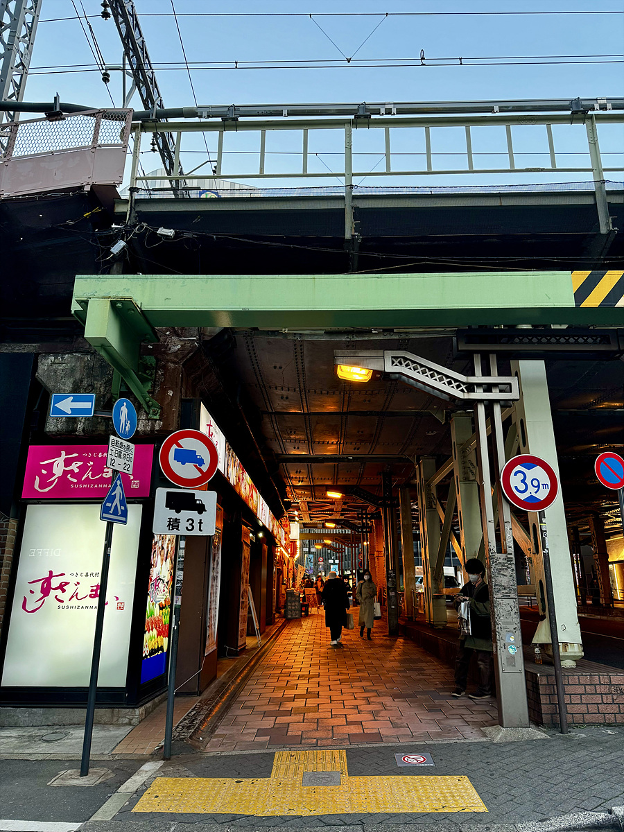 야마노테센이 지나는 철길 아래에 있는 살짝 고급스런 음식점..
