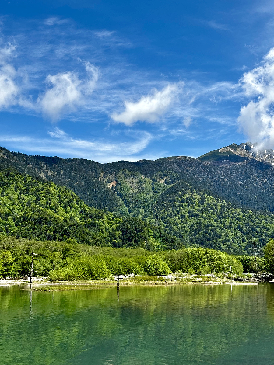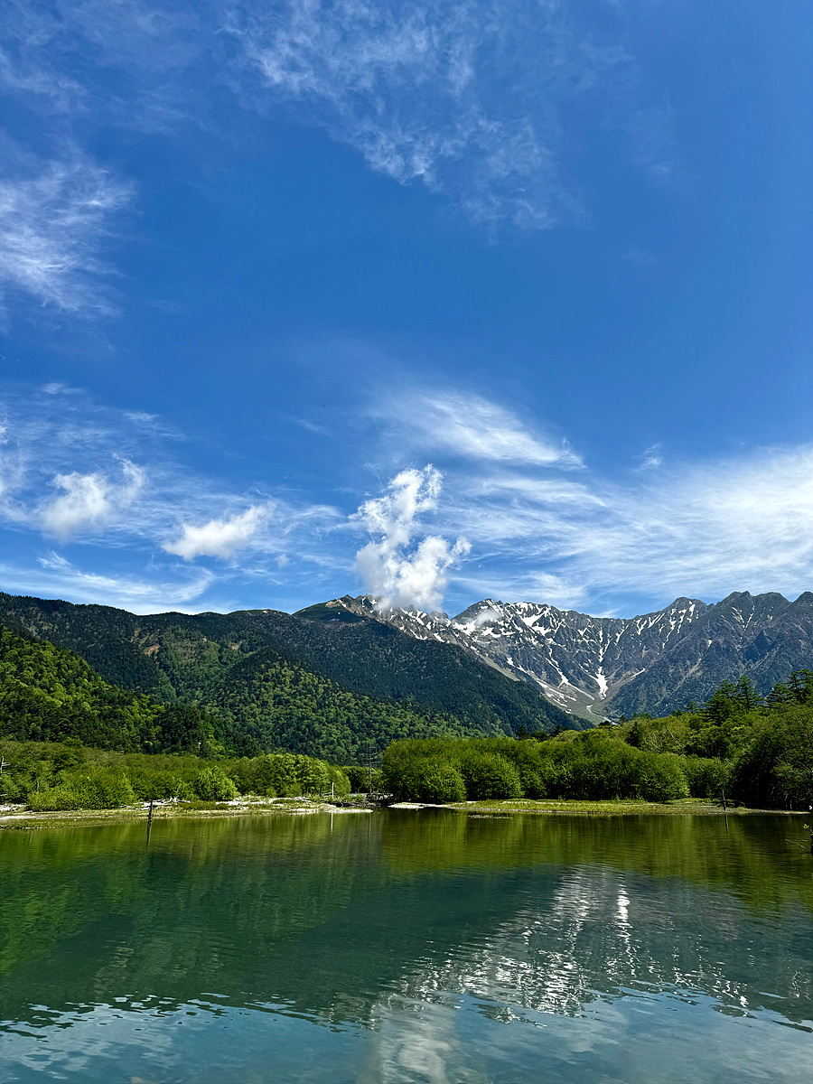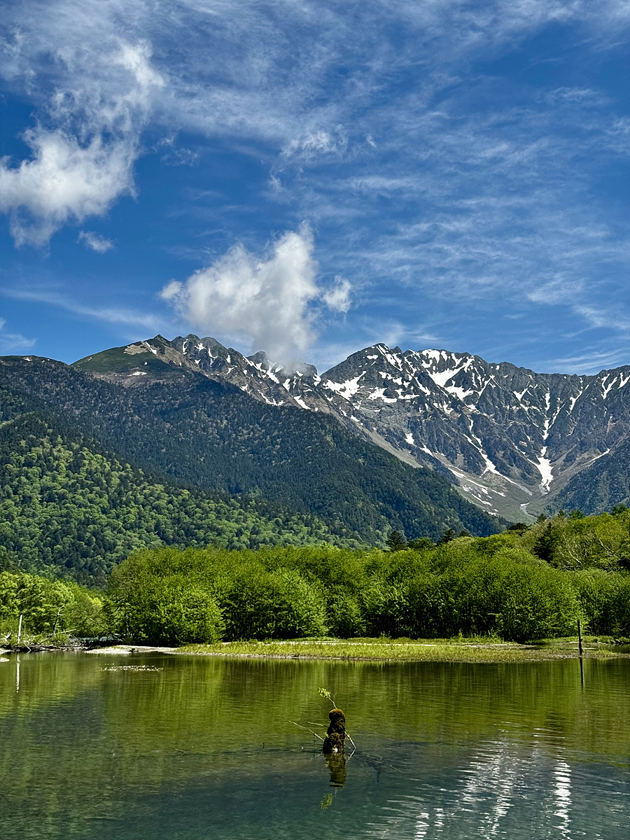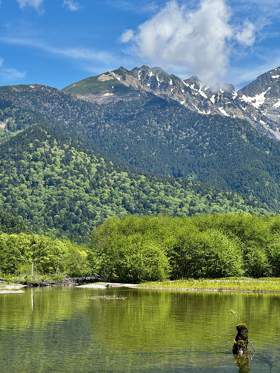 산봉우리에 남은 잔설과 봄의 신록.. 맑디 맑은 호수까지..