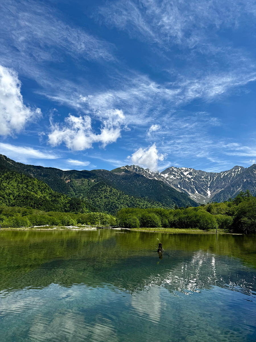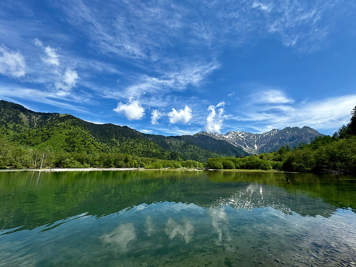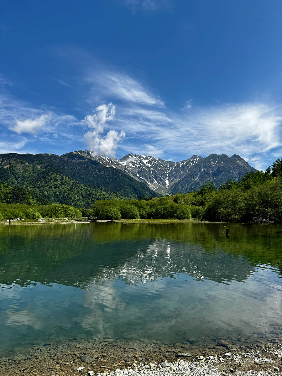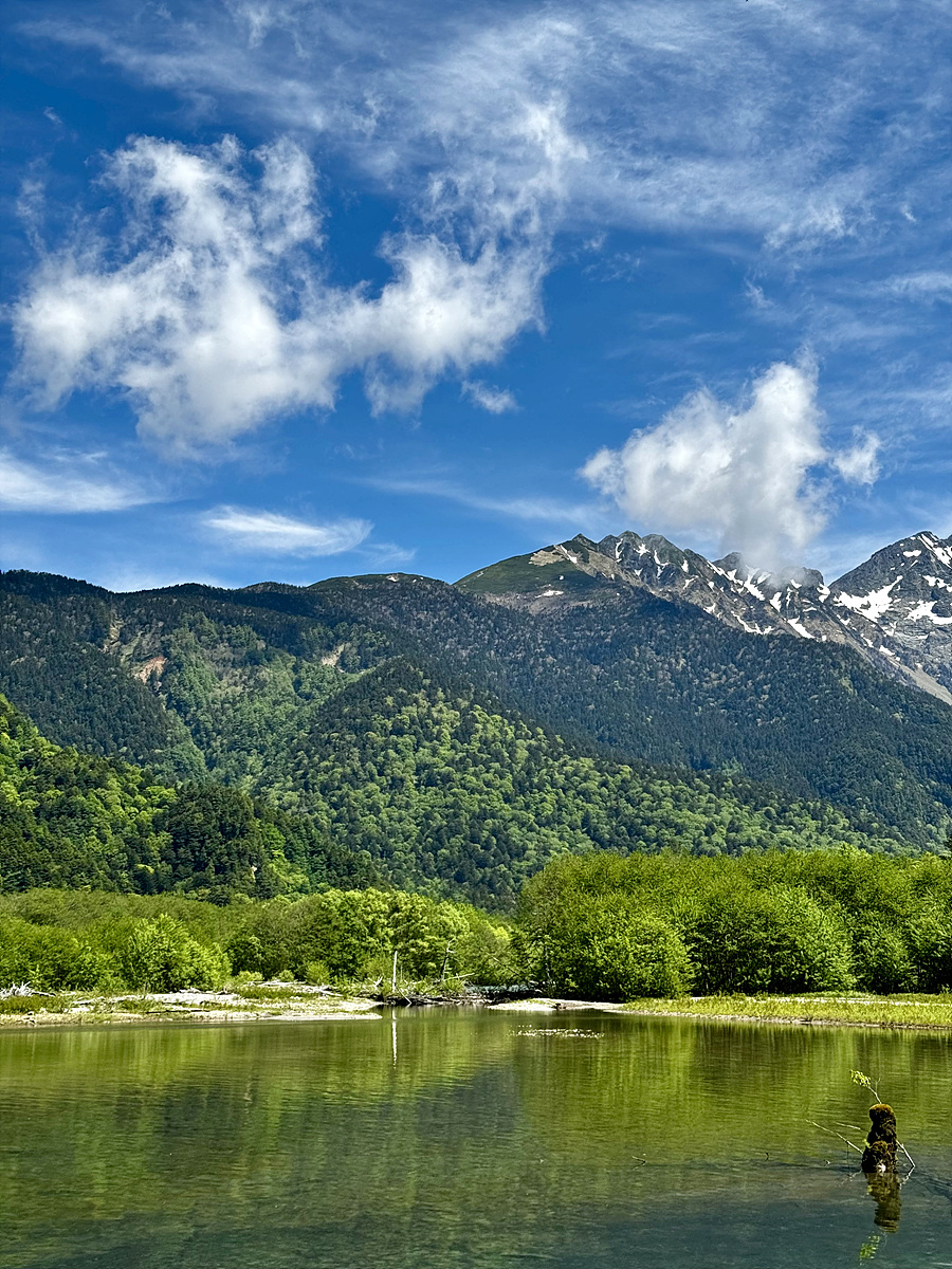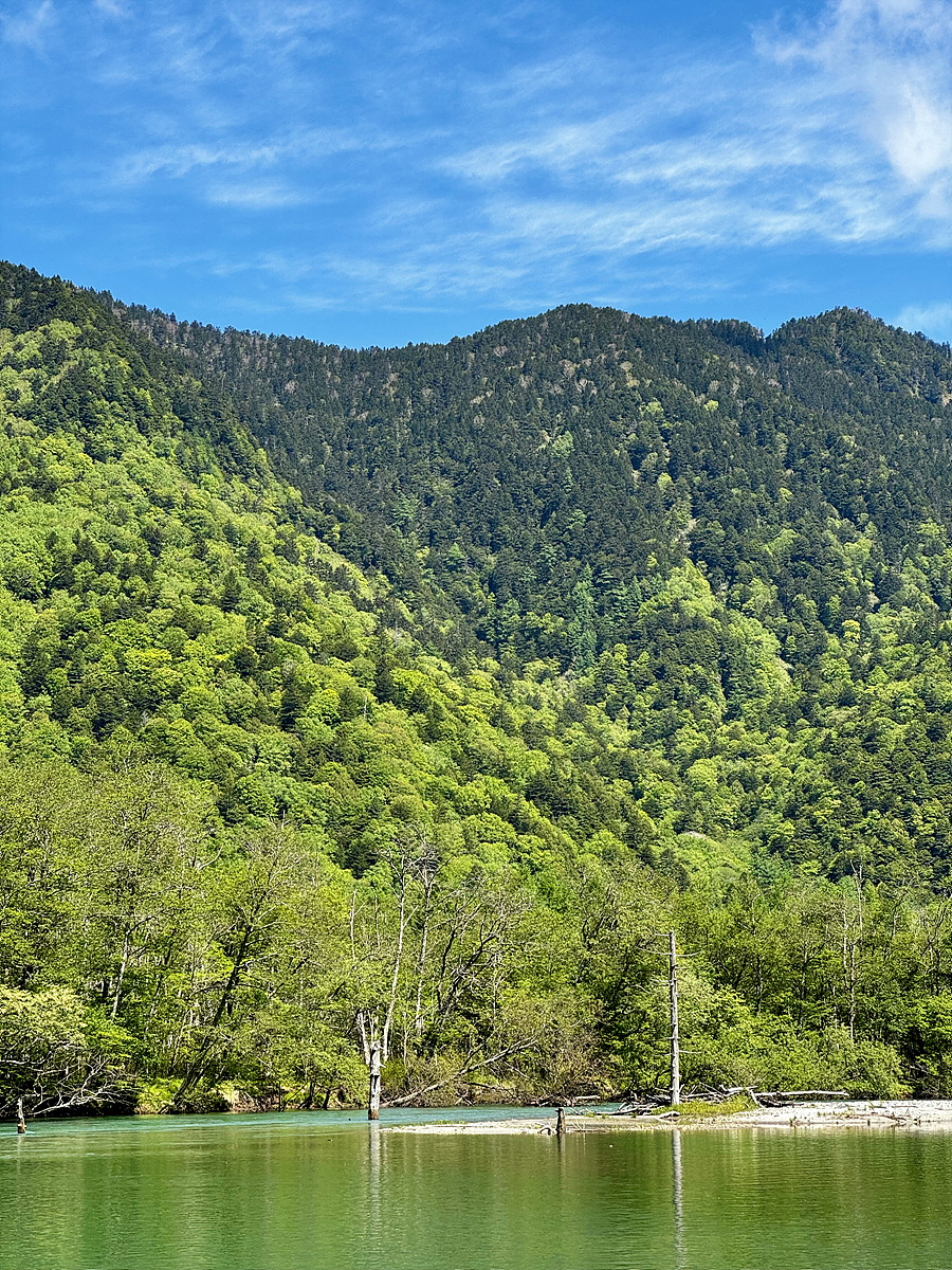 산봉우리에 남은 잔설과 봄의 신록.. 맑디 맑은 호수까지..