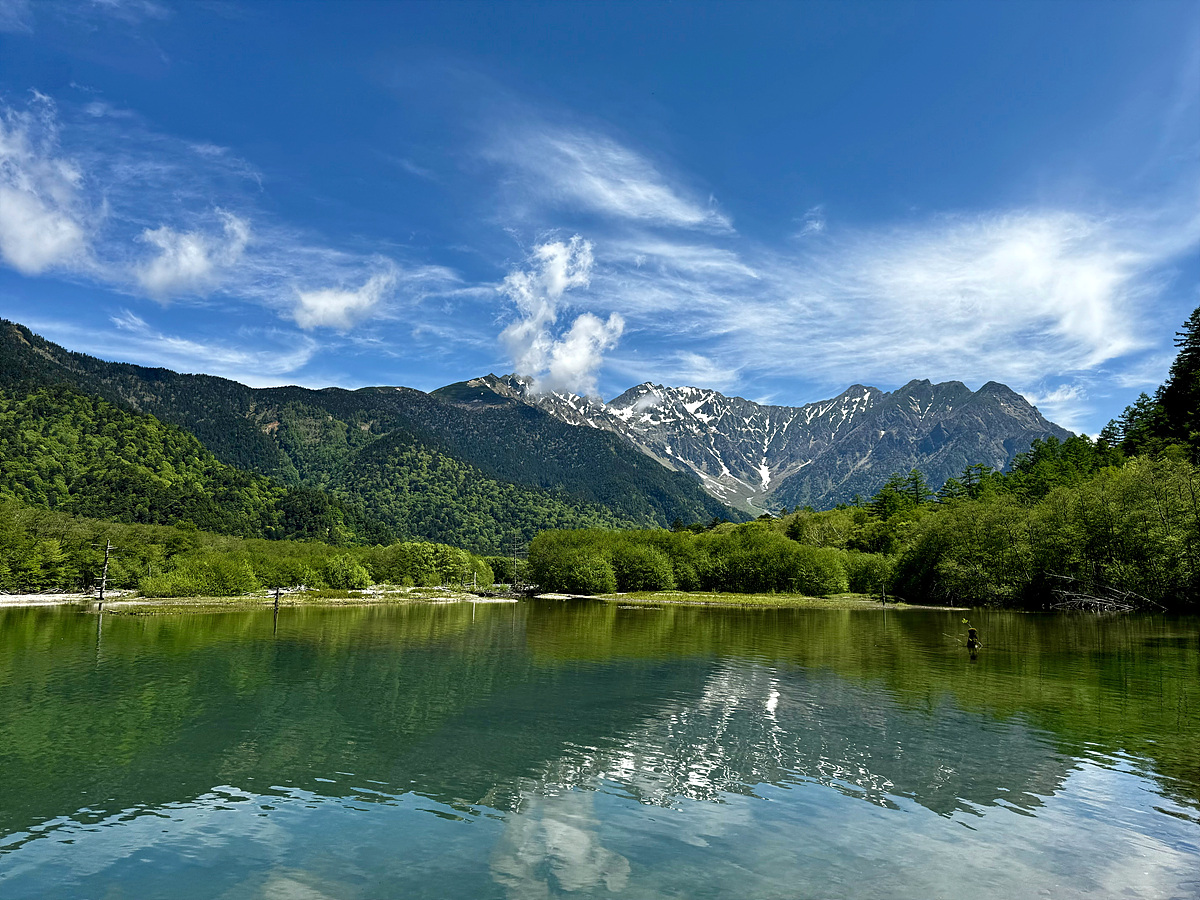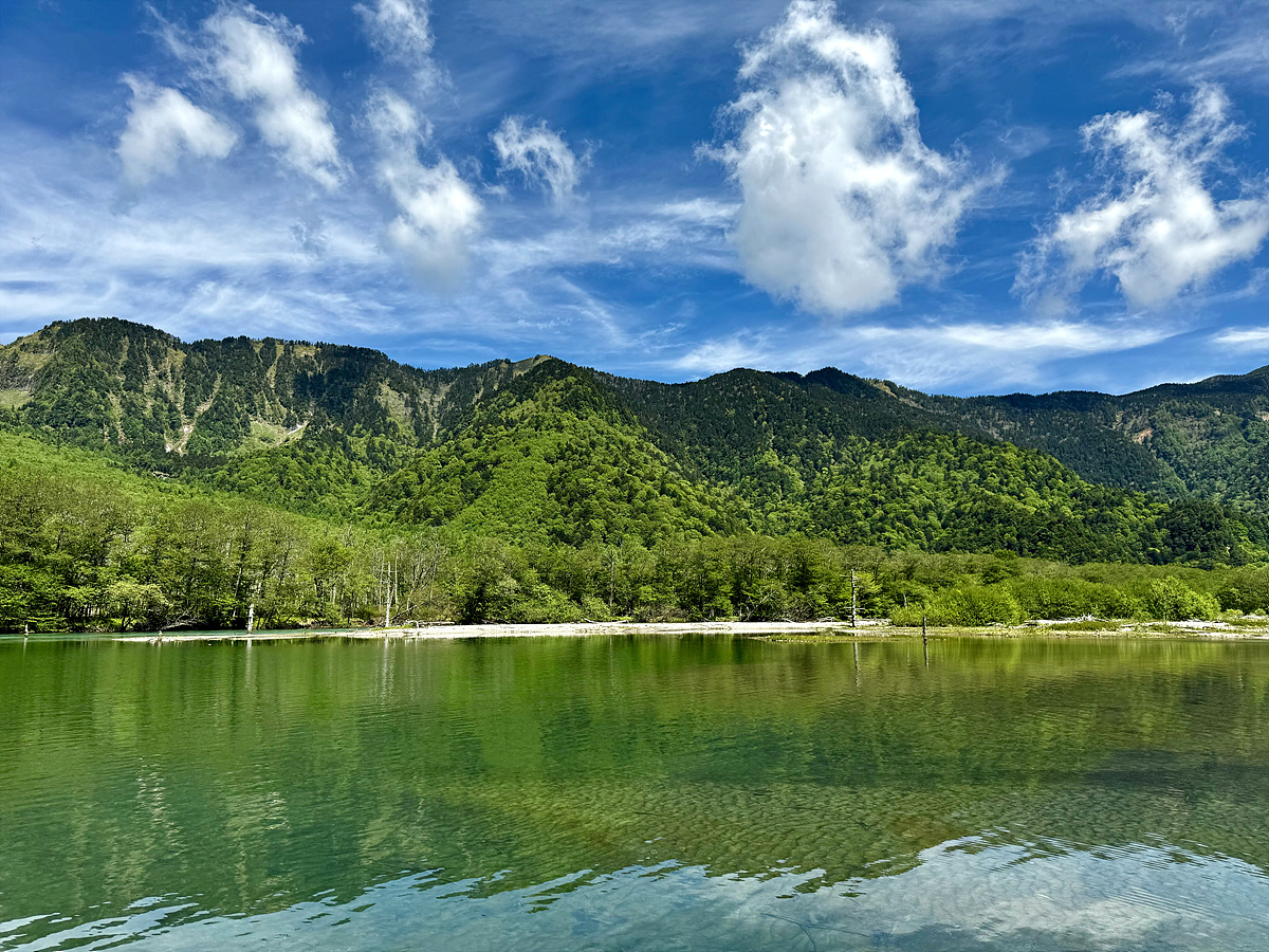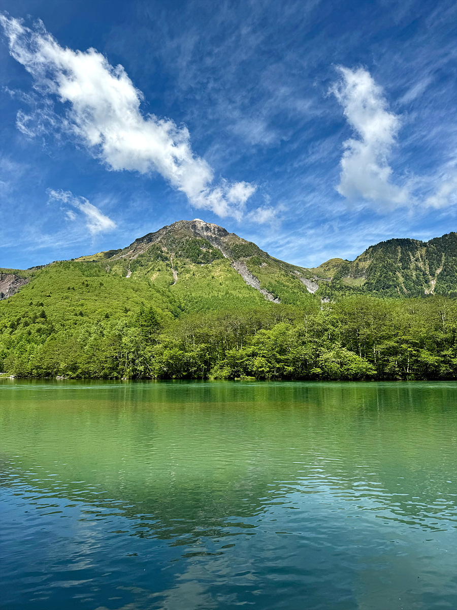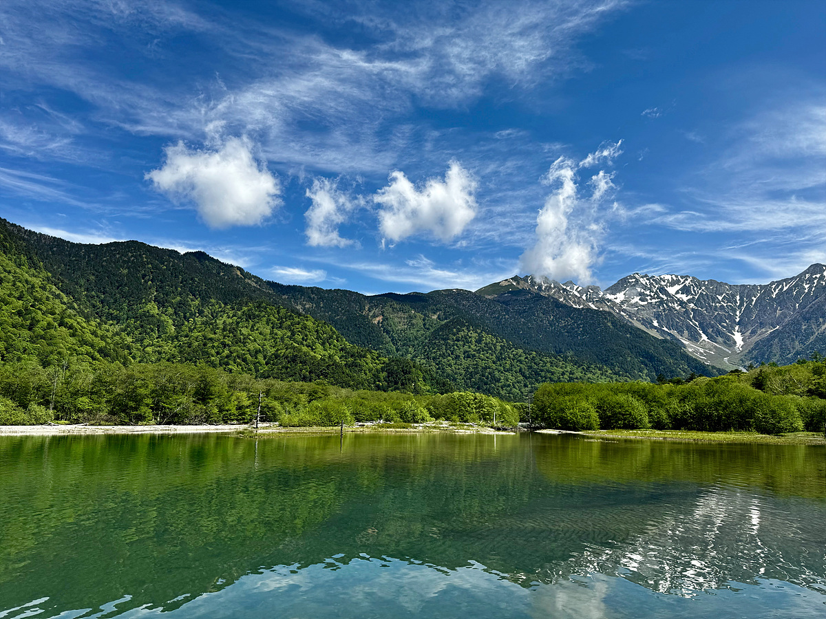 산봉우리에 남은 잔설과 봄의 신록.. 맑디 맑은 호수까지..