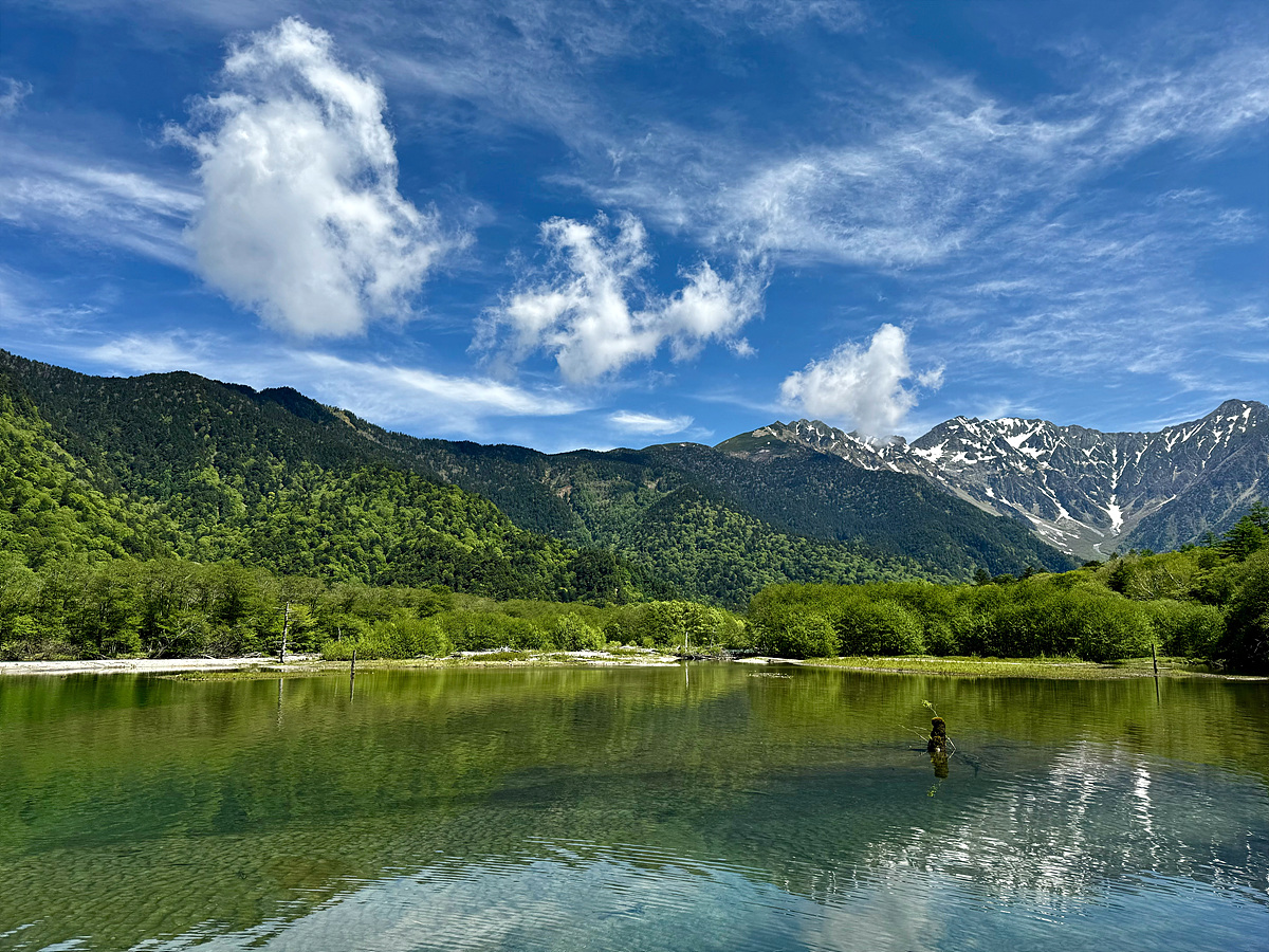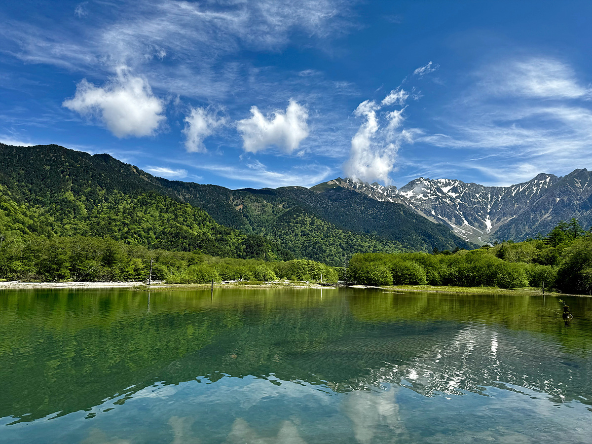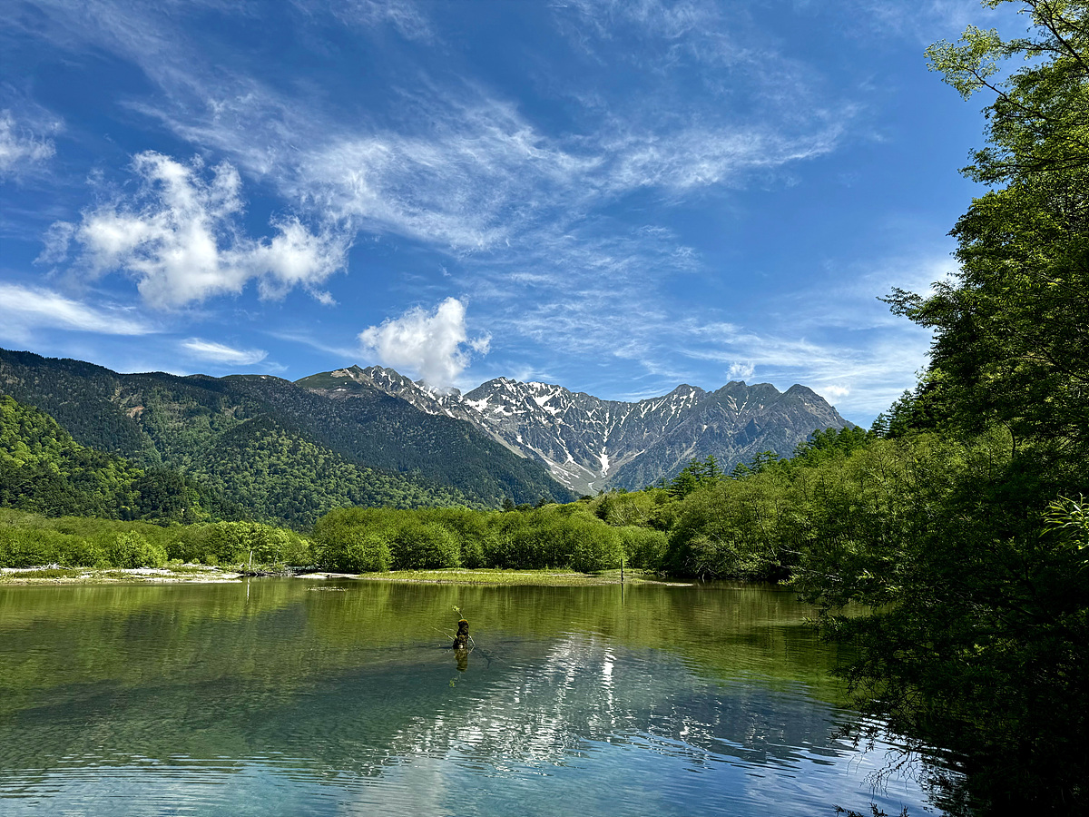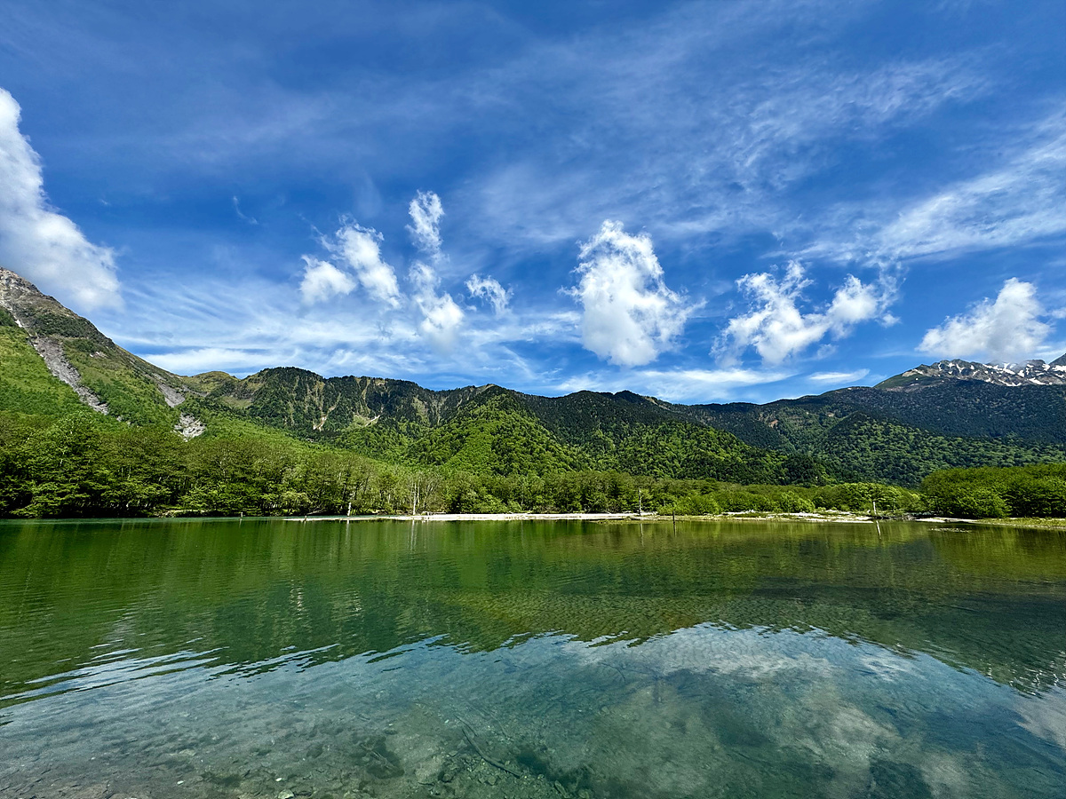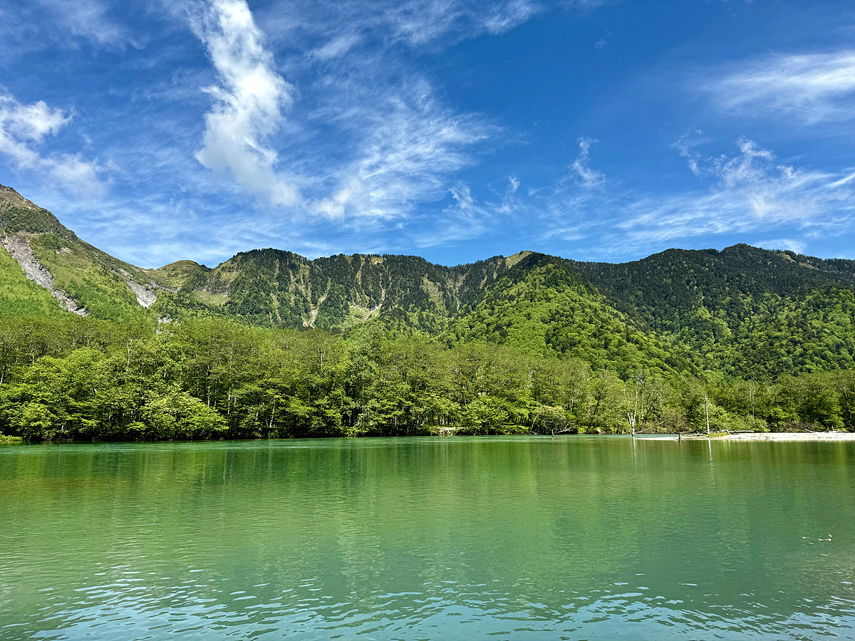 산봉우리에 남은 잔설과 봄의 신록.. 맑디 맑은 호수까지..