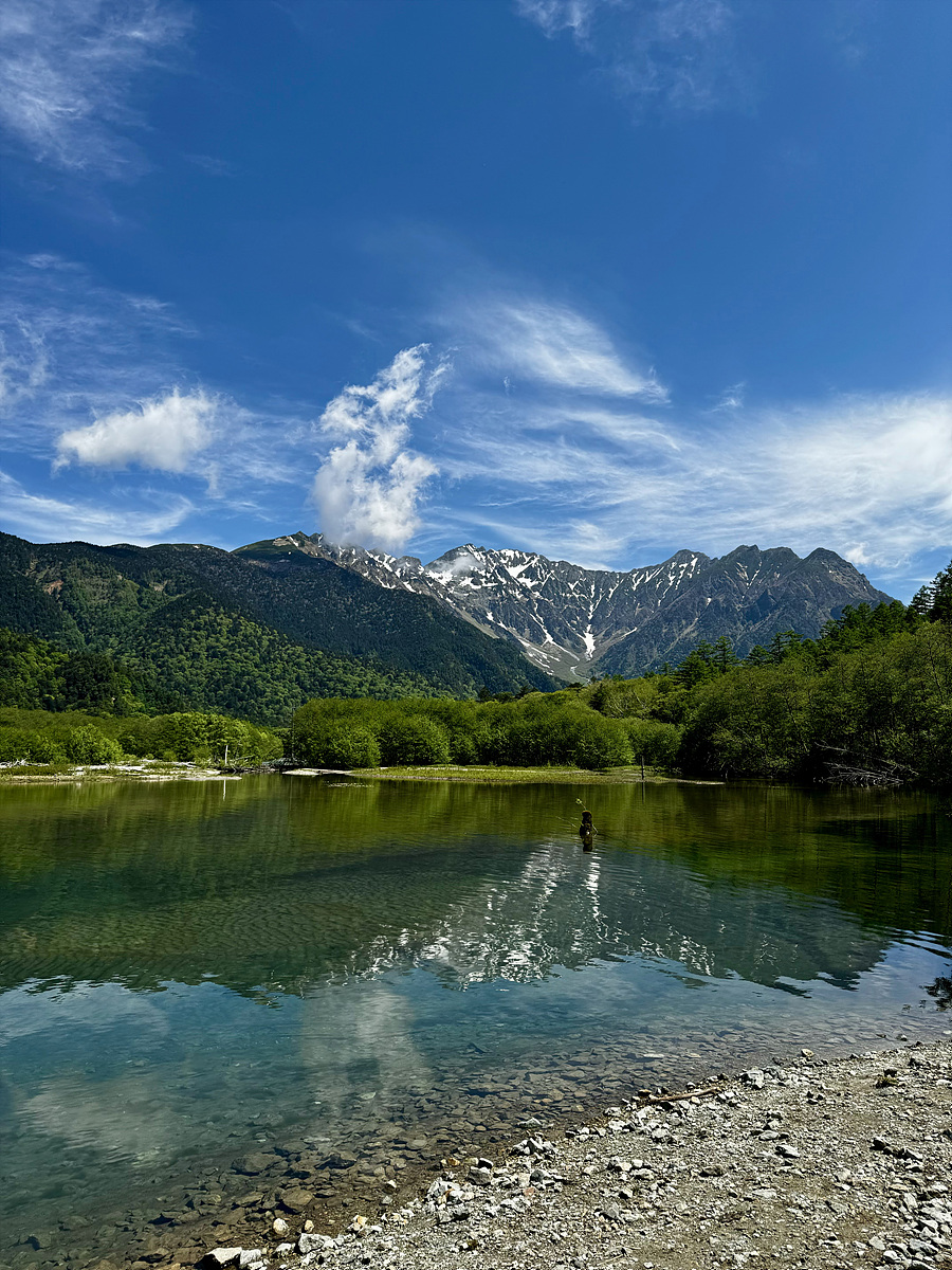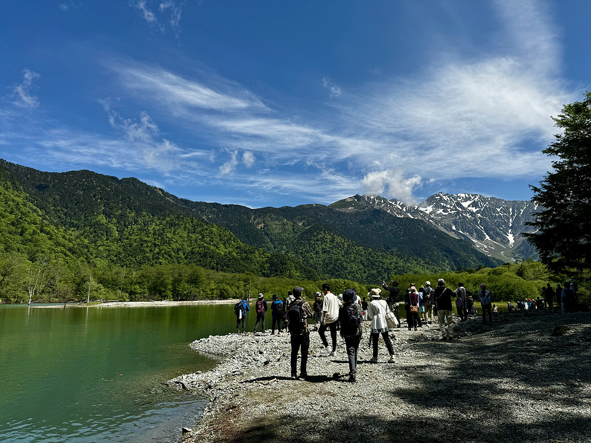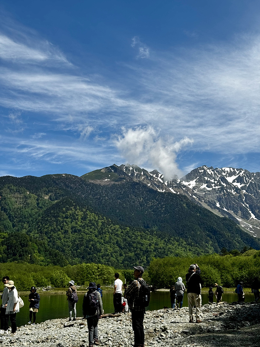 가미코치 첫번째 정류장인 다이쇼 이케에서 내려서 하이킹을 시작한다..