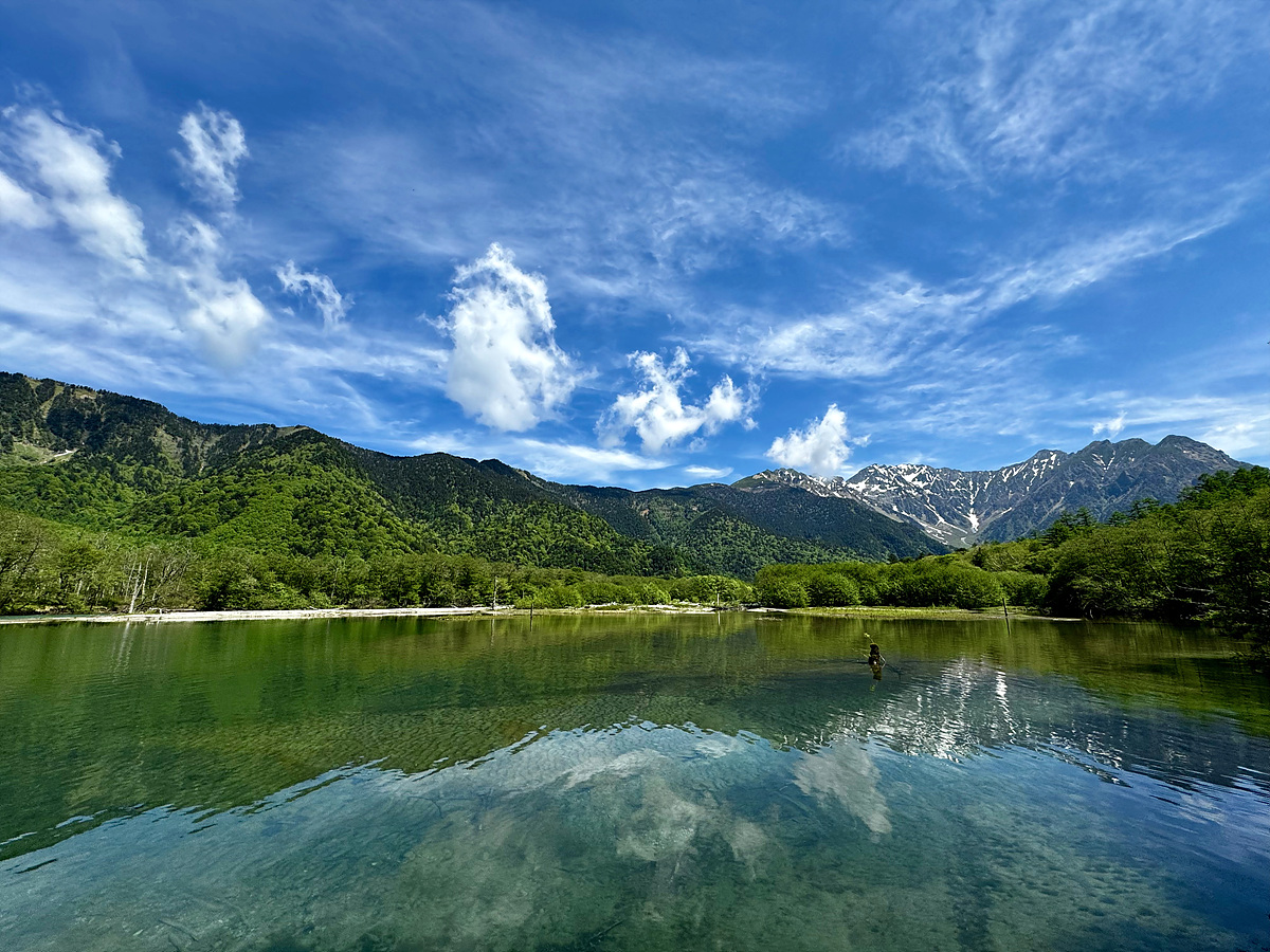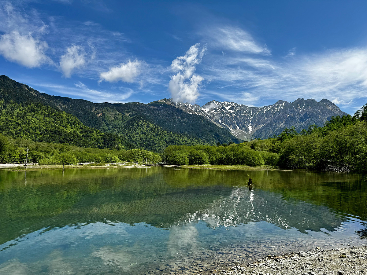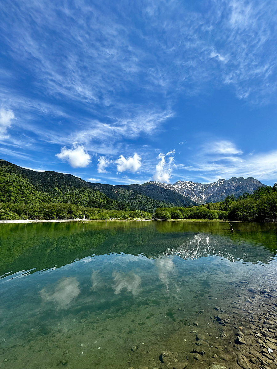 가미코치 첫번째 정류장인 다이쇼 이케에서 내려서 하이킹을 시작한다..