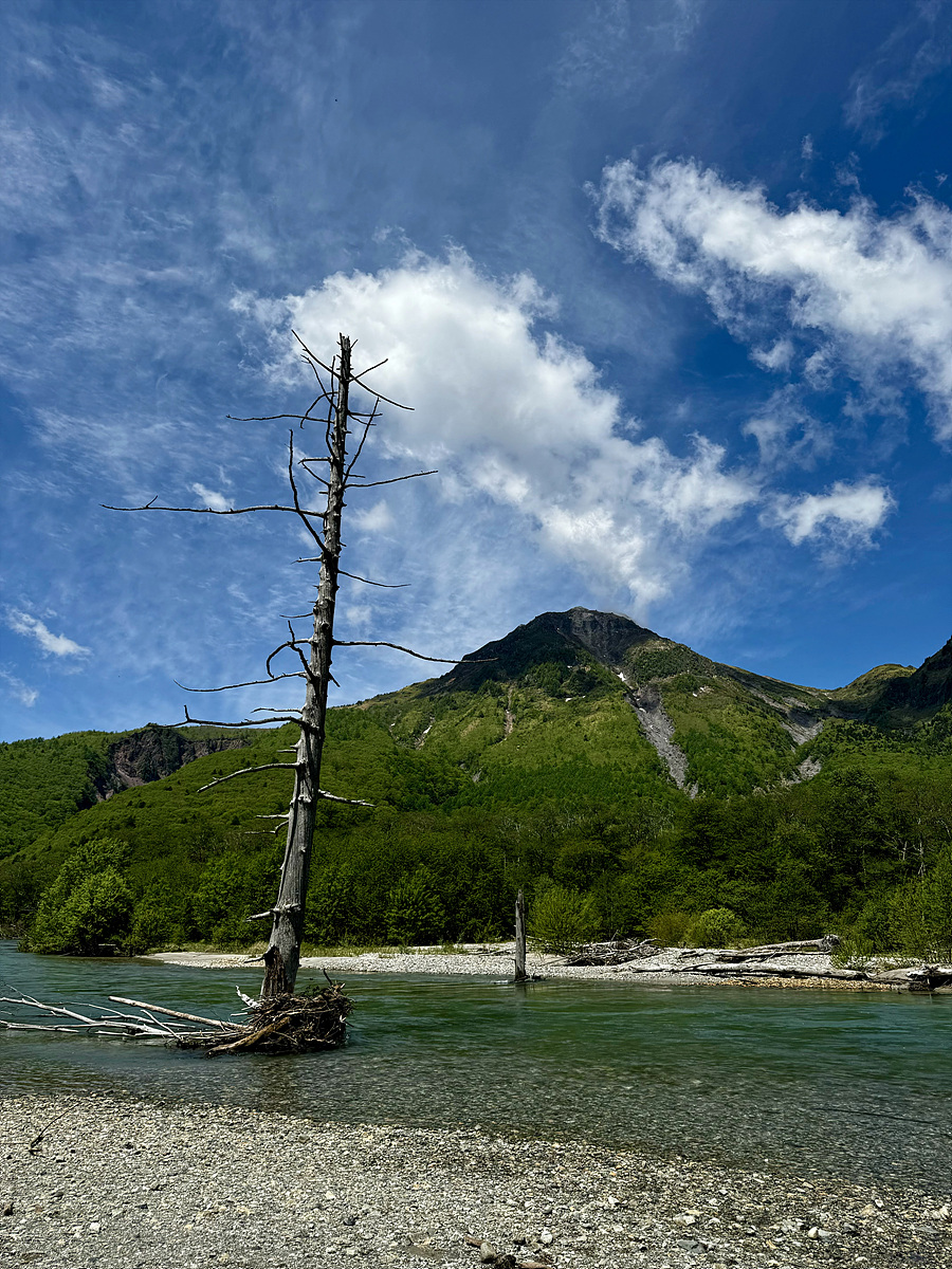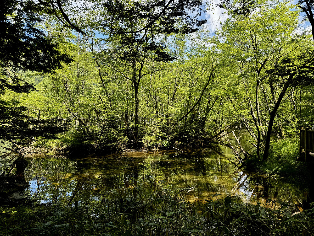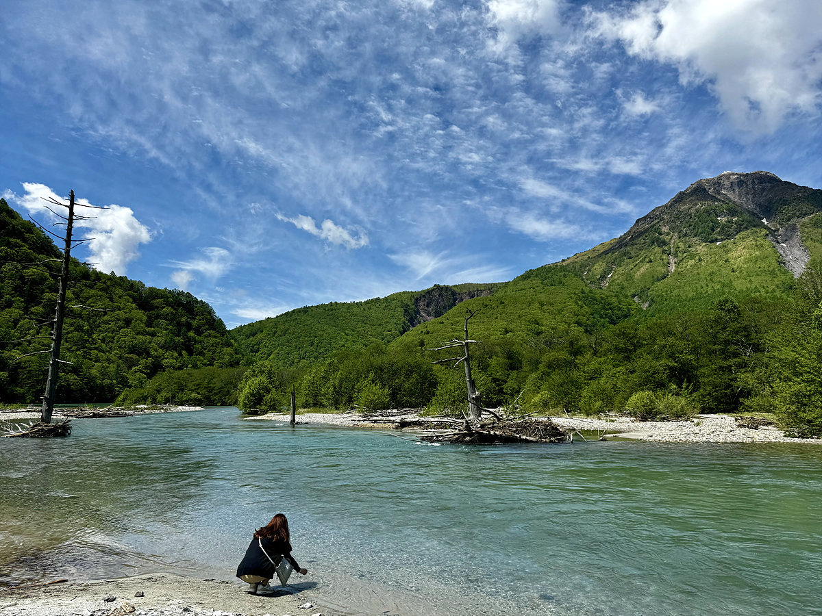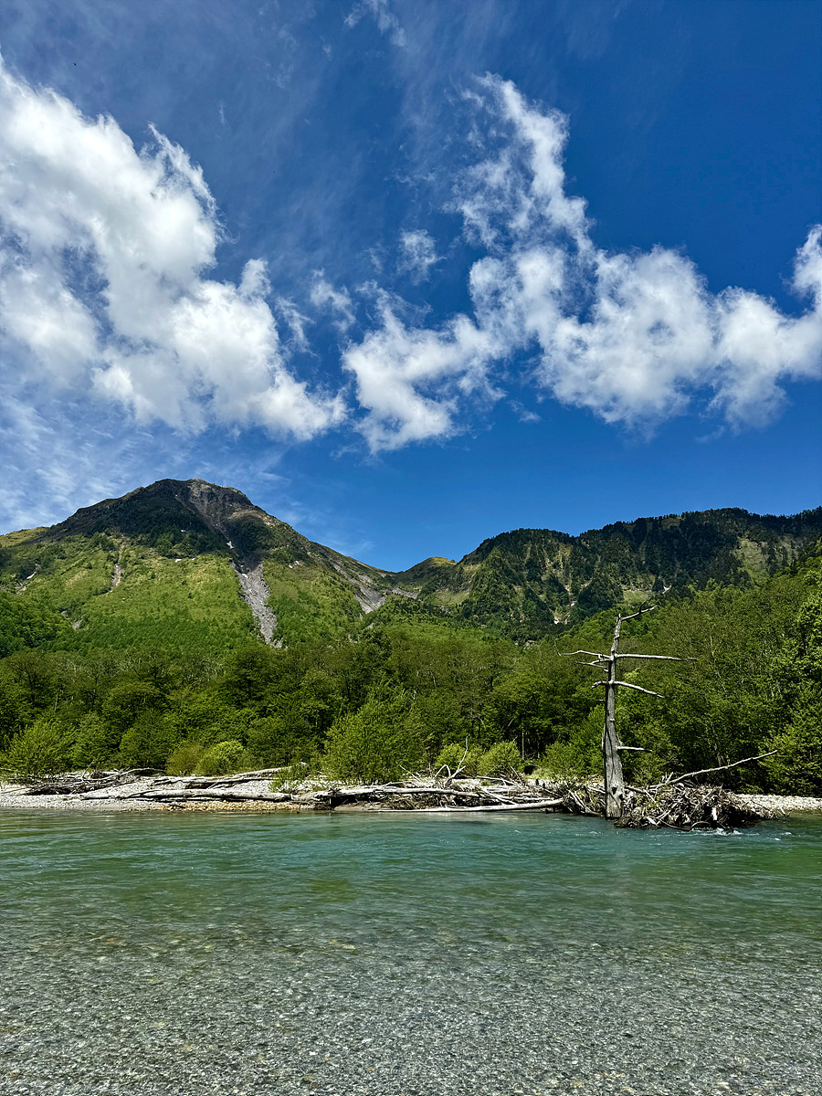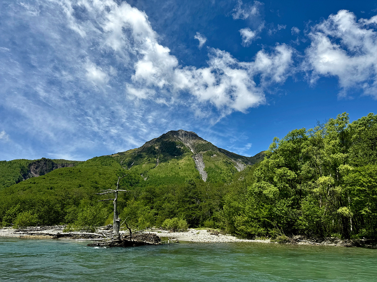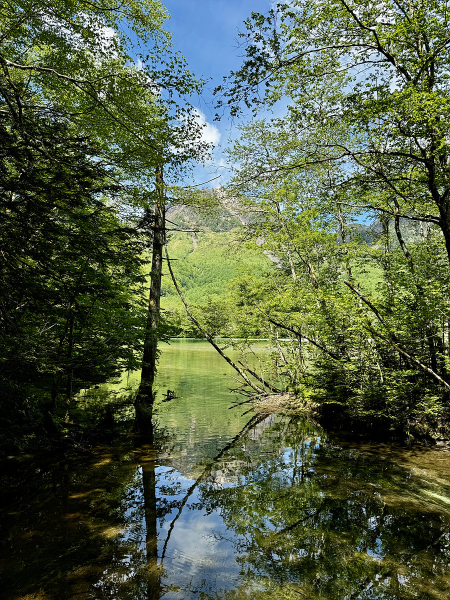 트레일은 왼쪽에 아즈사 강을 두고 숲속으로 이어진다..
