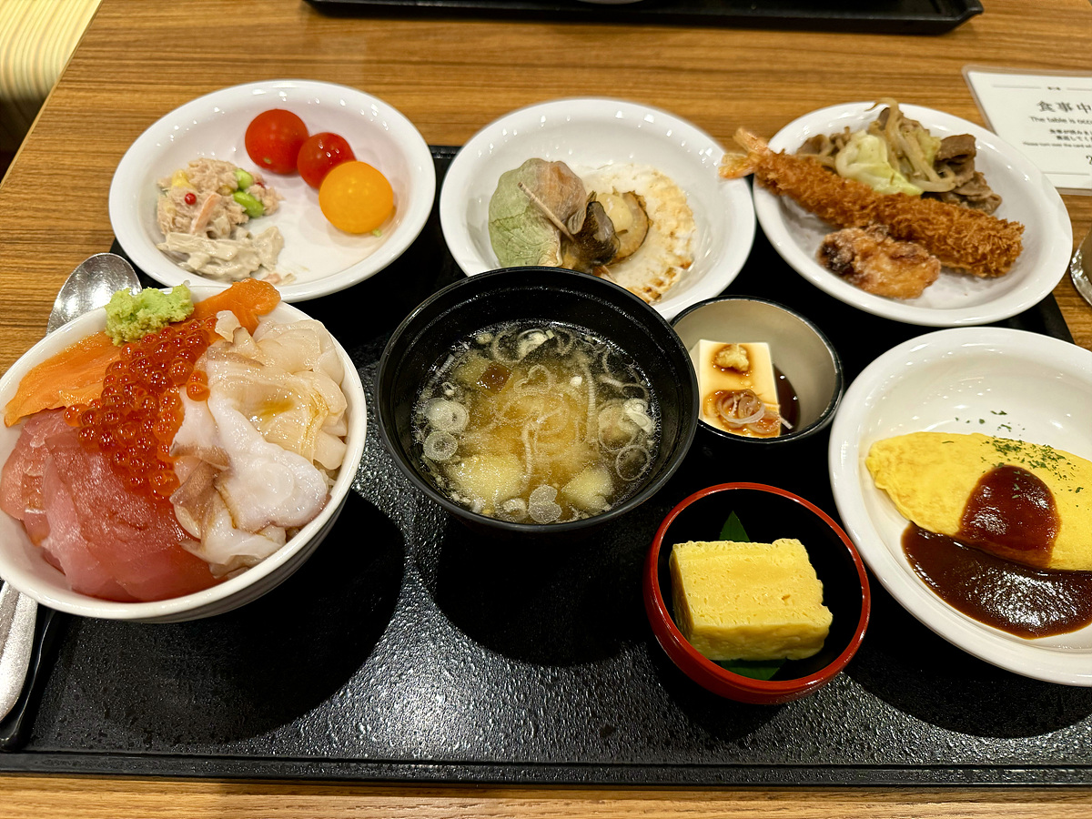 조식에 카이센동, 가리비, 징기스칸, 스프카레 등이 다 준비되어 있다..