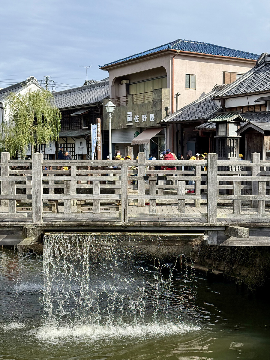 정기적으로 물이 쏟아지는 토요하시 다리..