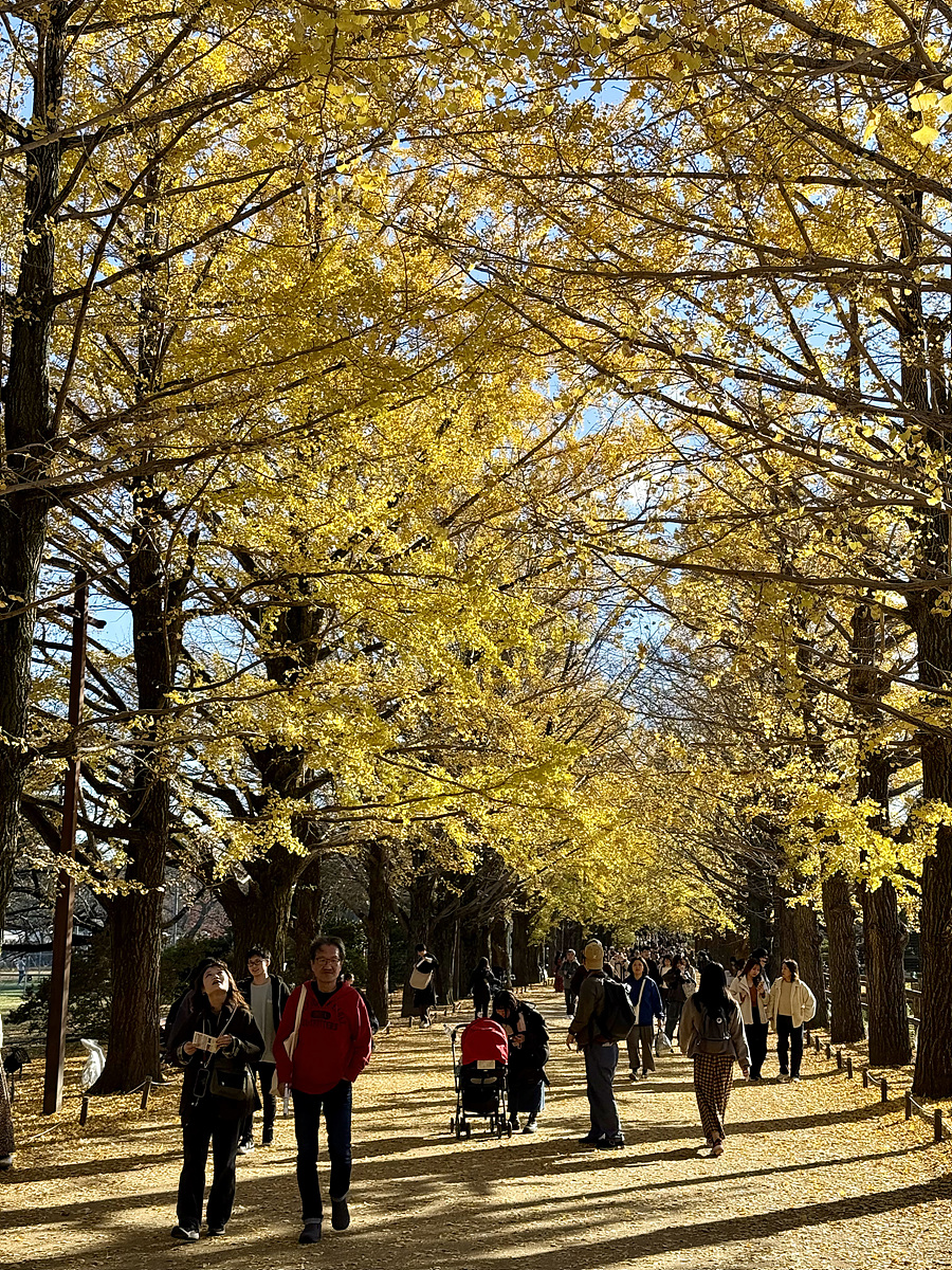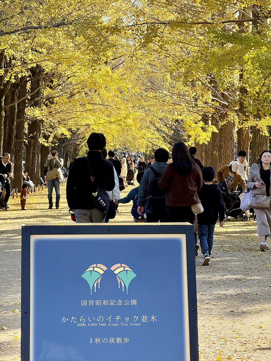 오늘 일정은 쇼와기념공원의 은행나무길과 공원 내 일본정원의 야간개장을 보고 오는 것..