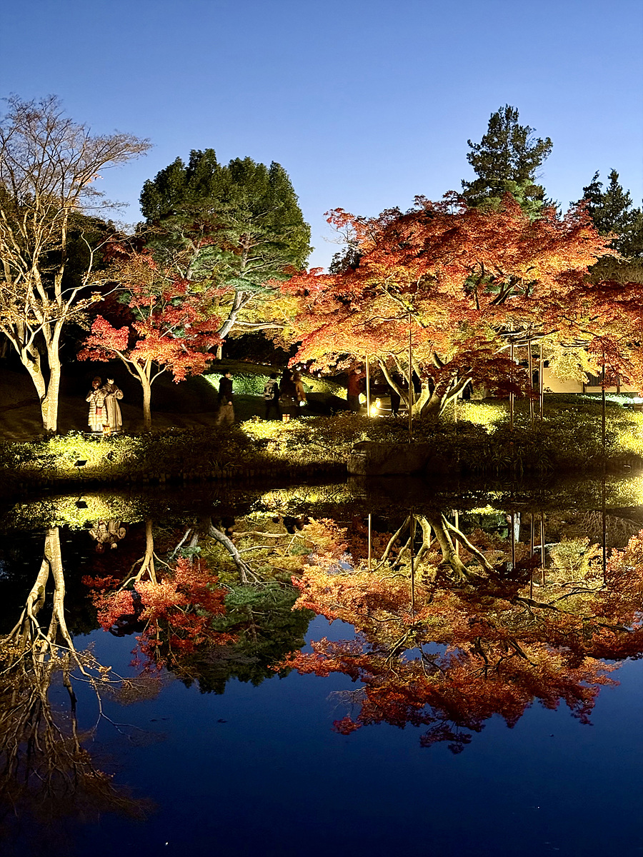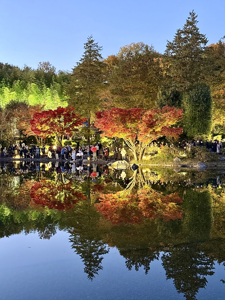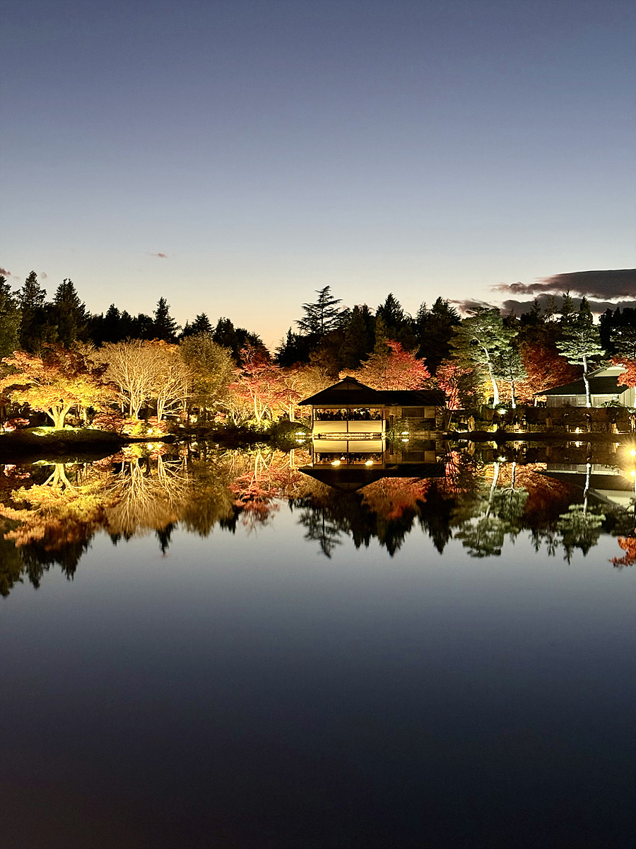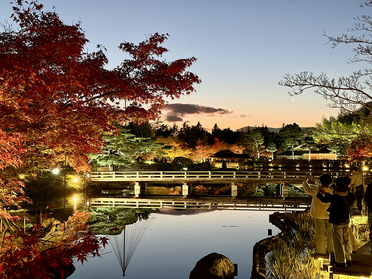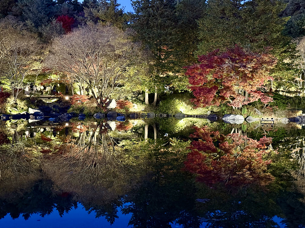 어스름 어둠이 내려오고 조명이 켜진 일본정원은 사뭇 다른 분위기다..
