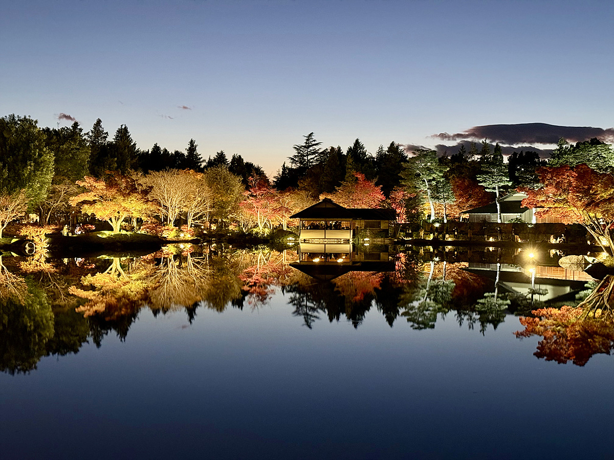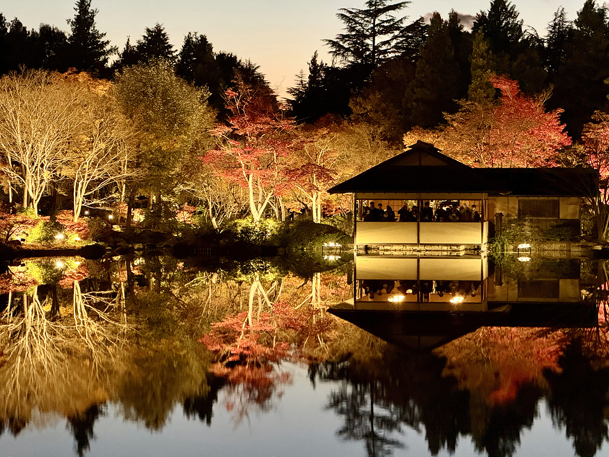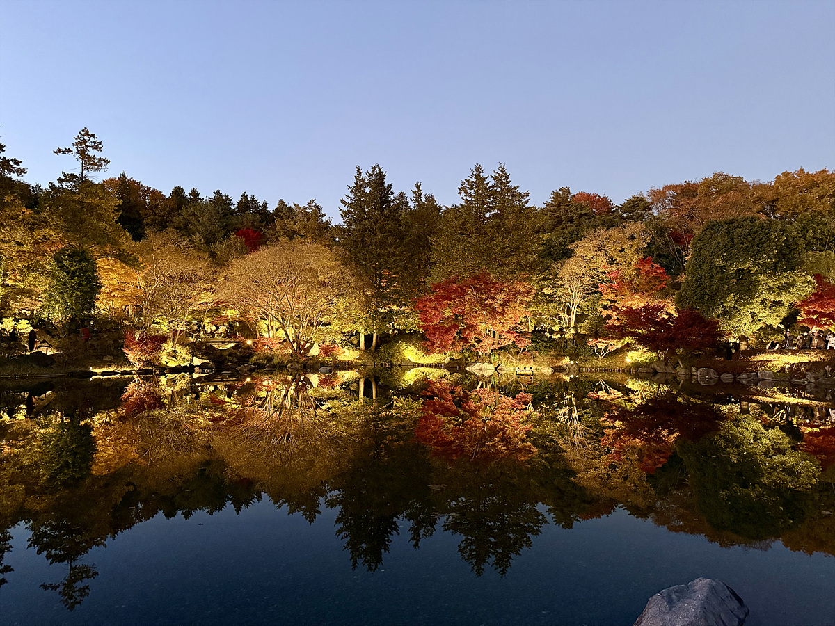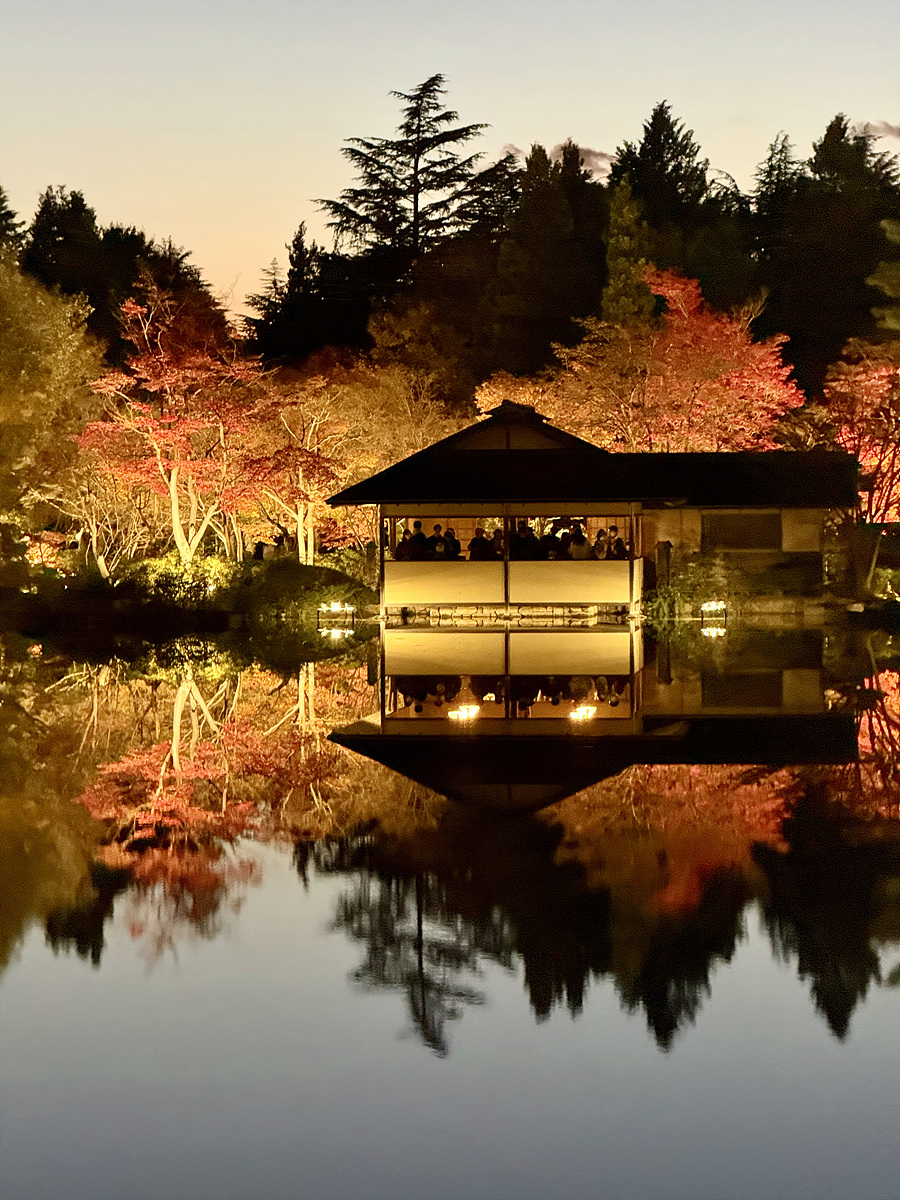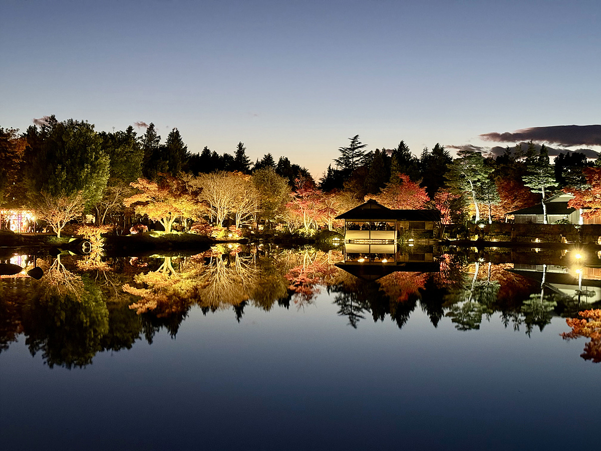 어스름 어둠이 내려오고 조명이 켜진 일본정원은 사뭇 다른 분위기다..
