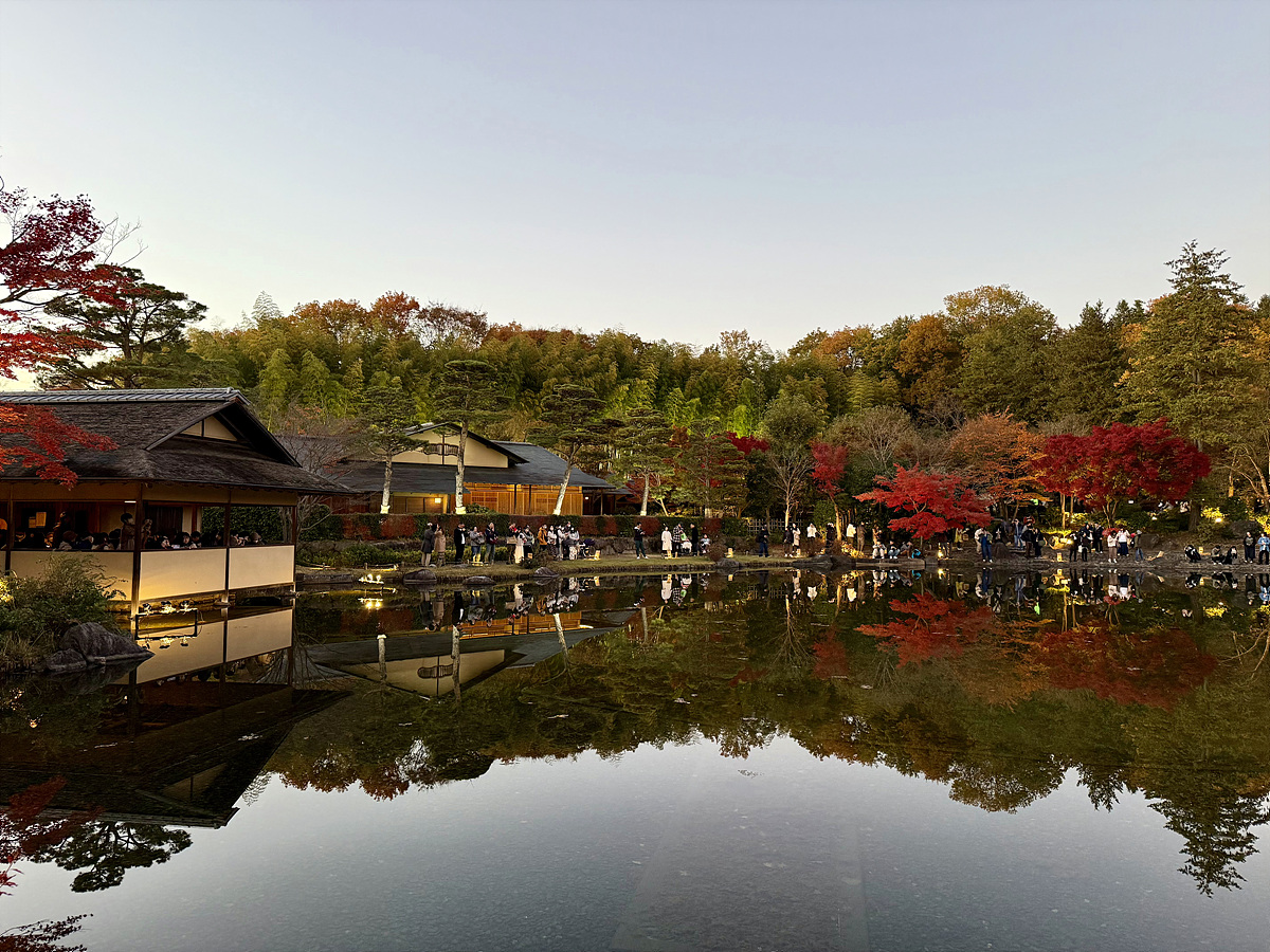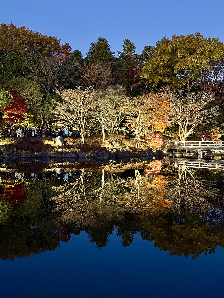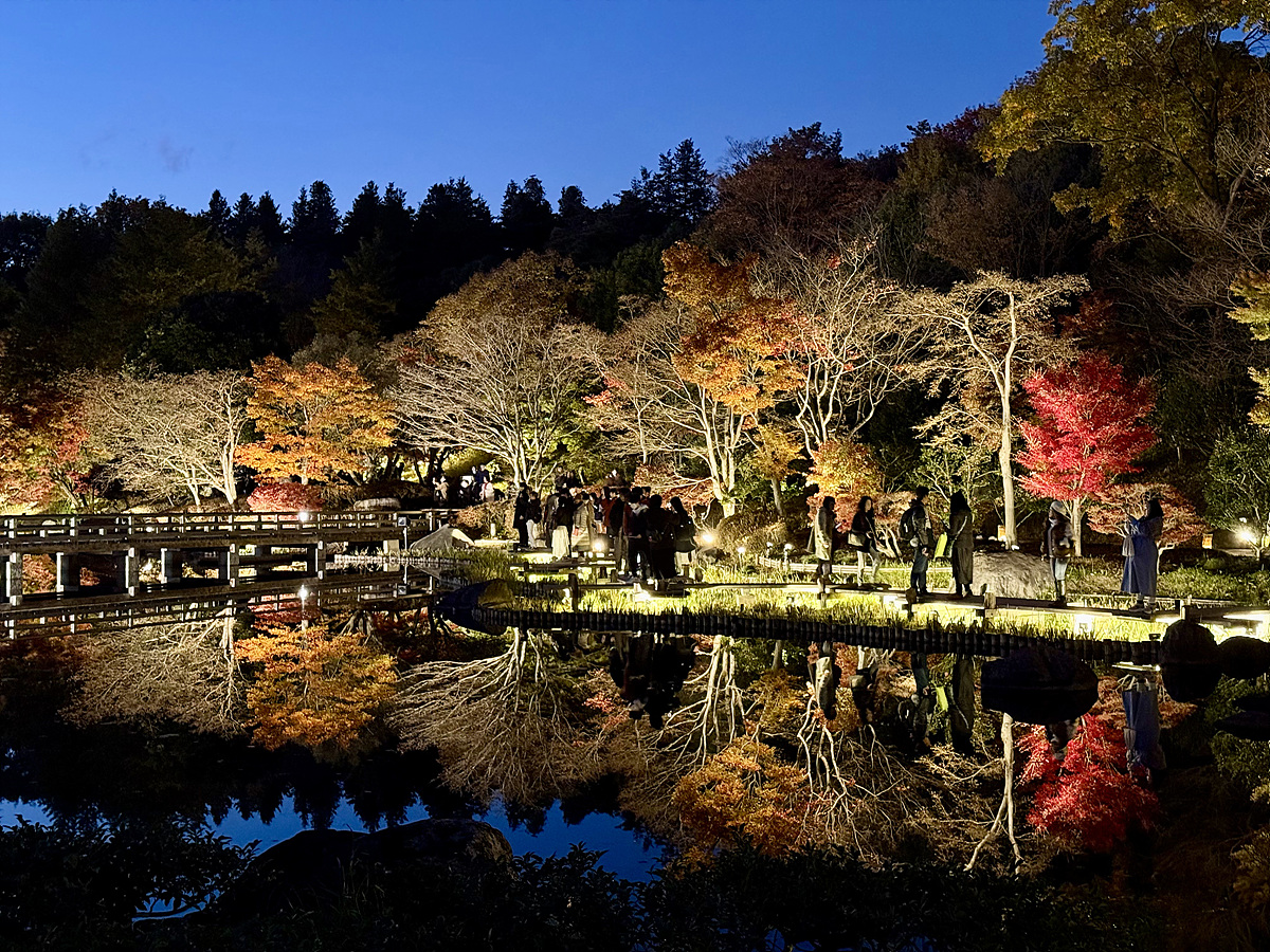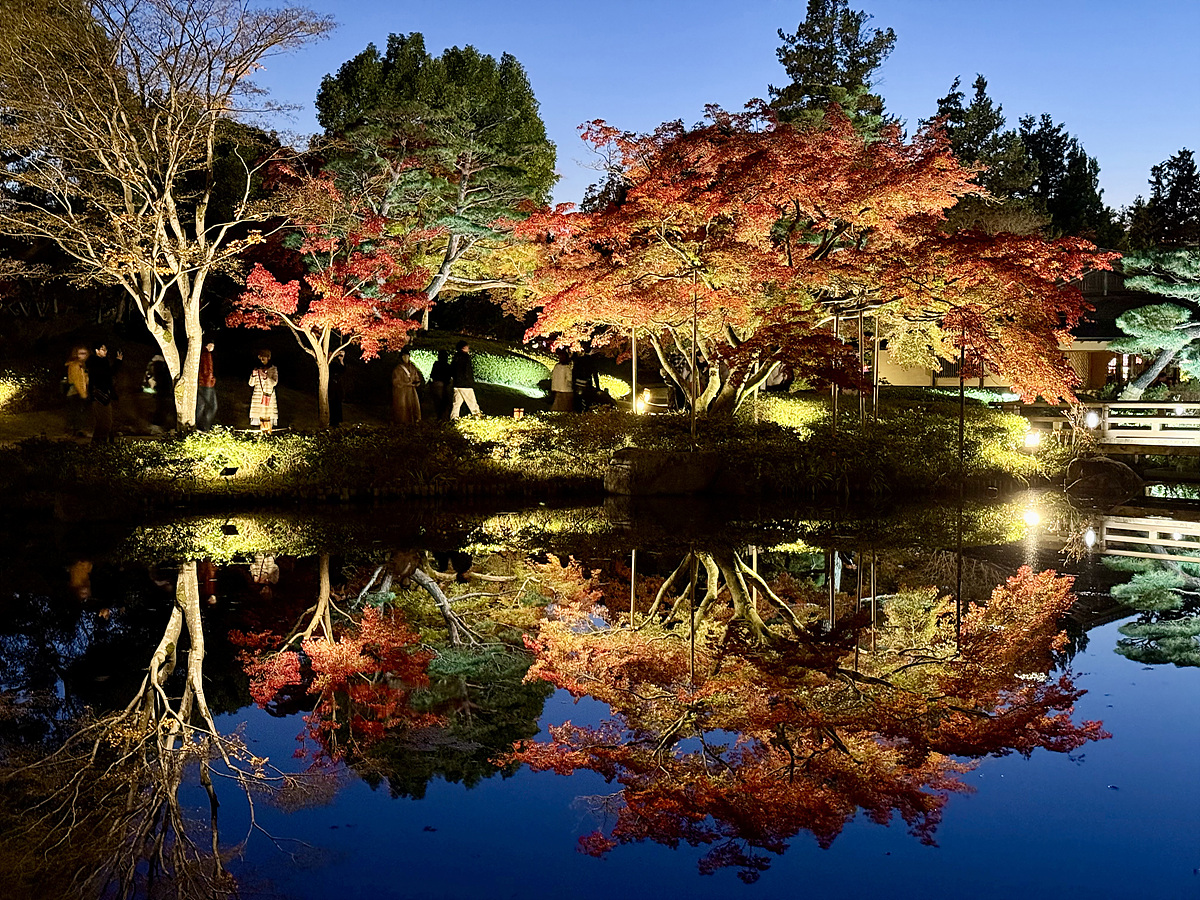 어스름 어둠이 내려오고 조명이 켜진 일본정원은 사뭇 다른 분위기다..