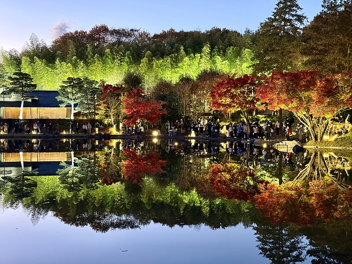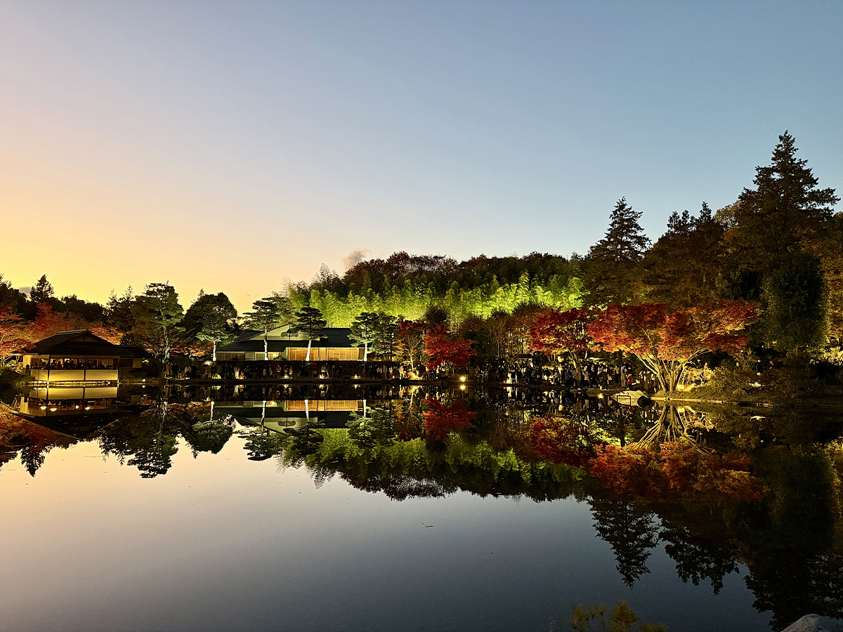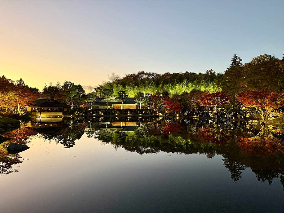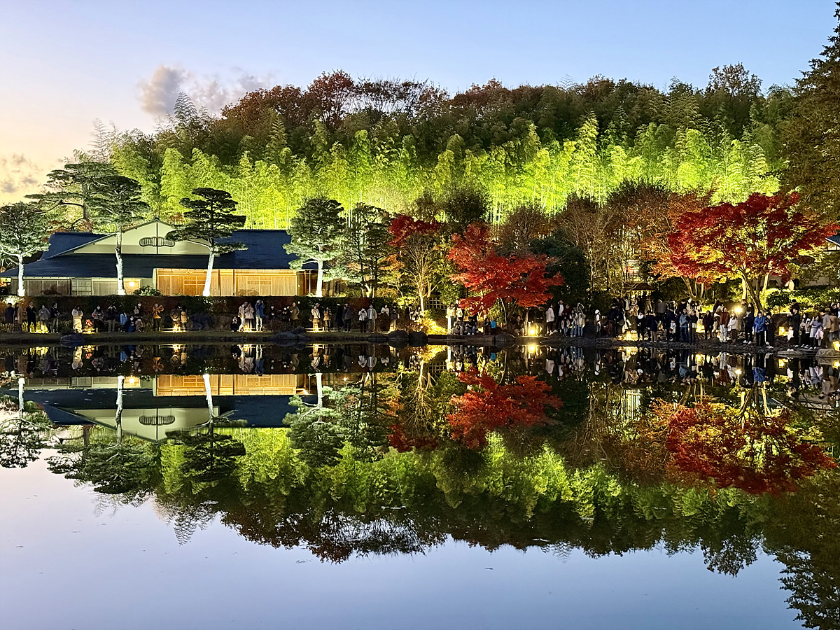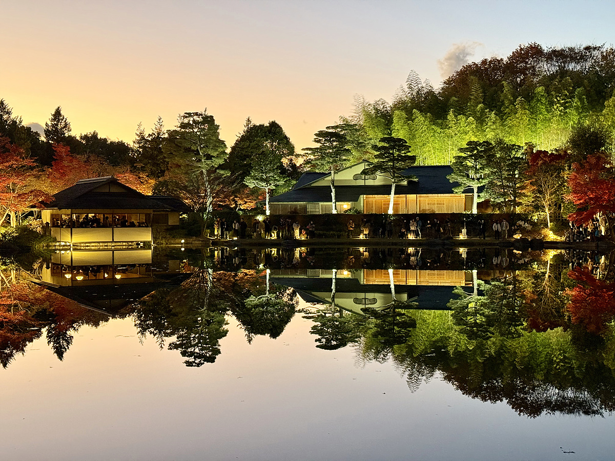 어스름 어둠이 내려오고 조명이 켜진 일본정원은 사뭇 다른 분위기다..