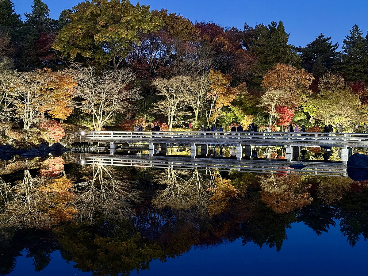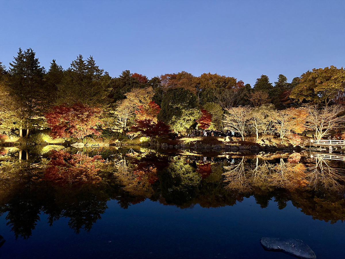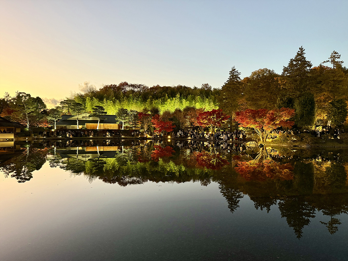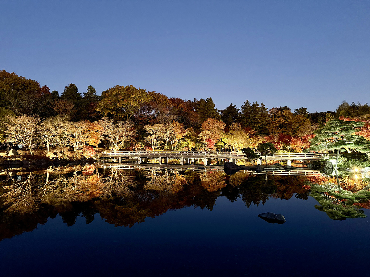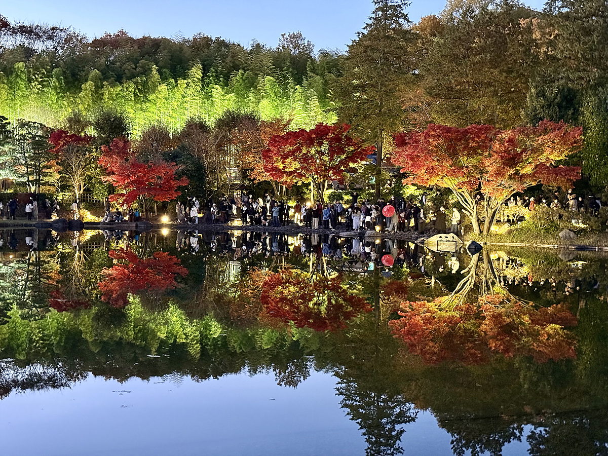 어스름 어둠이 내려오고 조명이 켜진 일본정원은 사뭇 다른 분위기다..