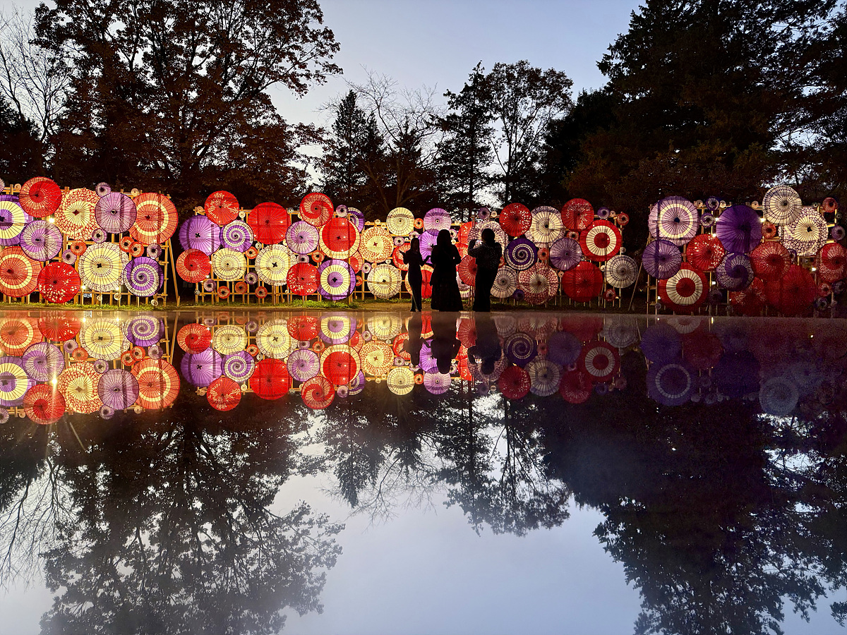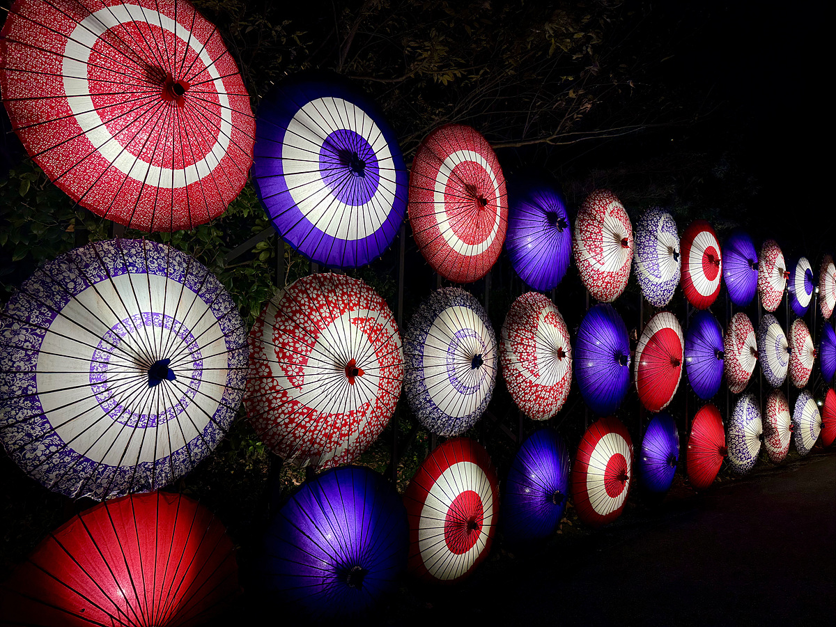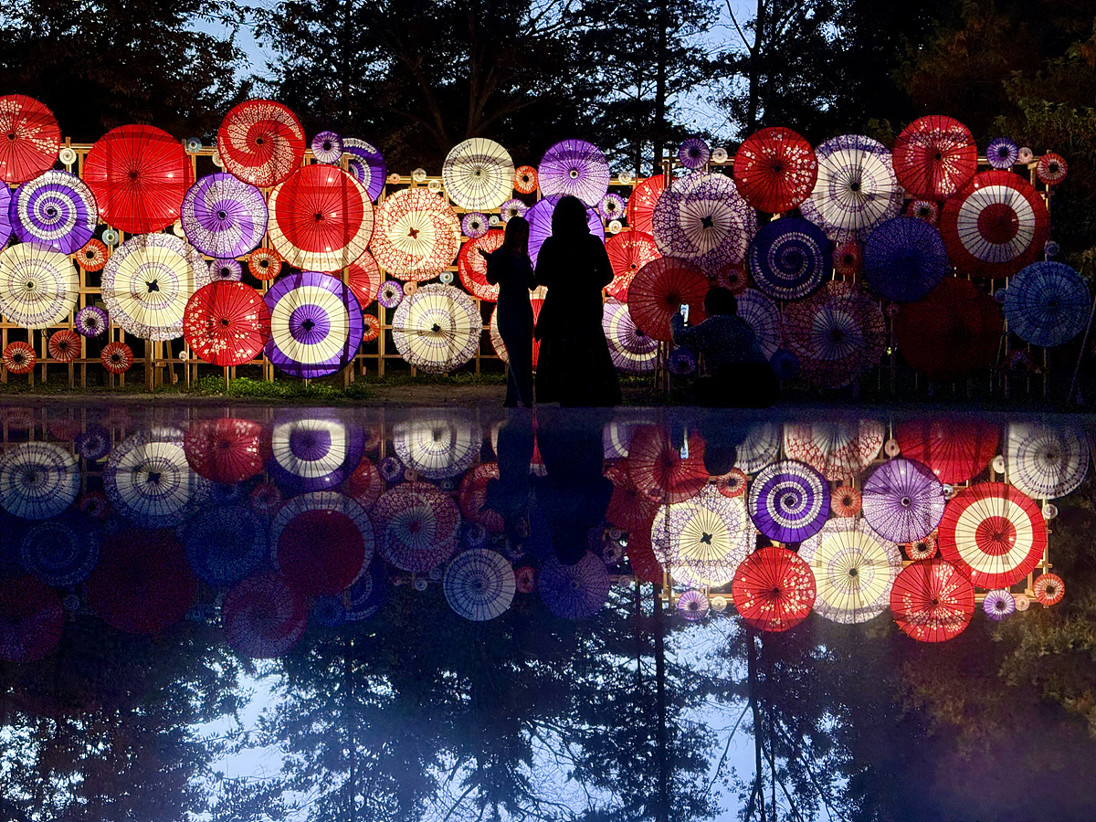일본 전통 우산에 조명을 더해 멋지게 연출..