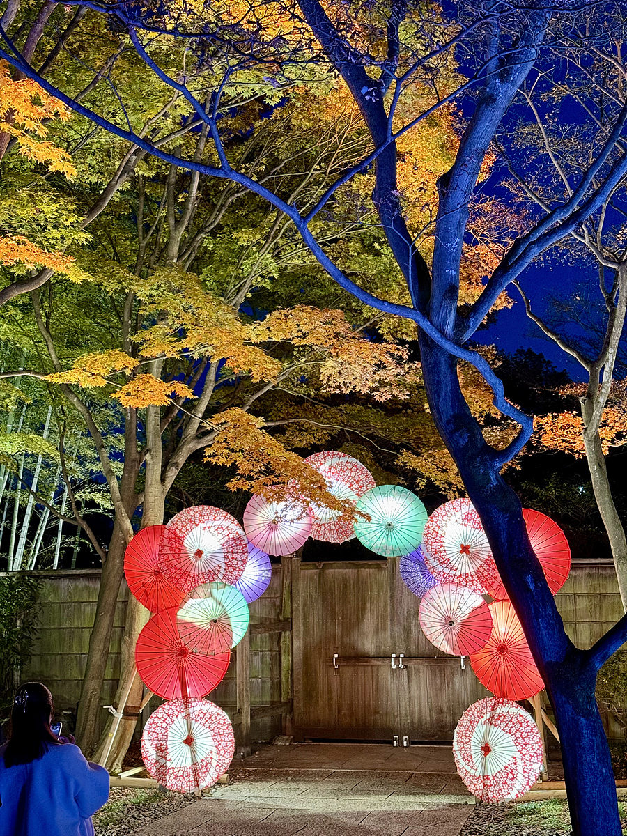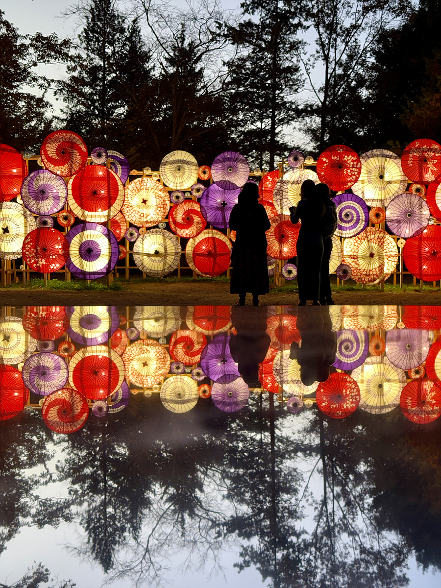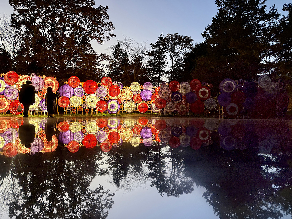 일본 전통 우산에 조명을 더해 멋지게 연출..