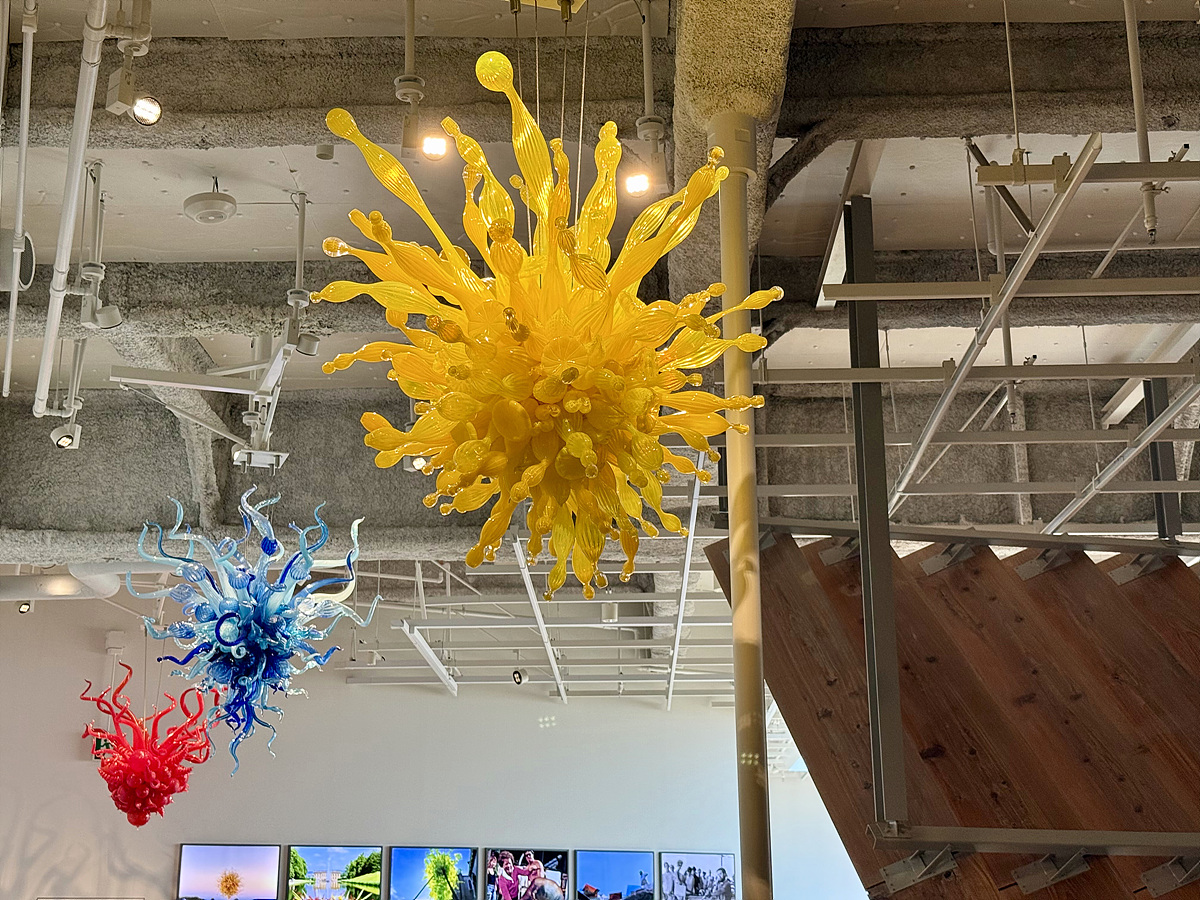 유리 미술관은 공립 도서관과 함께 있다..