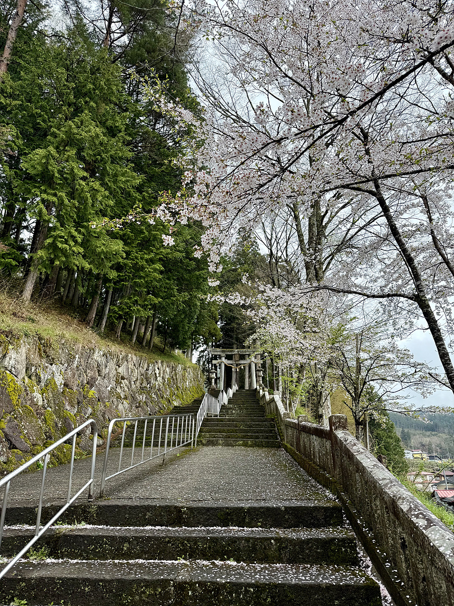 신사 입구에 벚꽃이 꽤 남아 있다..
