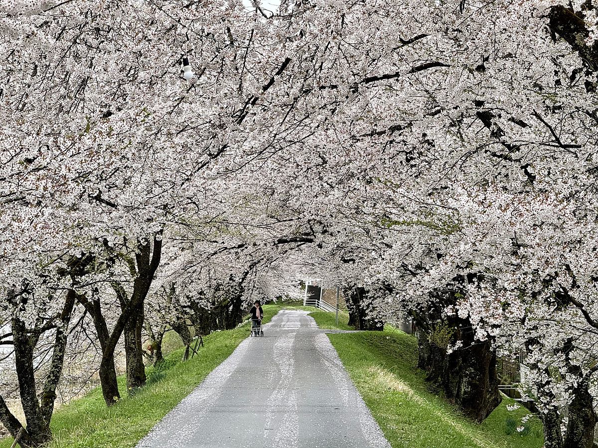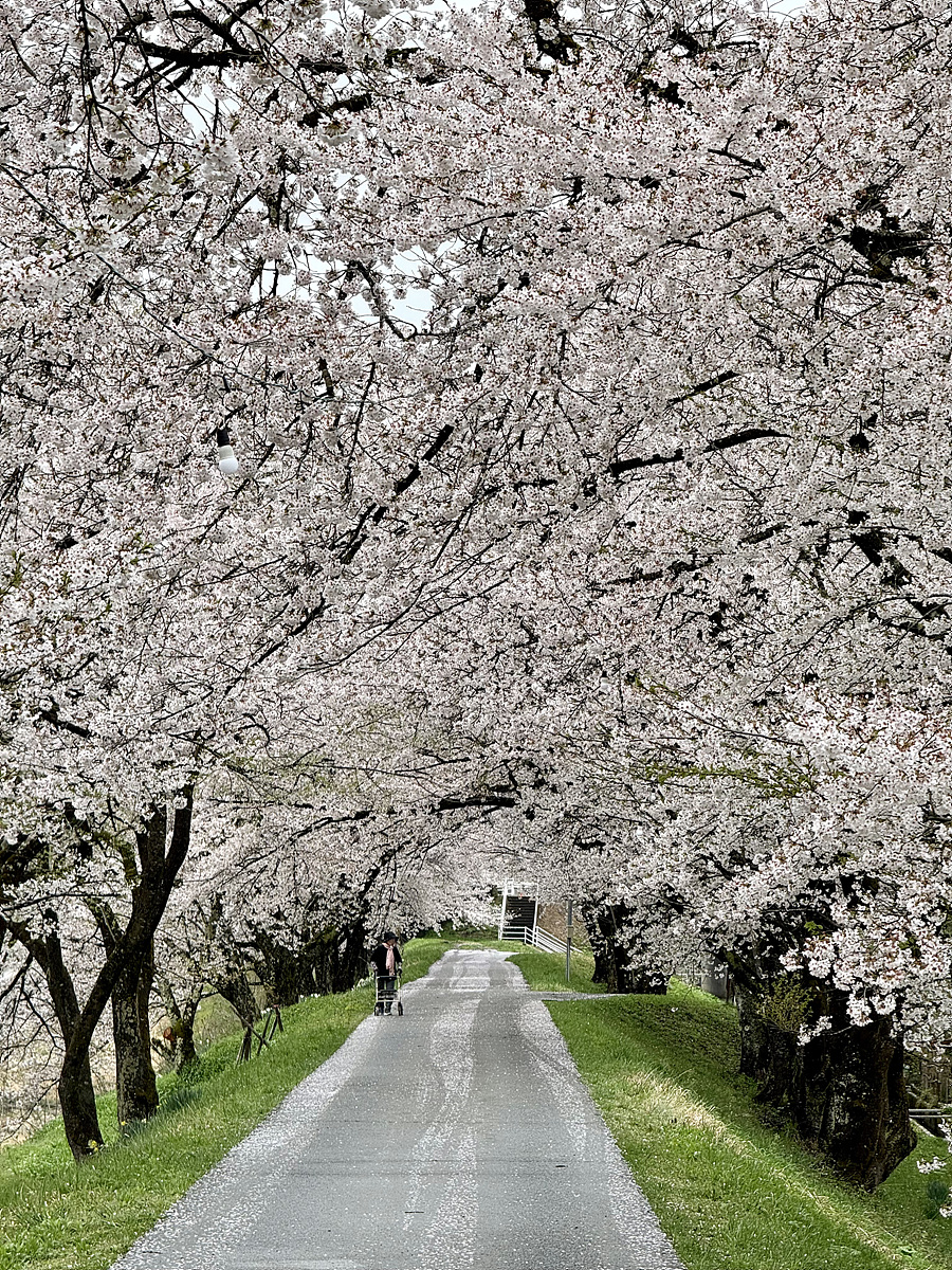 차에서 내려 강을 따라 늘어선 벚꽃나무 아래로 걸어가 본다..