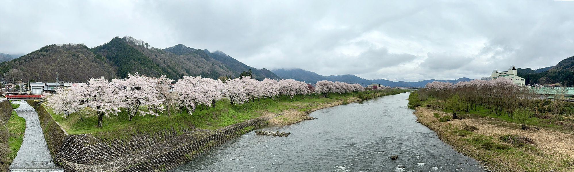 케타와카미야 신사로 가는 길에 오른쪽 강가에 벚꽃이 아직 흐드러지게 피어있는 모습이 살짝 보였다..