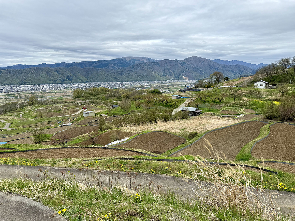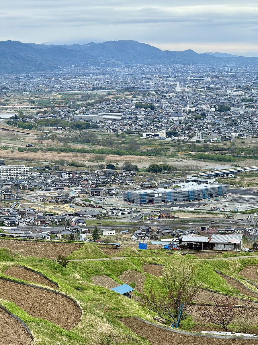 계단식 논과 저 멀리 평야가 내려다 보이는 곳..