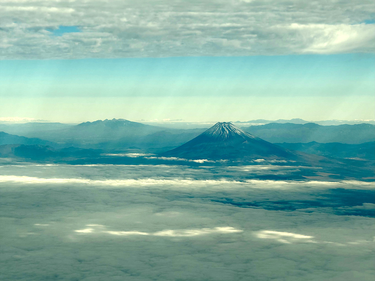 하네다 공항으로 착륙하는데 왼쪽으로 후지산이 보인다..