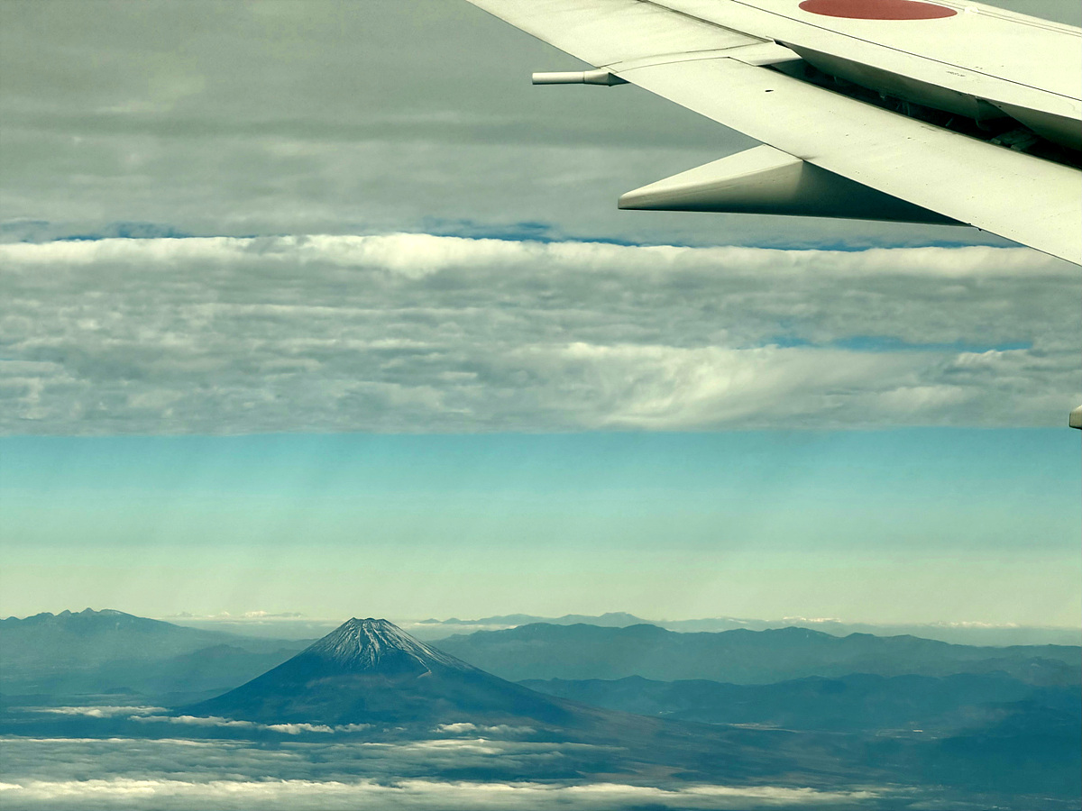 하네다 공항으로 착륙하는데 왼쪽으로 후지산이 보인다..