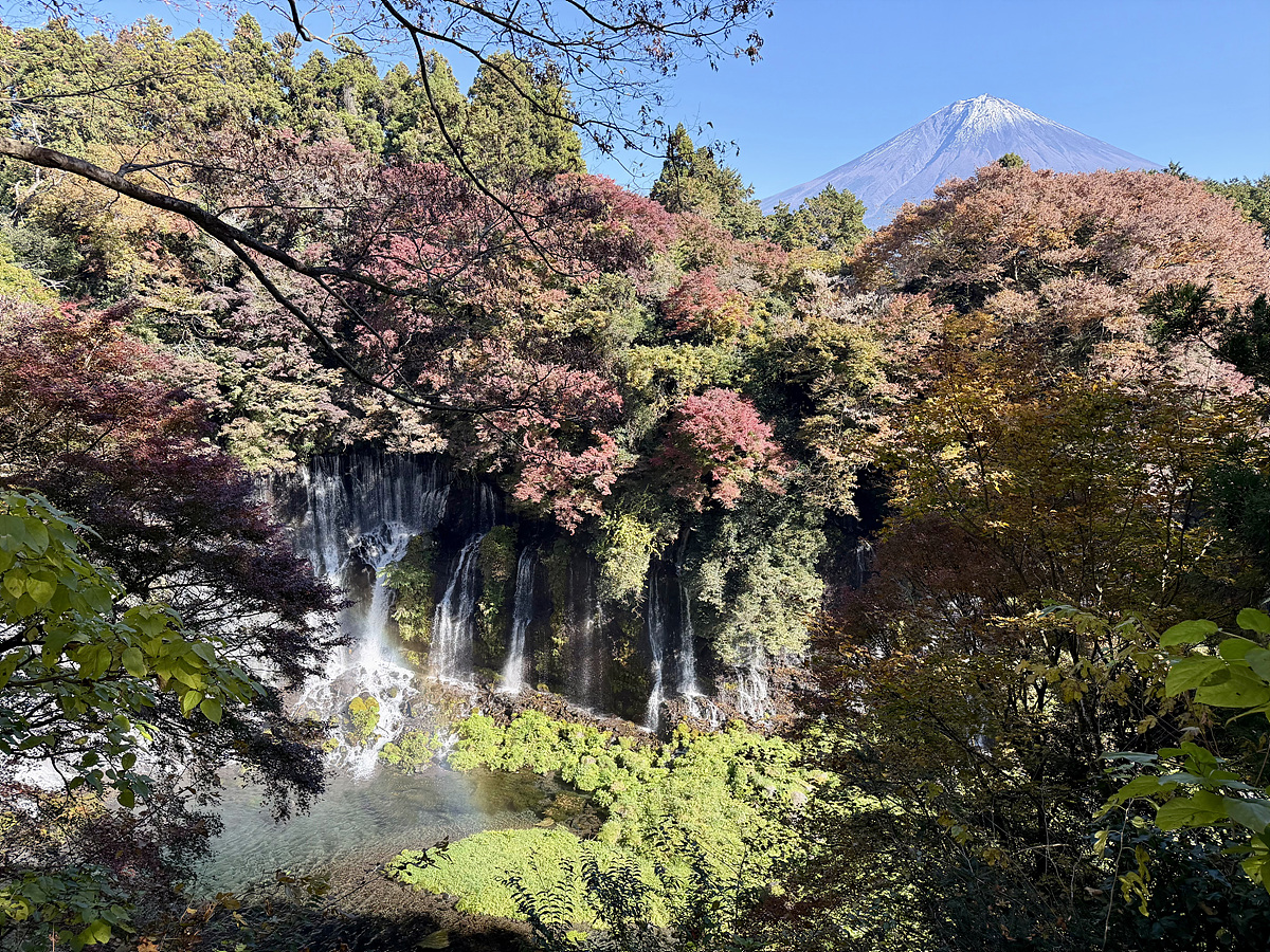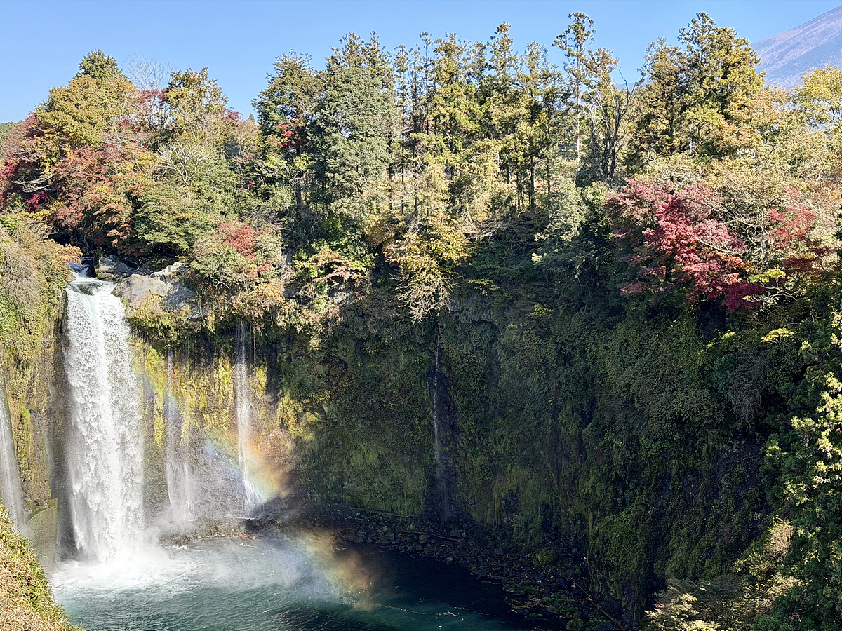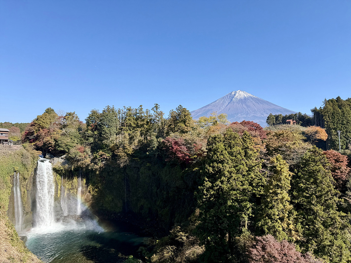 후지산과 폭포를 함께 볼 수 있는 전망 포인트..