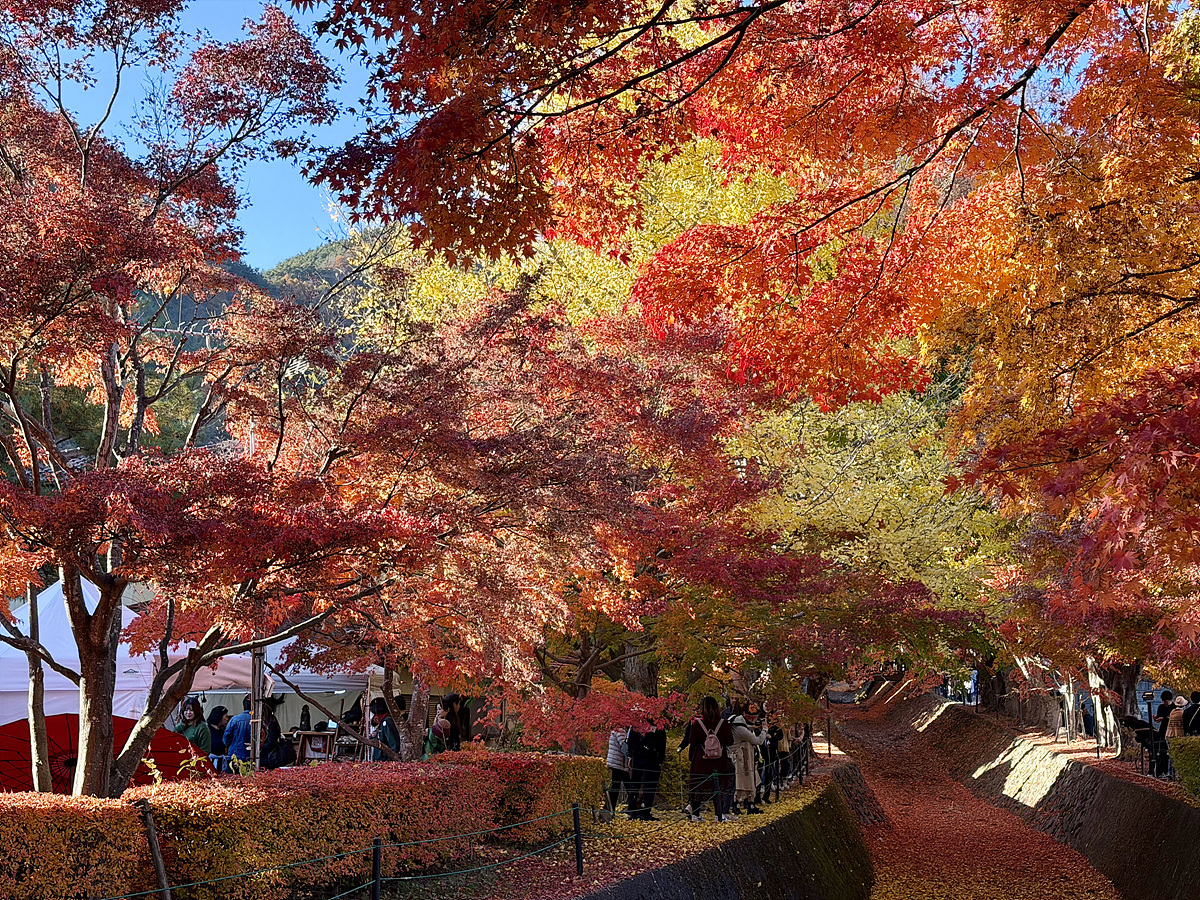 가와구치호로 이동 중 만나게 되는 단풍터널..