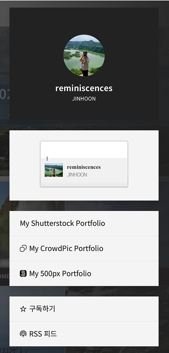 제가 사진들을 업로드하고 있는 스탁사진 사이트에 있는 제 포트폴리오를 볼 수 있는 링크가 나옵니다..